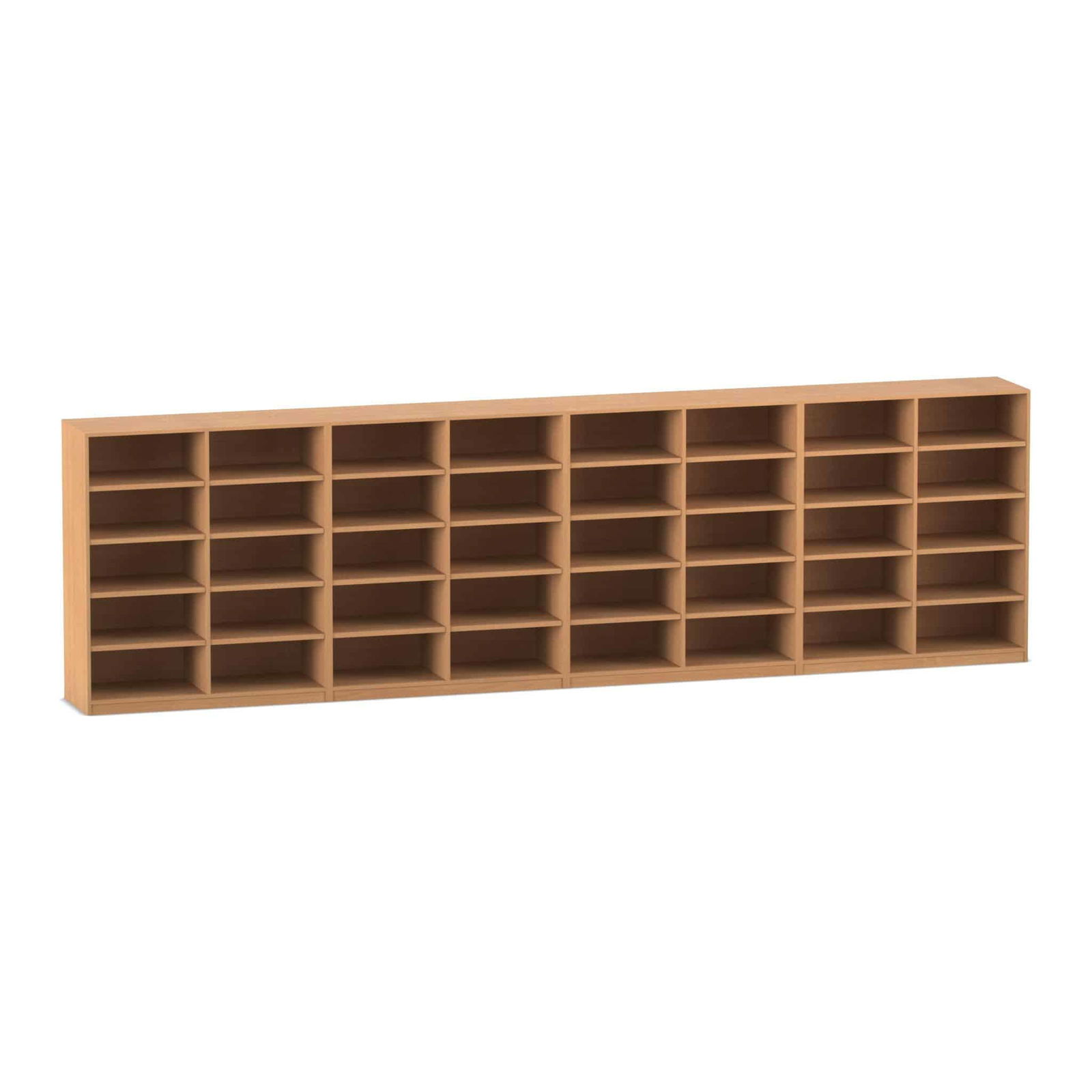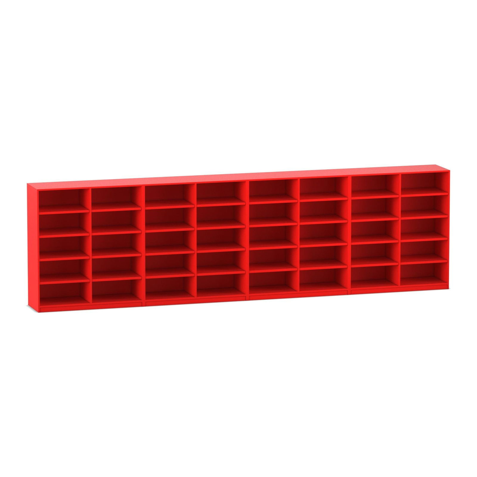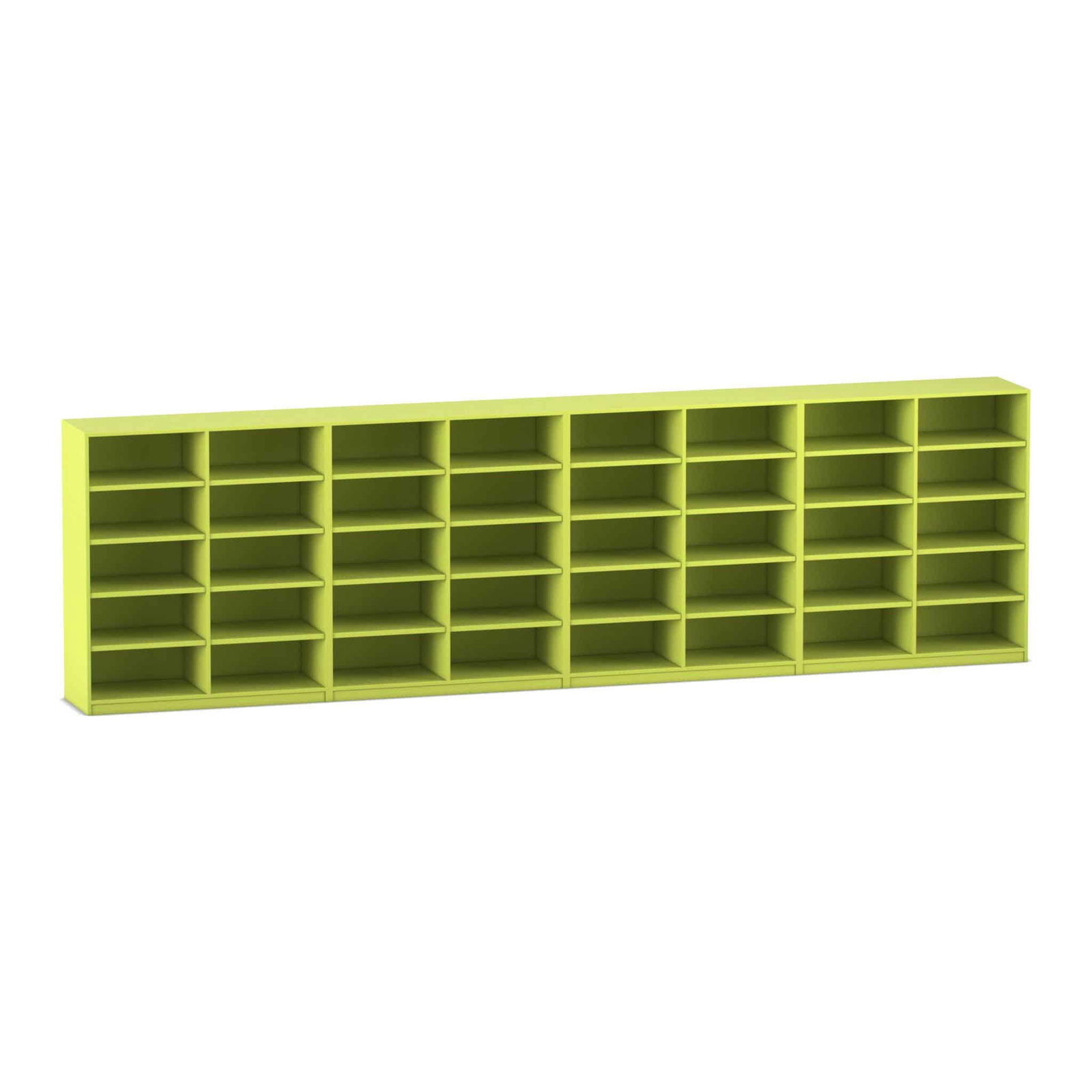 - Gigantischer Stauraum auf kleinem Raum: Mit insgesamt 40 geräumigen Fächern, verteilt auf eine Breite von über fünf Metern, bietet dieses Regalsystem Platz für eine beeindruckende Anzahl von Büchern und Medien. Die mittlere Höhe von ca. 144 cm sorgt dafür, dass auch jüngere Schüler die oberen Fächer noch gut erreichen können.
