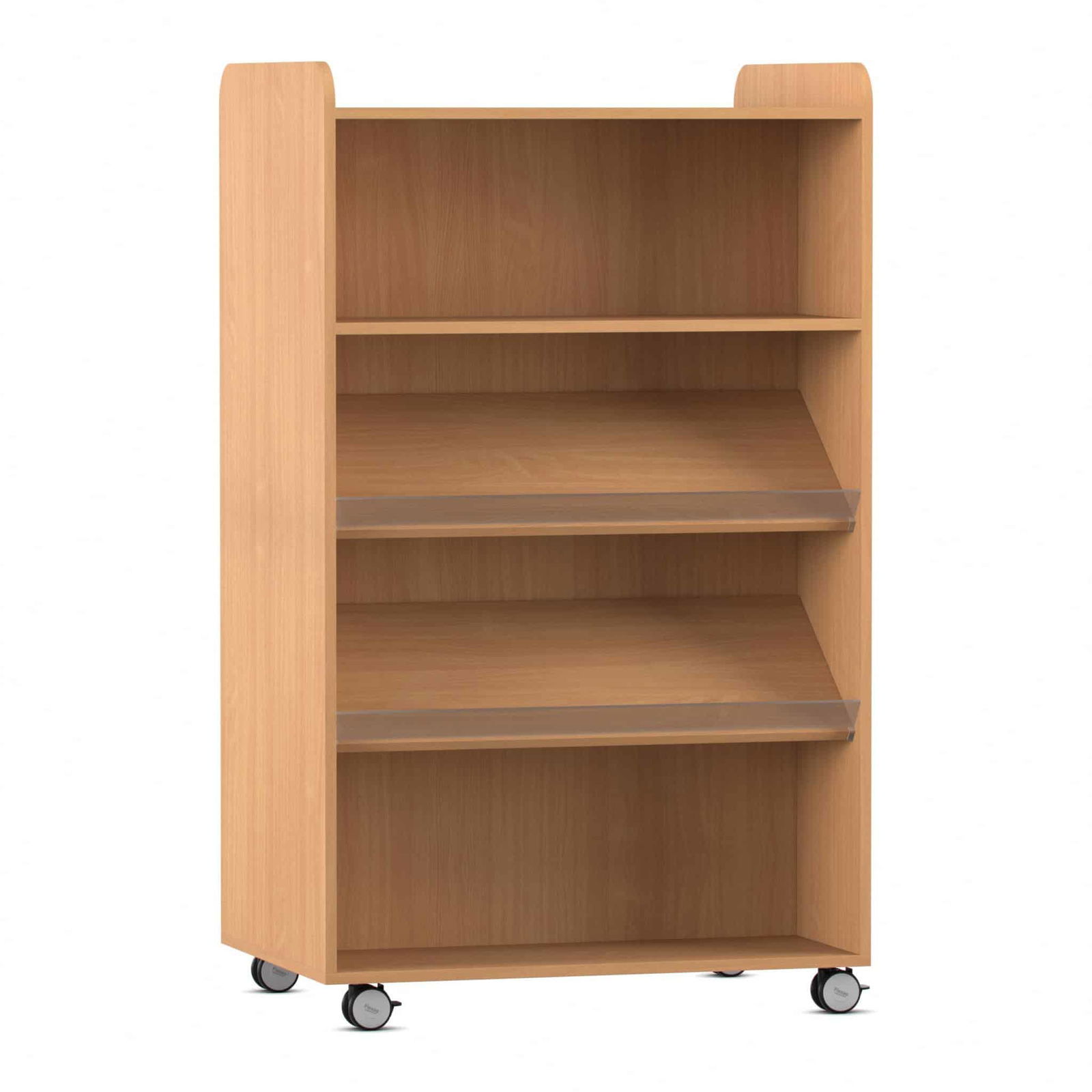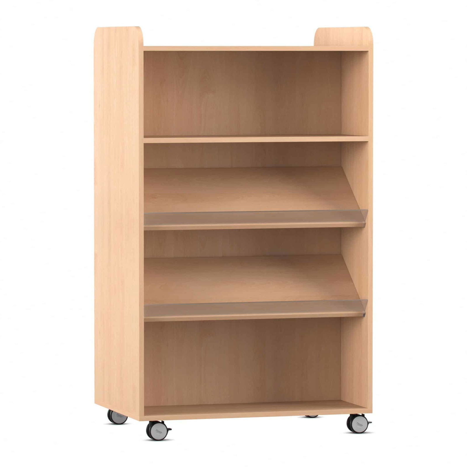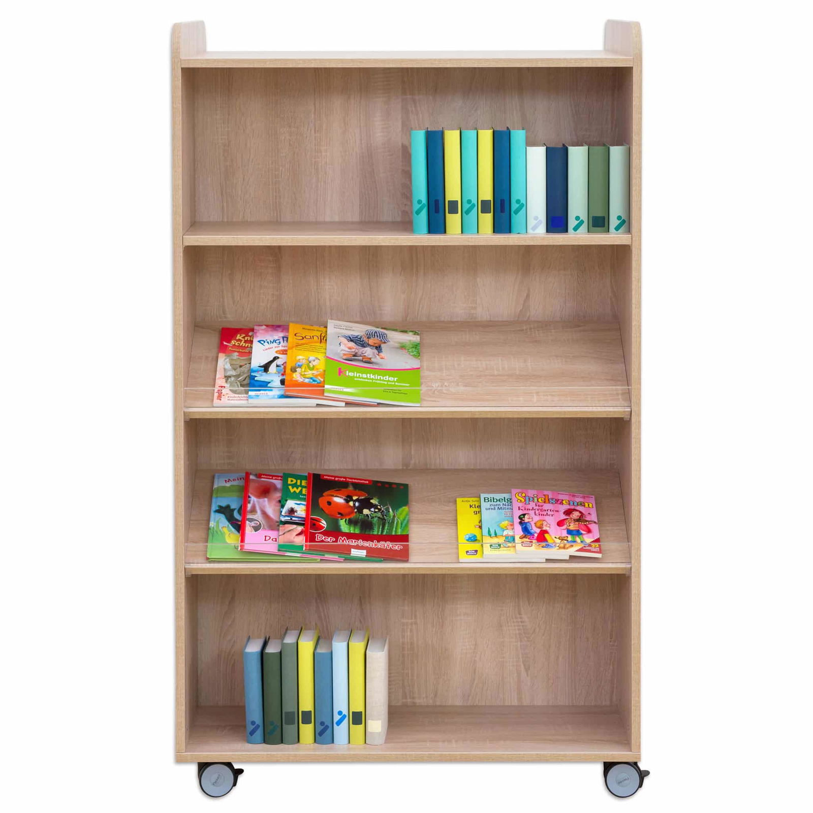 Schaffen Sie flexible Lern- und Lesewelten, die sich Ihrem Alltag anpassen – nicht umgekehrt. Der beidseitig nutzbare Flexeo® Bücherwagen ist die perfekte Fusion aus Präsentationsfläche und mobilem Stauraum. Er wurde entwickelt, um Bücher, Spiele und Ordner nicht nur sicher aufzubewahren, sondern sie auch aktiv in den Raum zu integrieren. Nutzen Sie ihn als einladende Leseinsel in der Bibliothek, als mobilen Materialwagen im Klassenzimmer oder als praktischen Raumteiler im Aufenthaltsbereich. Dank seiner durchdachten Aufteilung mit Schrägablagen und geraden Fachböden bietet er für jedes Medium den passenden Platz. Gefertigt in herausragender Flexeo-Qualität „Made in Germany“, kombiniert dieser Bücherwagen absolute Robustheit mit maximaler Flexibilität für den dynamischen Einsatz in Schulen, Kitas und Bibliotheken.