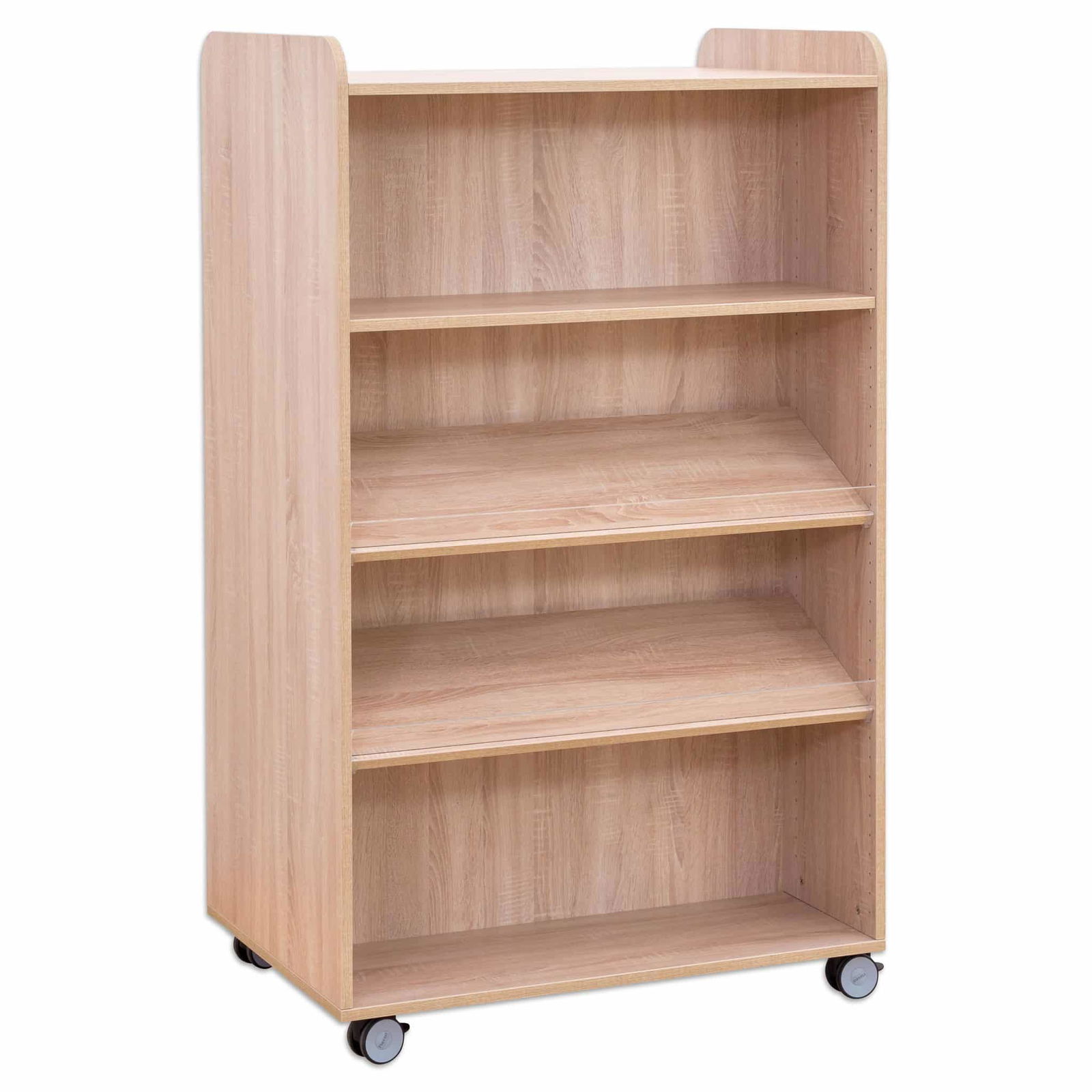 - Uneingeschränkte Mobilität für flexible Raumkonzepte: Vier robuste, leichtlaufende Schwerlastrollen machen den Bücherwagen extrem mobil. Bewegen Sie eine ganze Bibliothek ohne Anstrengung von einem Ort zum anderen. Selbst kleine Hindernisse wie Türschwellen oder Teppichkanten sind kein Problem. Zwei Rollen sind mit Feststellbremsen ausgestattet, die dem Wagen einen absolut sicheren Stand garantieren, wo immer Sie ihn benötigen.