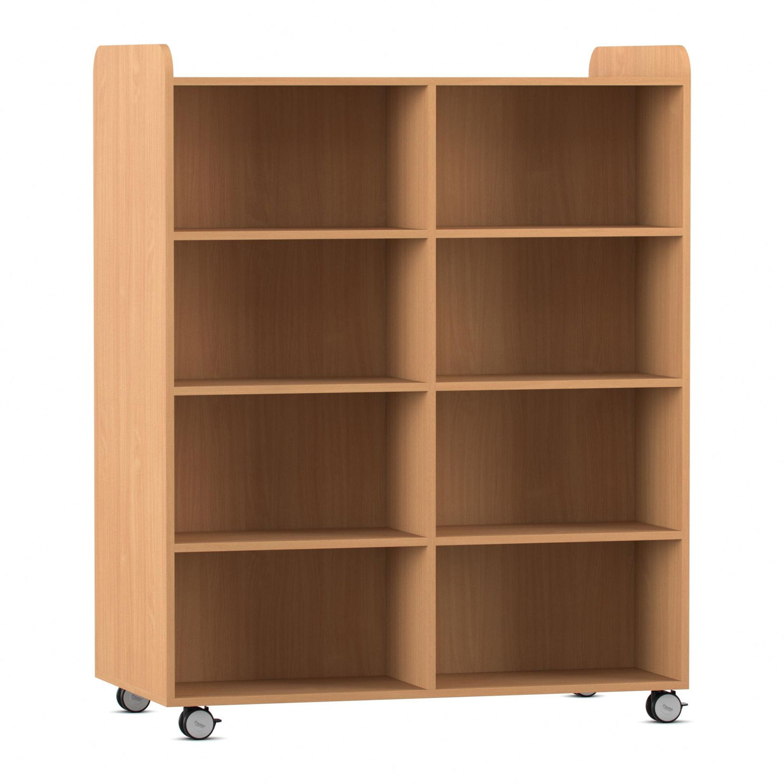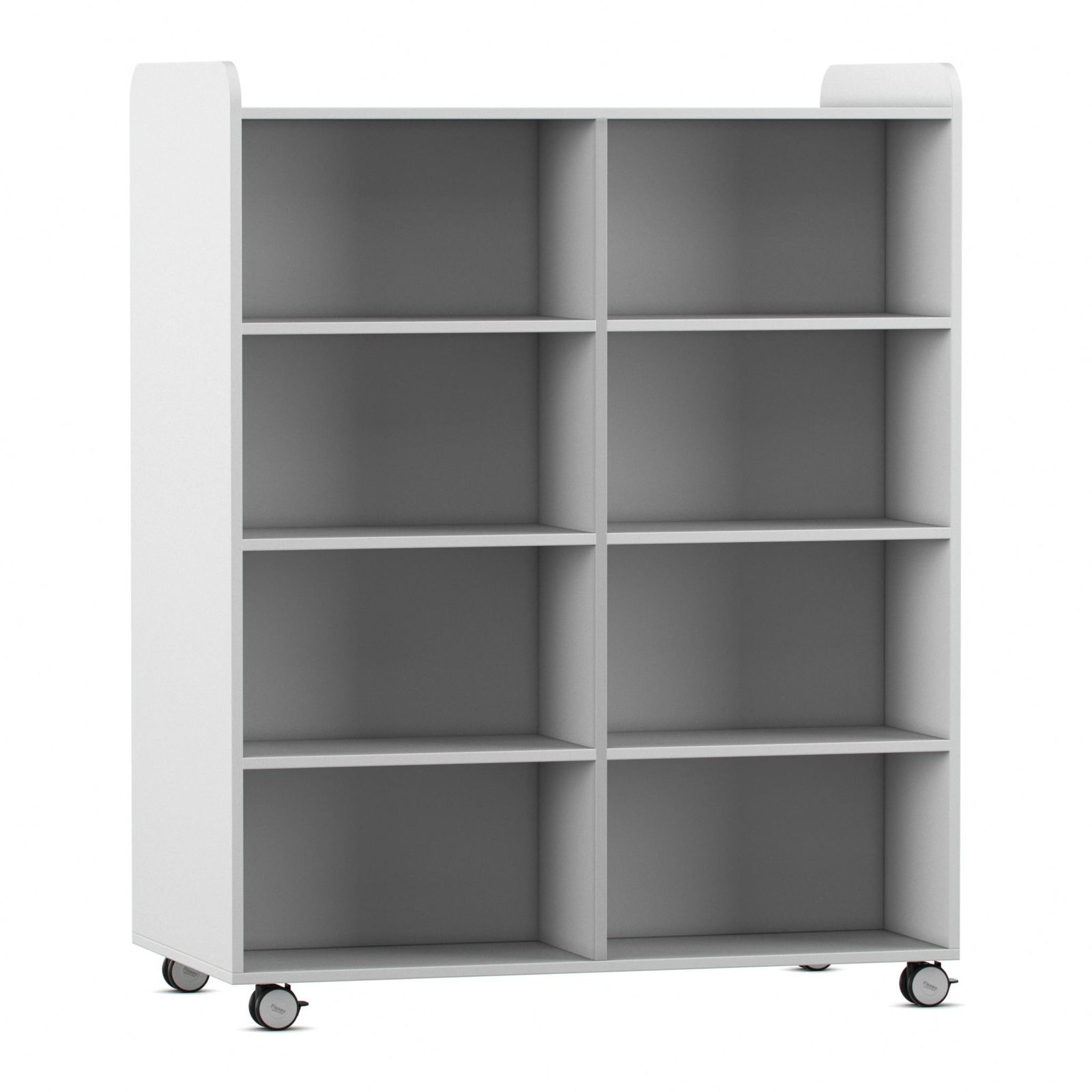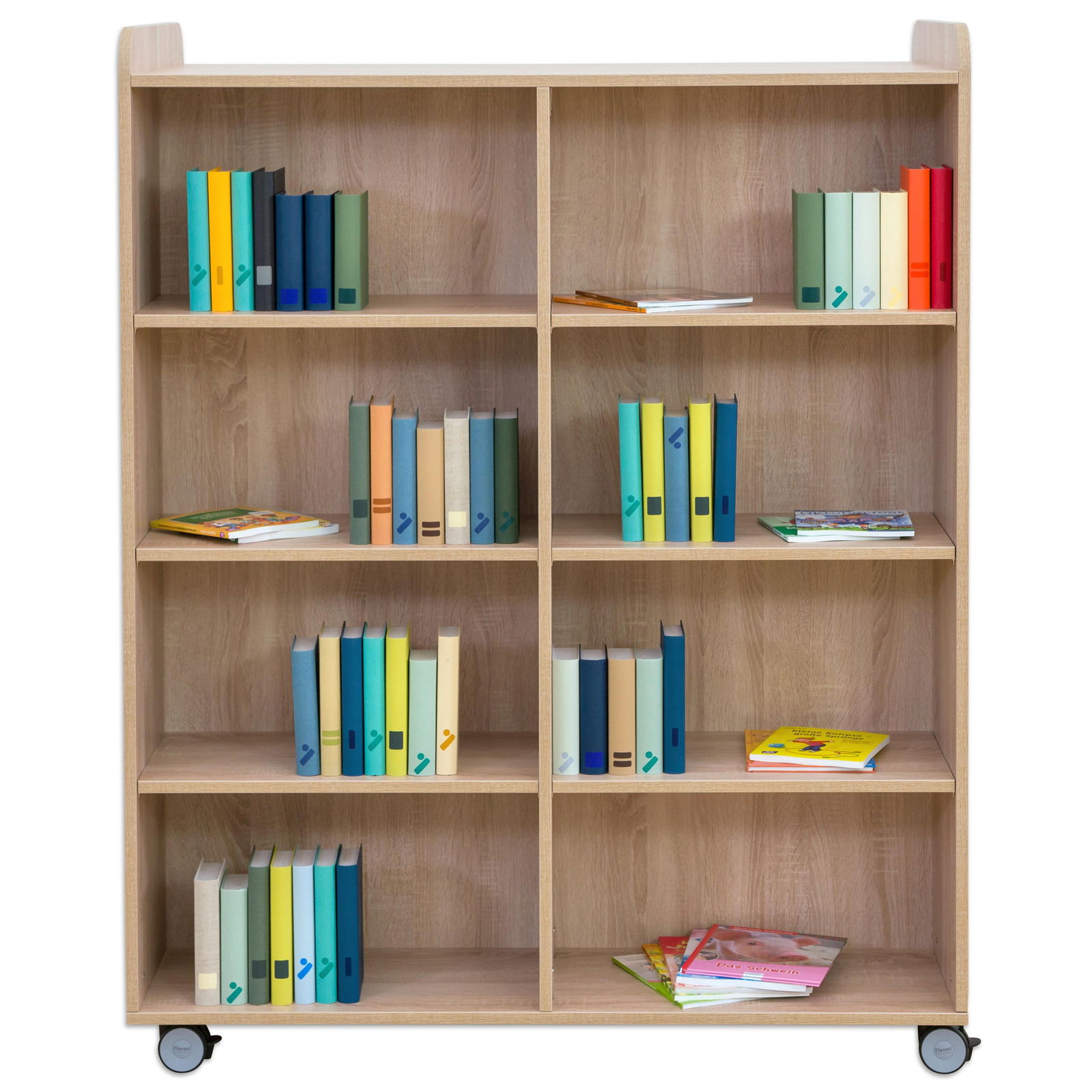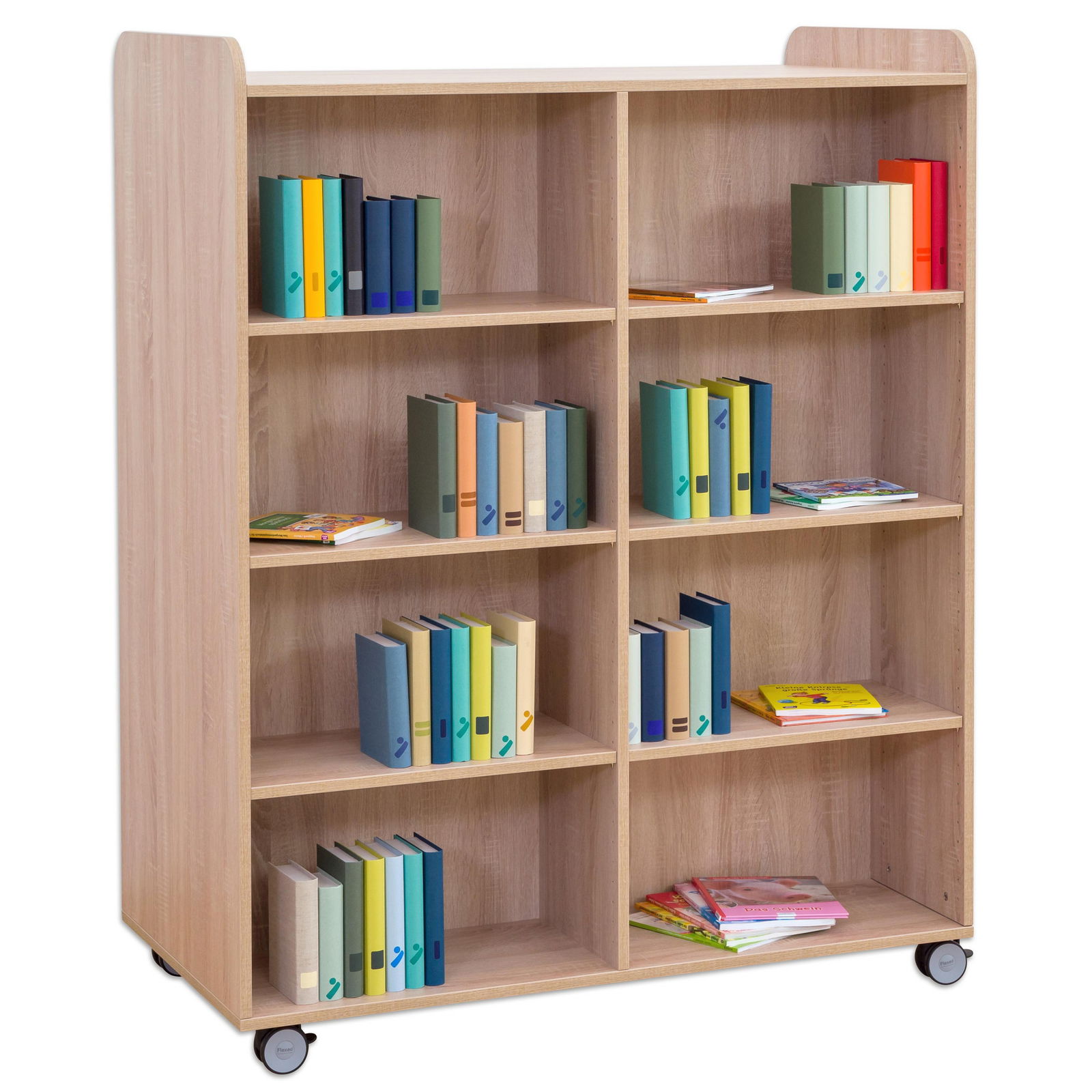 Dank vier äußerst robuster und leichtlaufender Rollen lässt sich der Bücherwagen mühelos von einer Person bewegen – selbst voll beladen. Schaffen Sie im Handumdrehen neue Themeninseln, bringen Sie die passende Lektüre direkt ins Klassenzimmer oder räumen Sie Platz für Veranstaltungen. Selbst kleine Hindernisse wie Türschwellen meistert der Wagen problemlos. Zwei der Rollen sind feststellbar und sorgen so für einen sicheren Stand, sobald der Wagen seinen Platz gefunden hat. - Doppelter Nutzen durch beidseitige Ausstattung