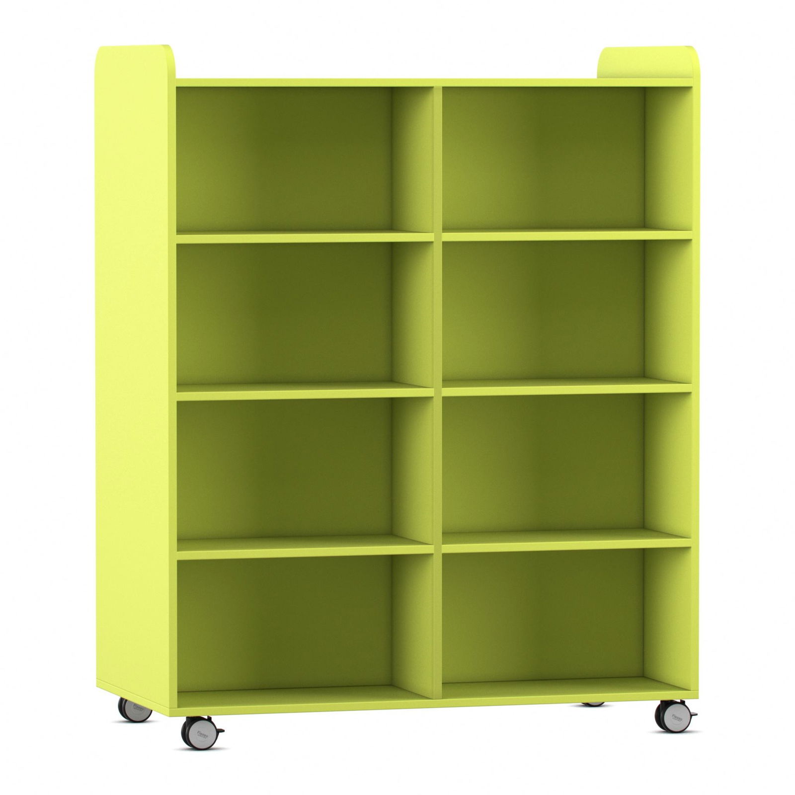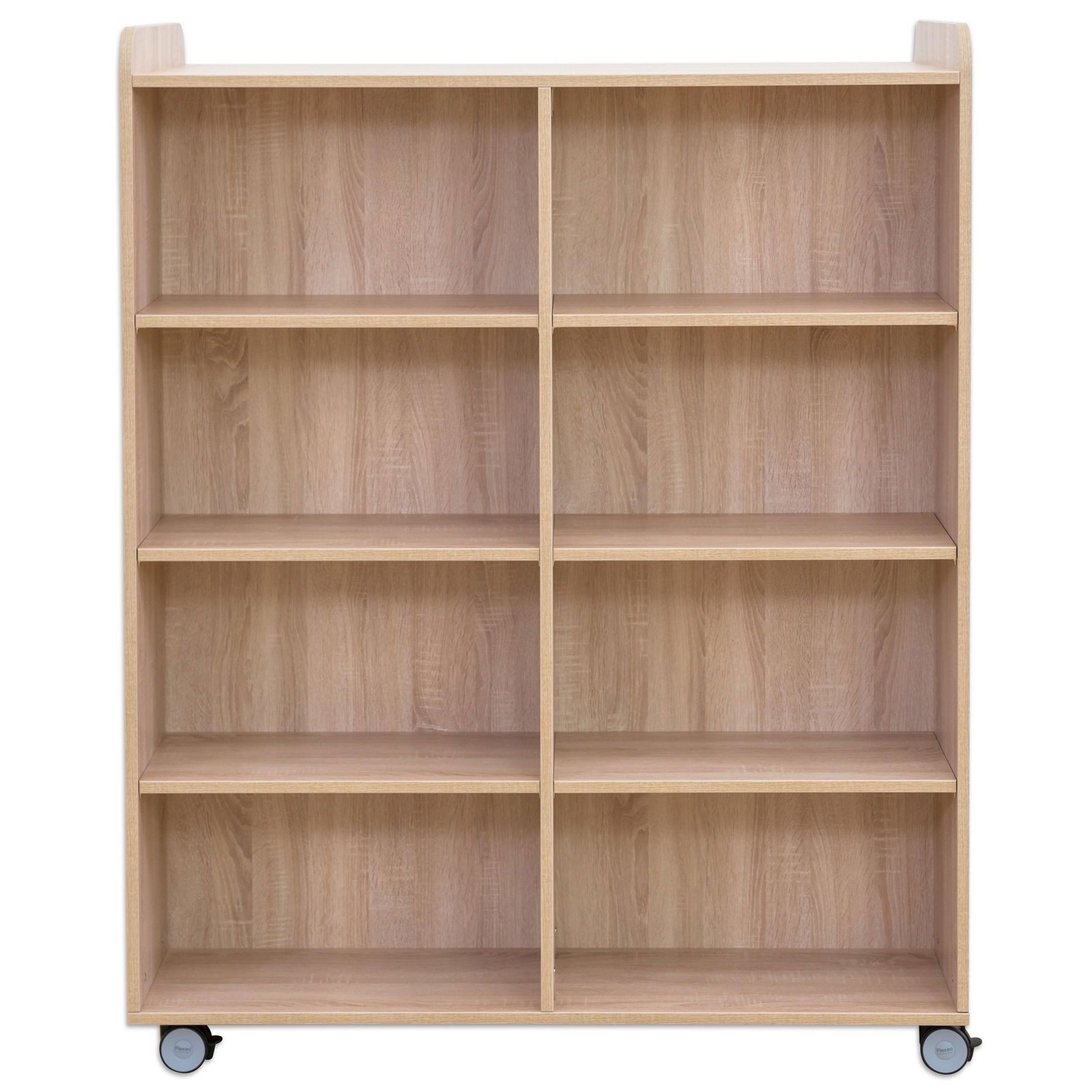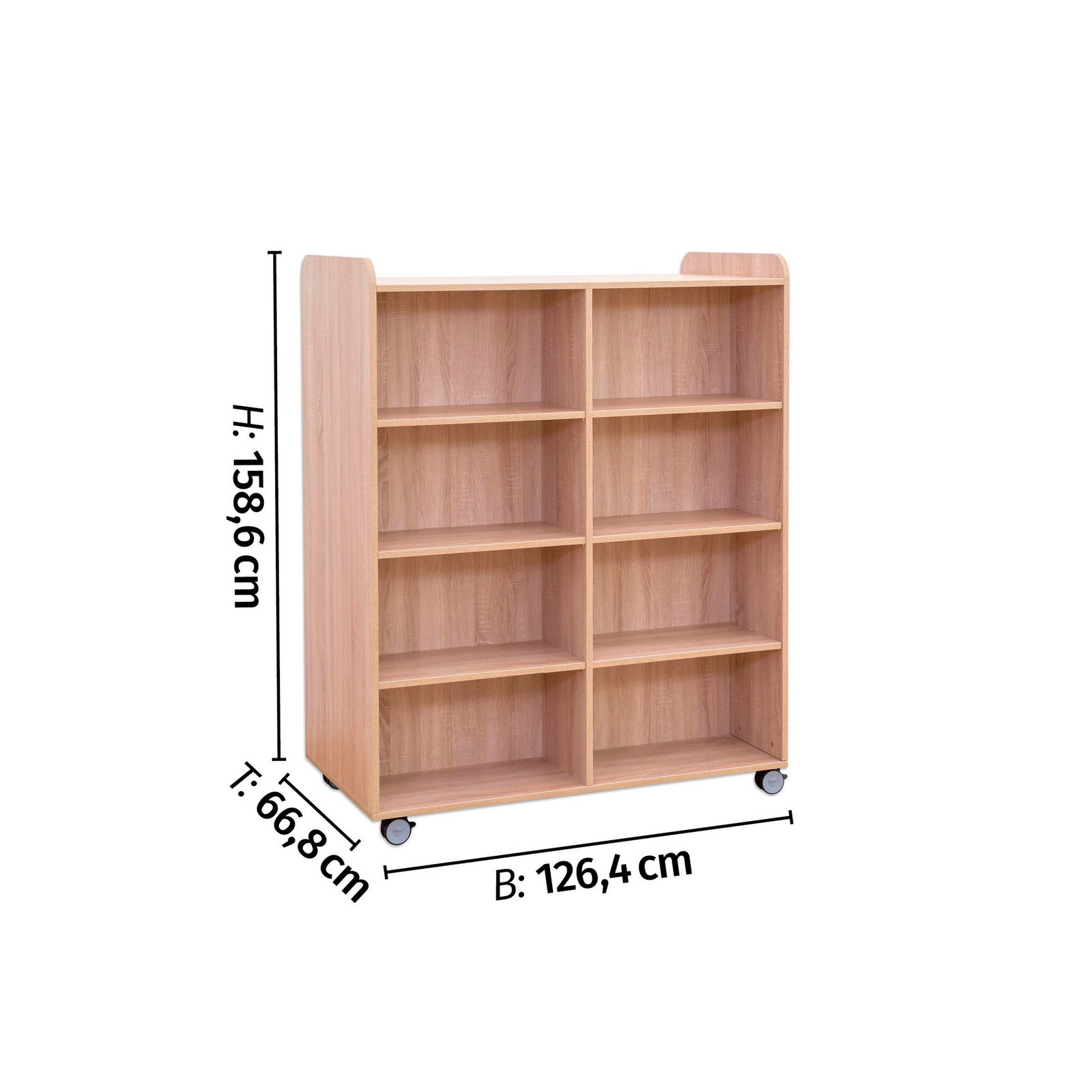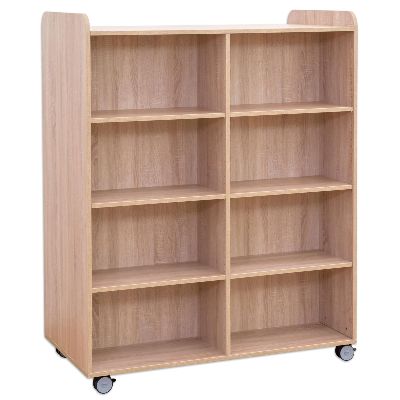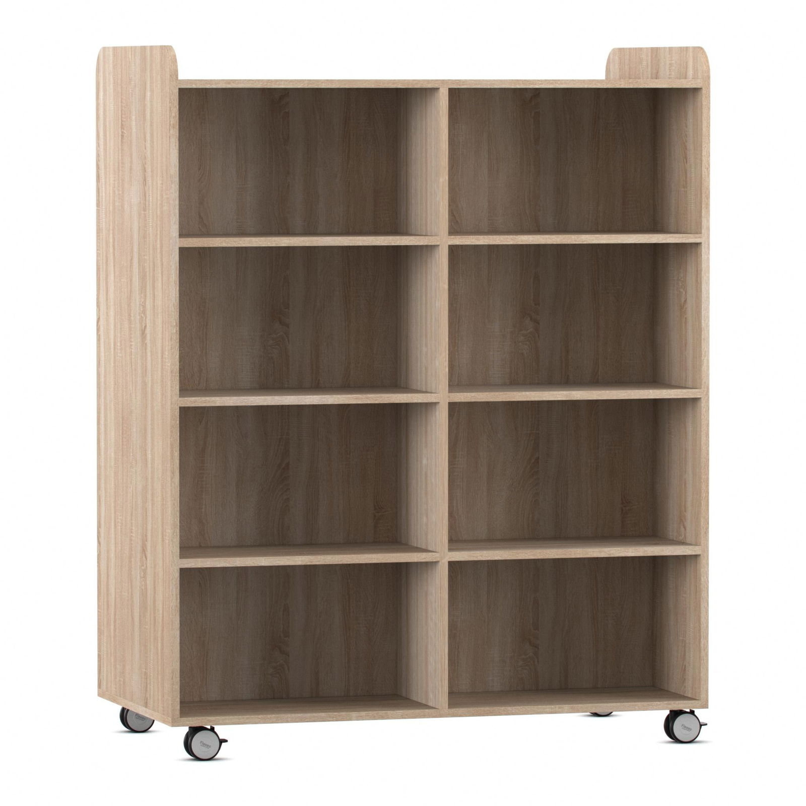 Der Bücherwagen ist clever konzipiert und von beiden Seiten zugänglich. Jede Seite ist mit sechs geraden Fachböden ausgestattet, was insgesamt 12 Ablageflächen für eine enorme Menge an Büchern, Ordnern oder Spielen ergibt. Diese doppelseitige Nutzbarkeit macht ihn auch zu einem idealen, mobilen Raumteiler, der Bereiche optisch trennt und gleichzeitig Stauraum bietet. - Individuell anpassbarer Stauraum