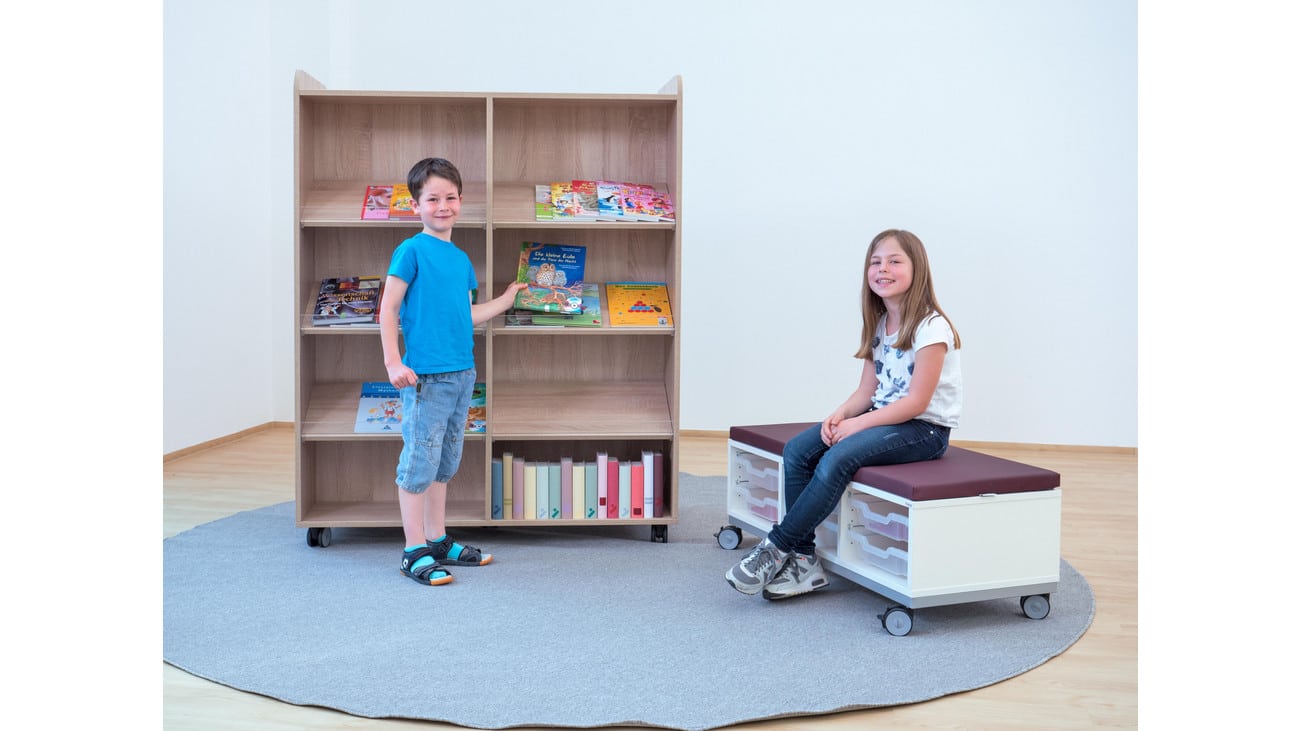 Holen Sie sich den Flexeo® Bücherwagen in Ihre Einrichtung und genießen Sie die Vorteile eines flexiblen, praktischen und stilvollen Aufbewahrungssystems! Bestellen Sie noch heute in unserem Onlineshop und bringen Sie Ordnung und Gemütlichkeit in Ihre Leseecken!