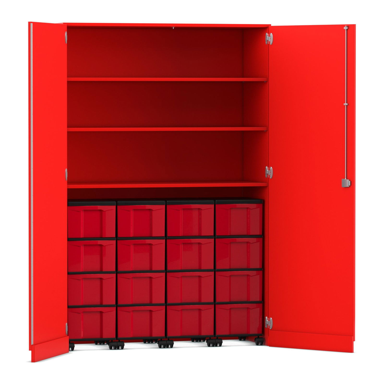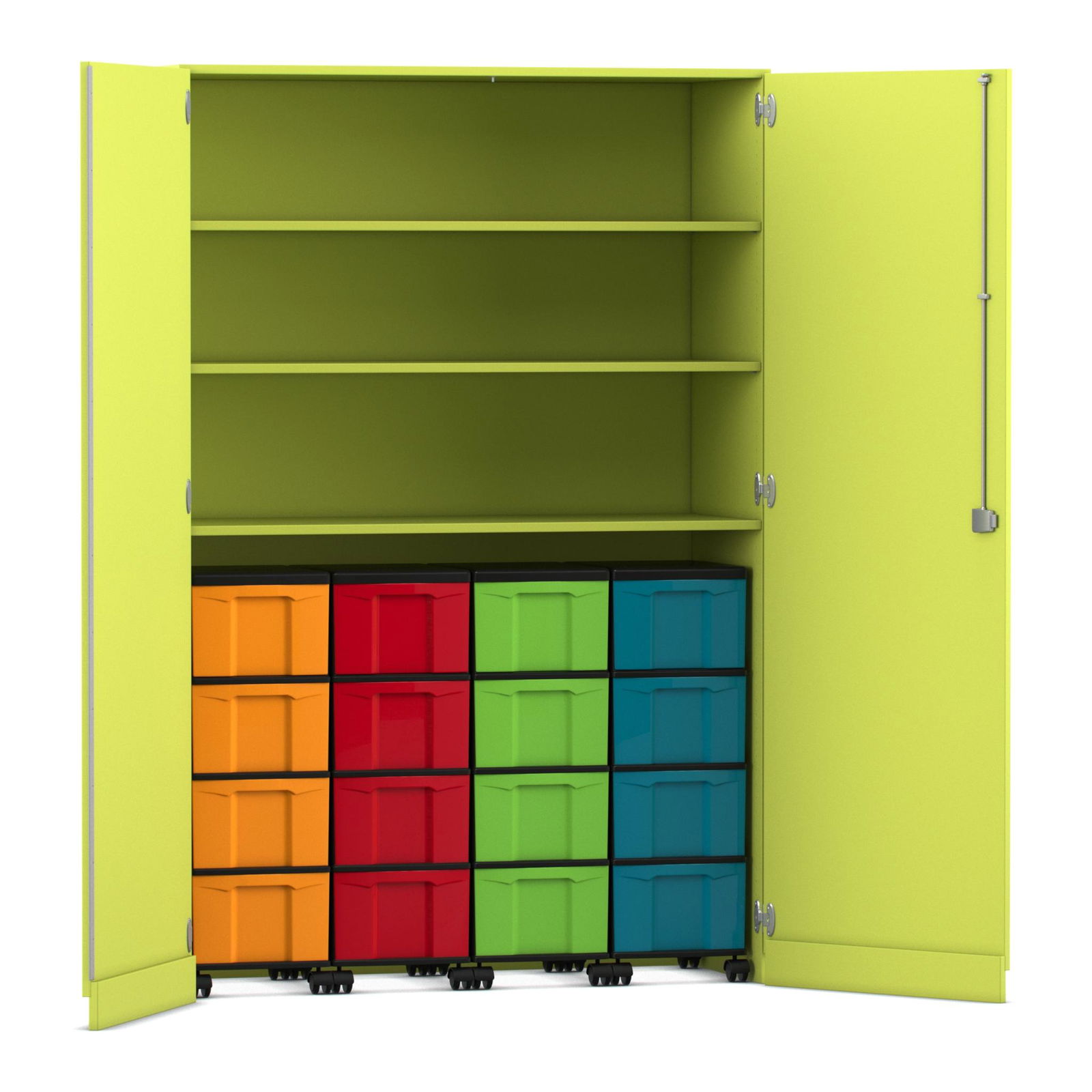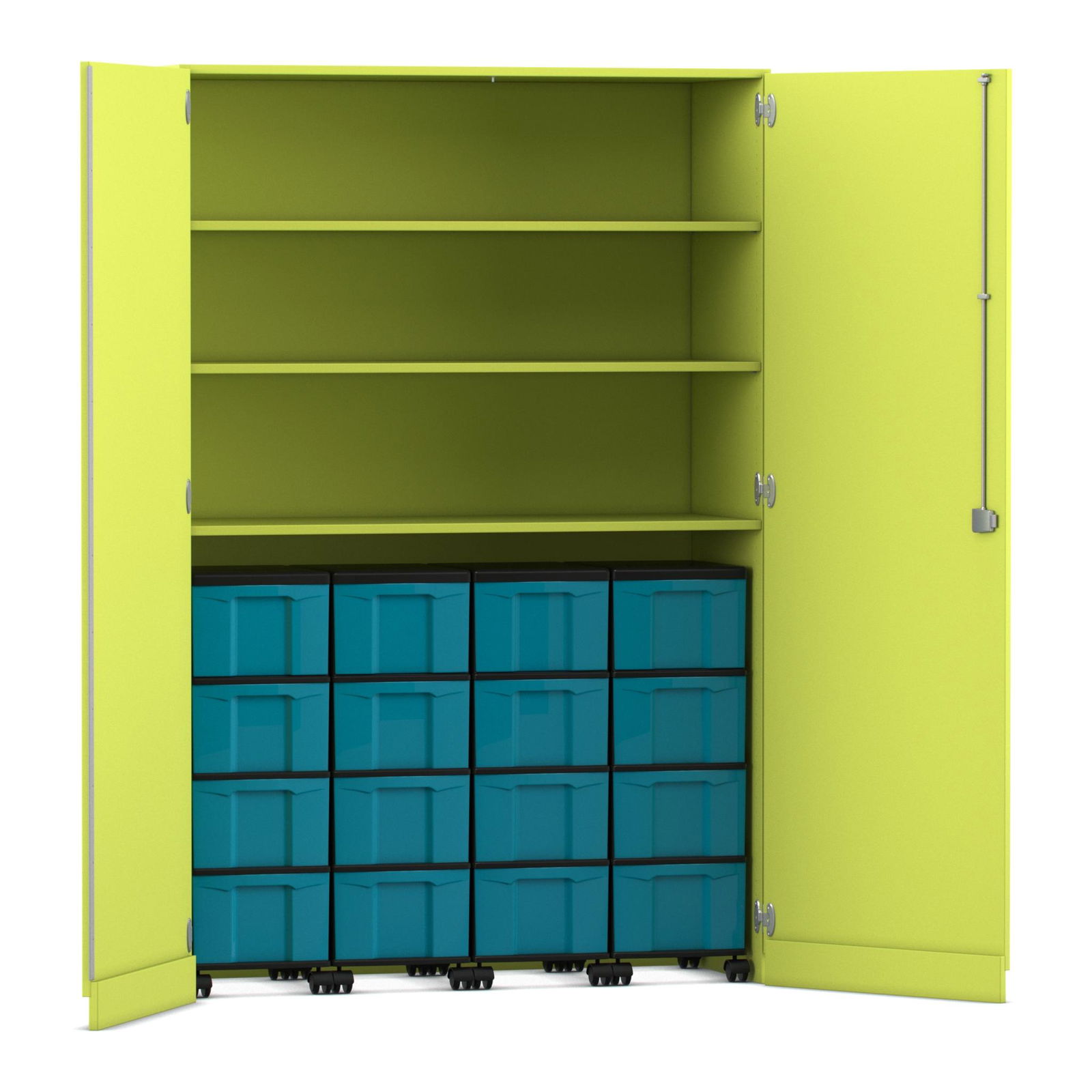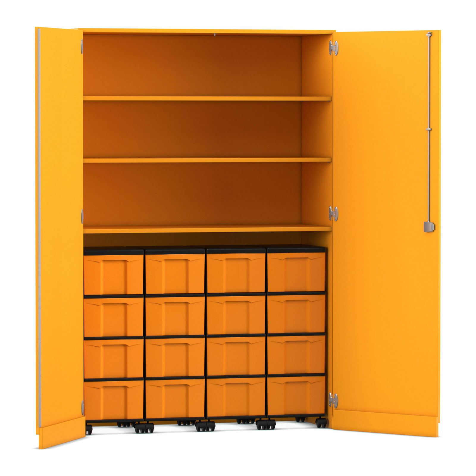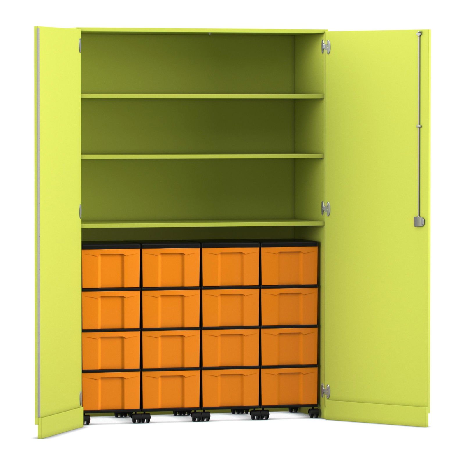 Mit verschließbaren Türen, höhenverstellbaren Fachböden und schwerem, standfestem Material erfüllt der Flexeo® Garagenschrank selbst die höchsten Anforderungen an Sicherheit und Stabilität. Die farbigen Boxen aus biobasiertem Kunststoff unterstreichen die Nachhaltigkeit dieses Produkts, das komplett montiert geliefert wird und sofort einsatzbereit ist.