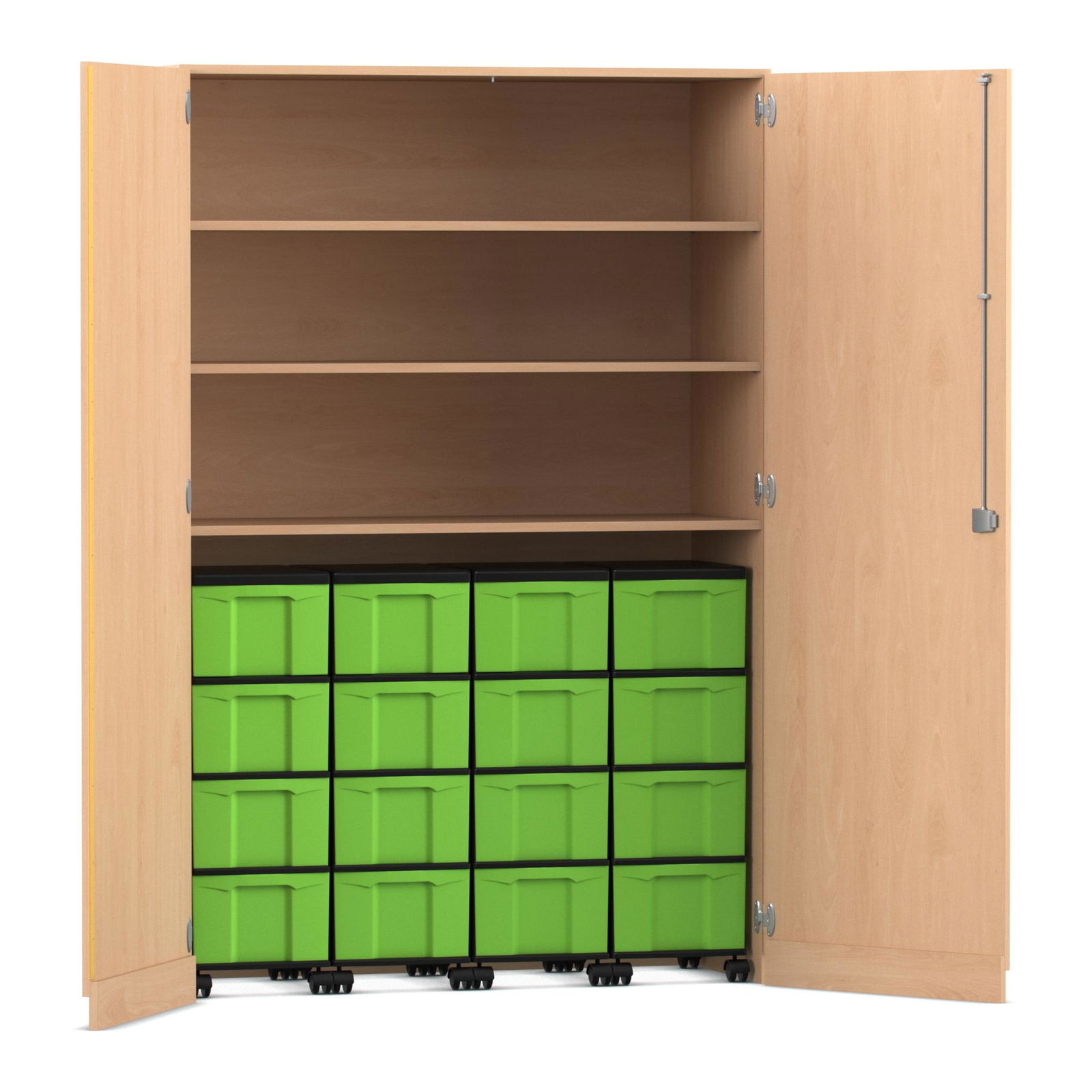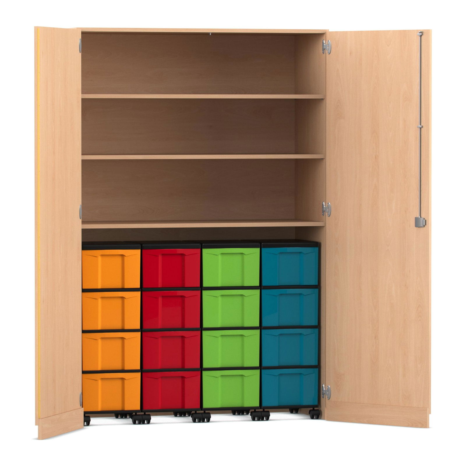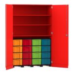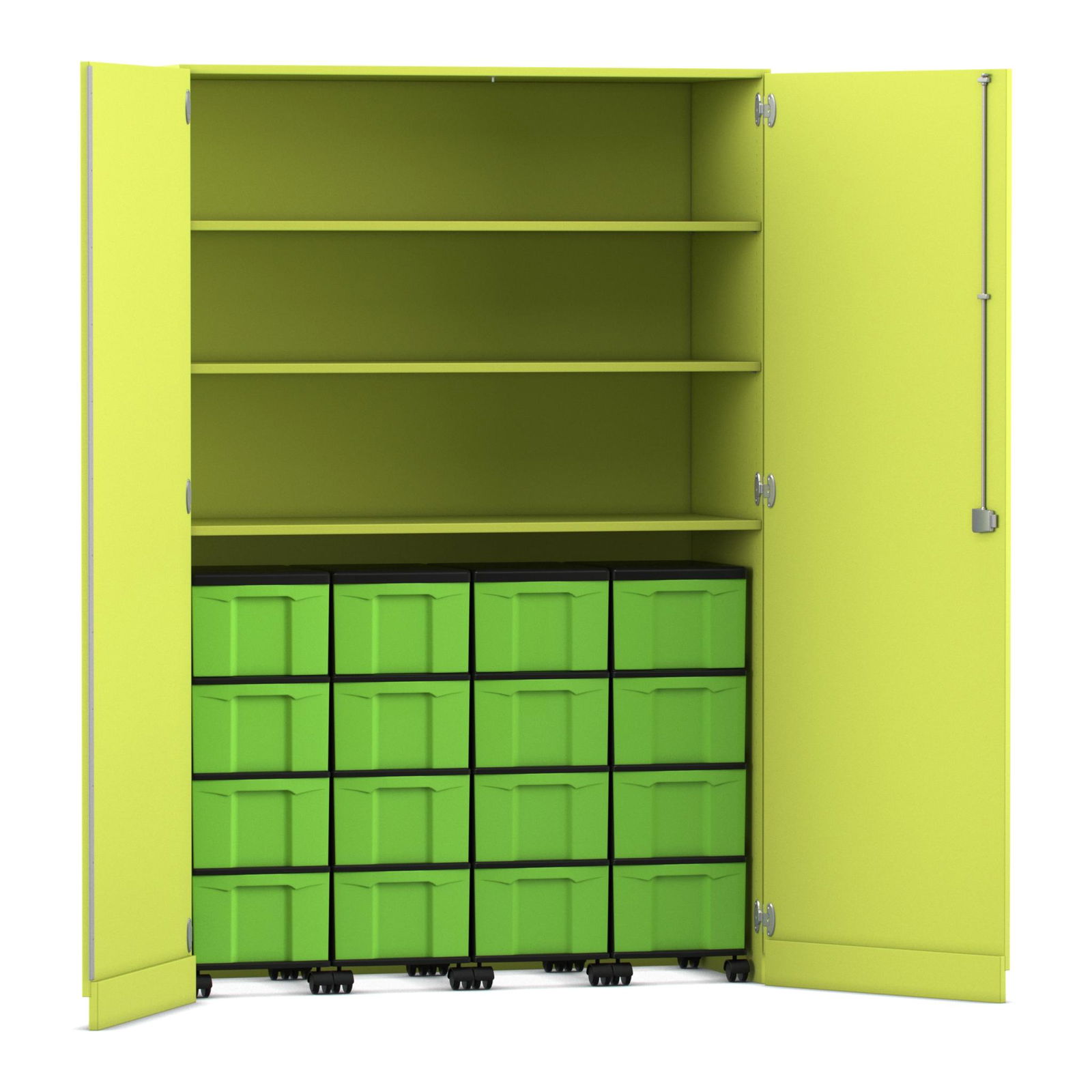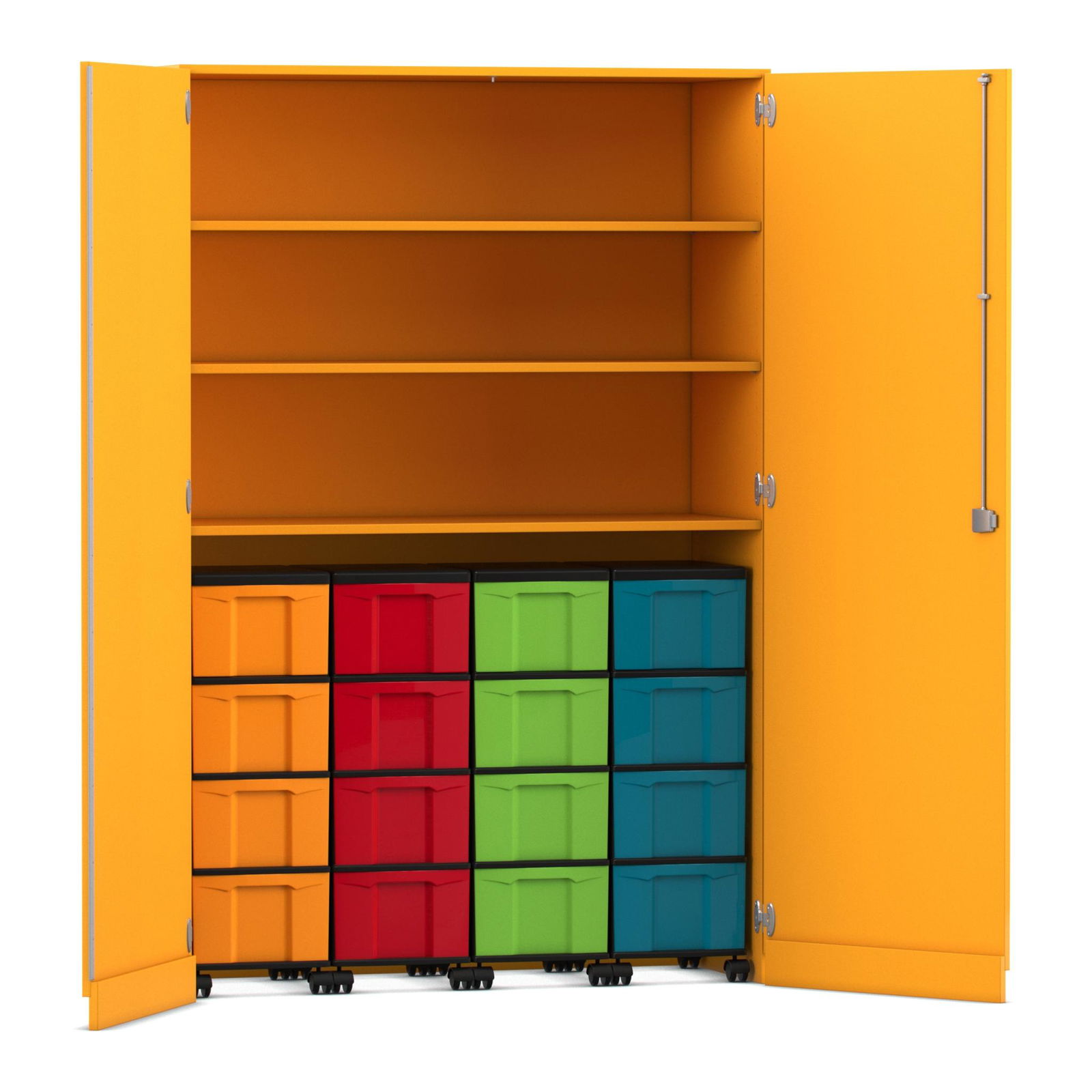 Mit verschließbaren Türen, höhenverstellbaren Fachböden und schwerem, standfestem Material erfüllt der Flexeo® Garagenschrank selbst die höchsten Anforderungen an Sicherheit und Stabilität. Die farbigen Boxen aus biobasiertem Kunststoff unterstreichen die Nachhaltigkeit dieses Produkts, das komplett montiert geliefert wird und sofort einsatzbereit ist.