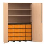 Der Flexeo® Garagenschrank mit 3 Fächern, 4 Rollcontainern und 16 großen Boxen ist die ideale Aufbewahrungslösung für alle, die Wert auf Organisation und Flexibilität legen. Mit seiner durchdachten Konstruktion aus robustem Holz und den 4 mobilen Rollcontainern eignet sich dieser Schrank perfekt für die Nutzung im Büro, Lager oder in Archiven. Das durchdachte Design kombiniert geräumige Regalfächer mit geschickt integrierten Boxen für maximale Funktionalität. Schaffen Sie mühelos Ordnung bei Werkzeugen, Materialien und Unterlagen und genießen Sie dabei robuste Qualität, die auch intensiven Belastungen standhält.