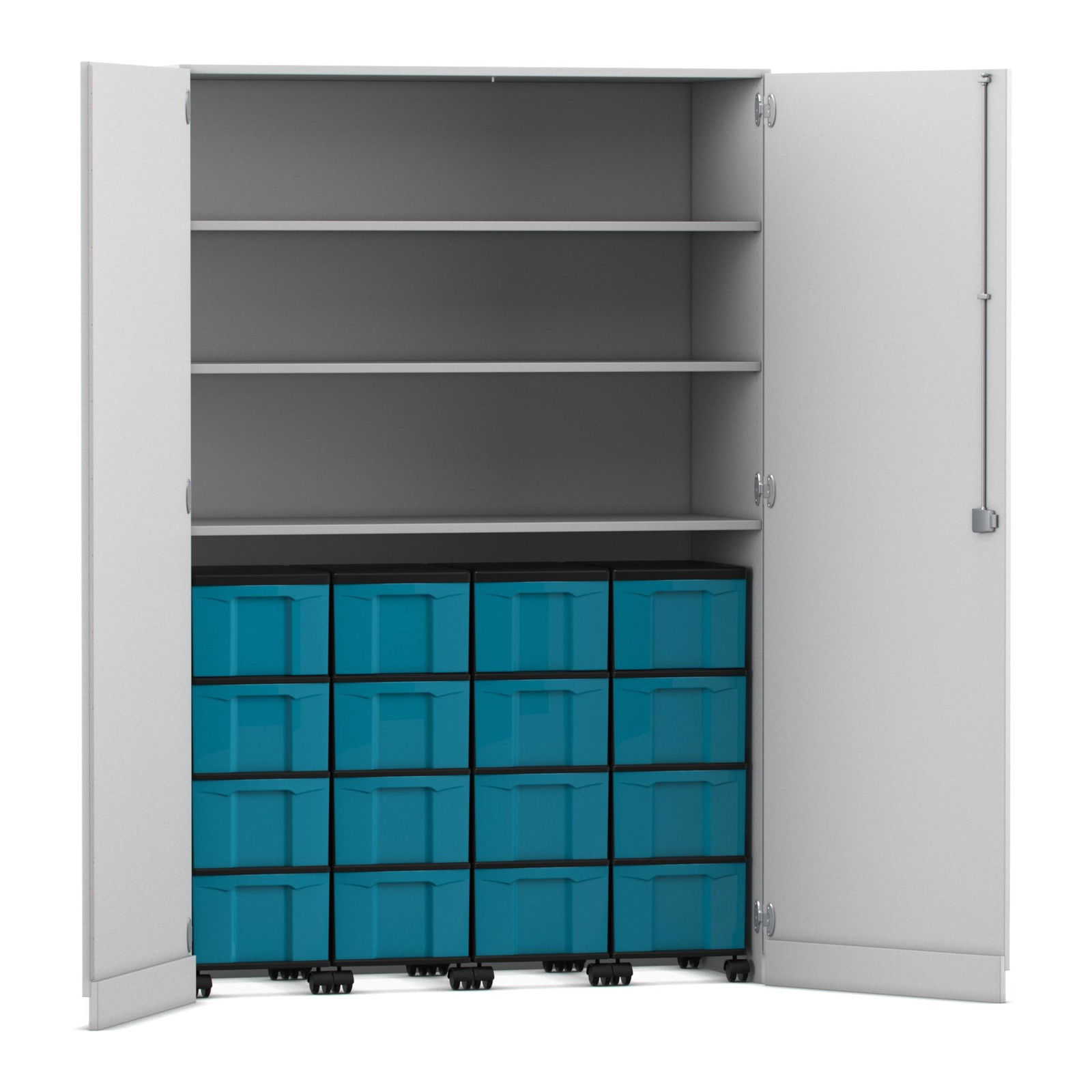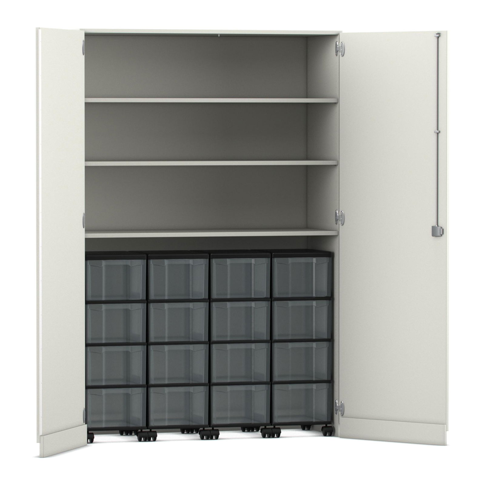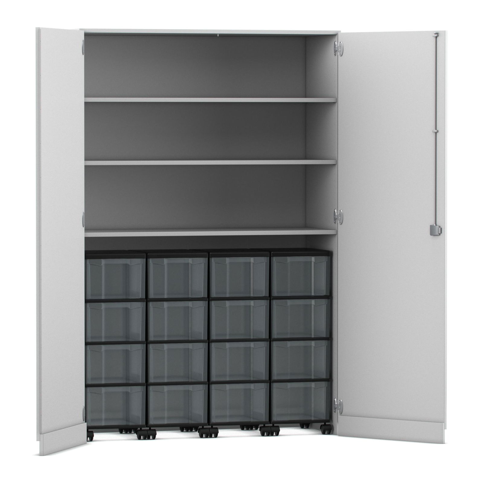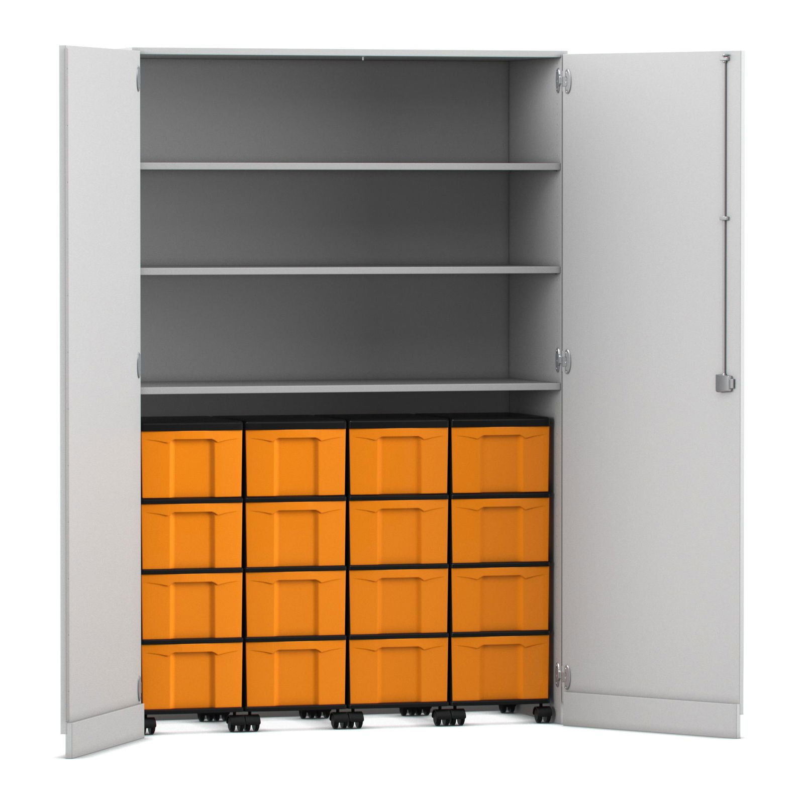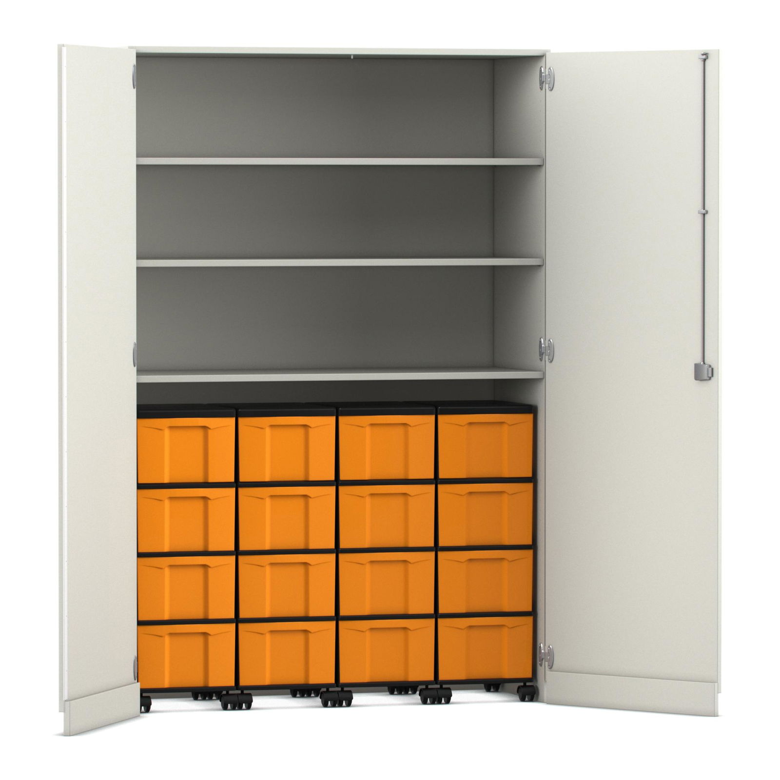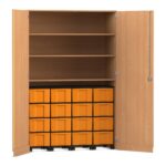 - Anzahl der Elemente: 1 Schrank, 4 Rollcontainer, 16 Boxen