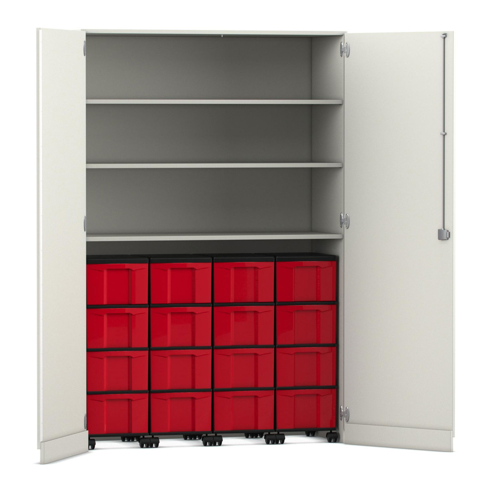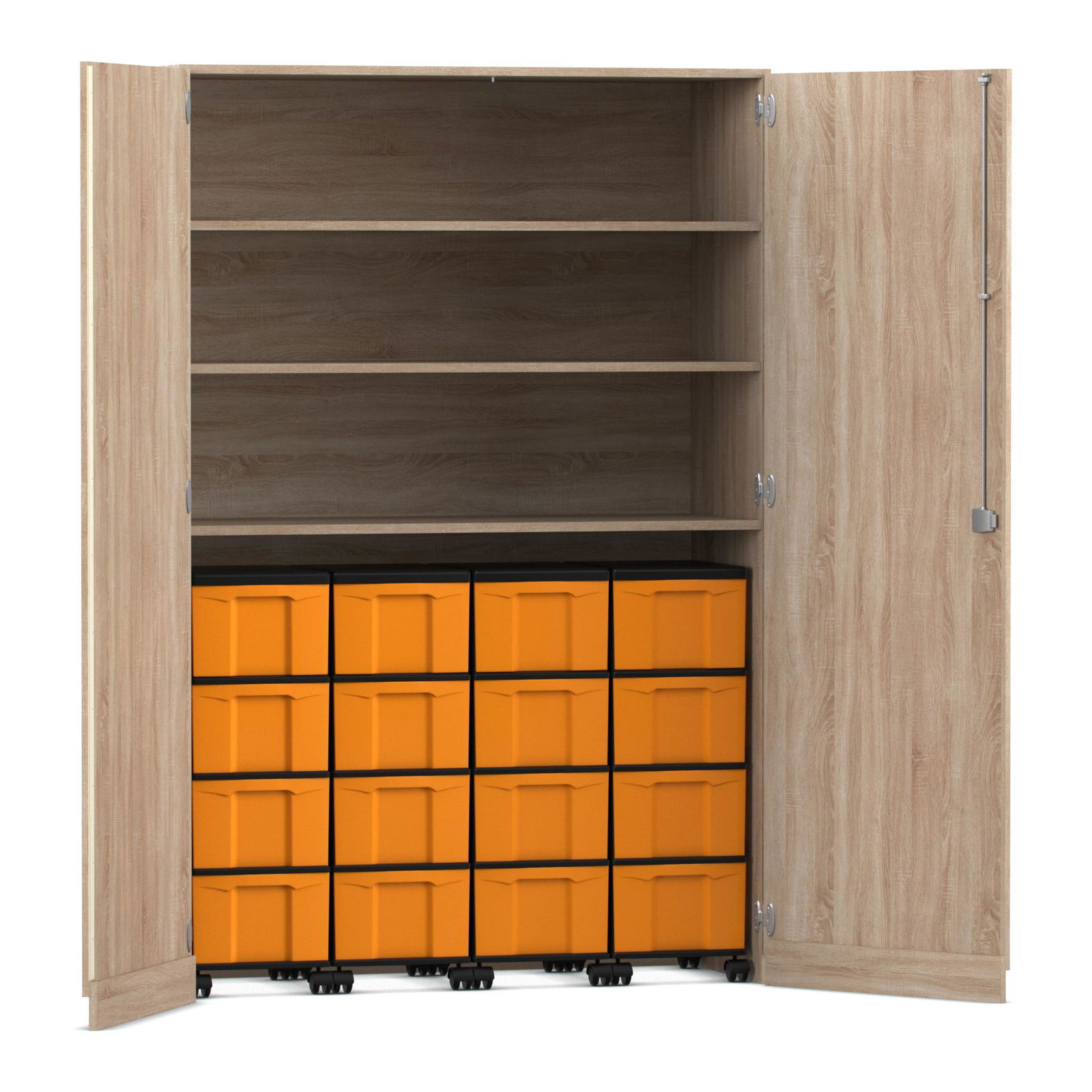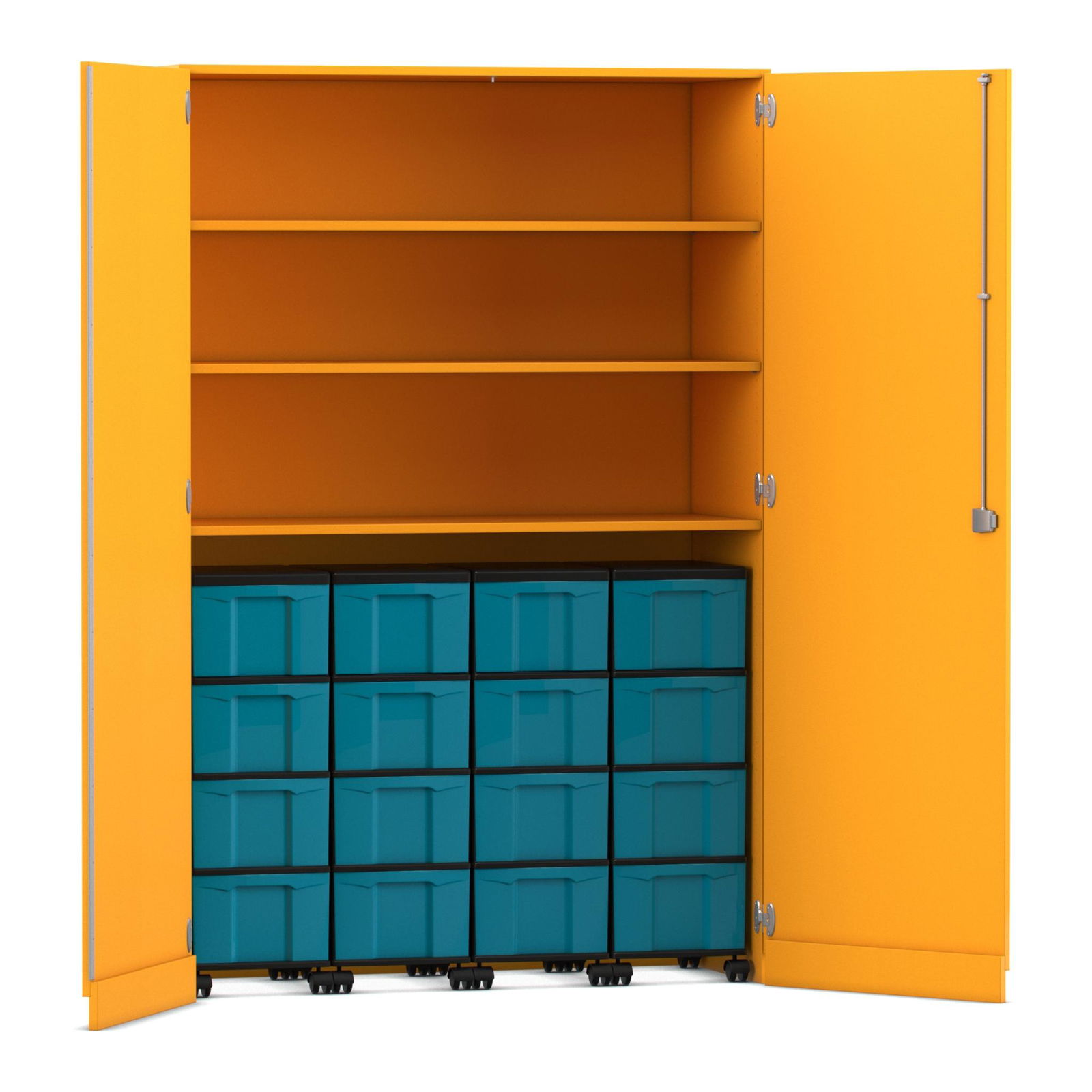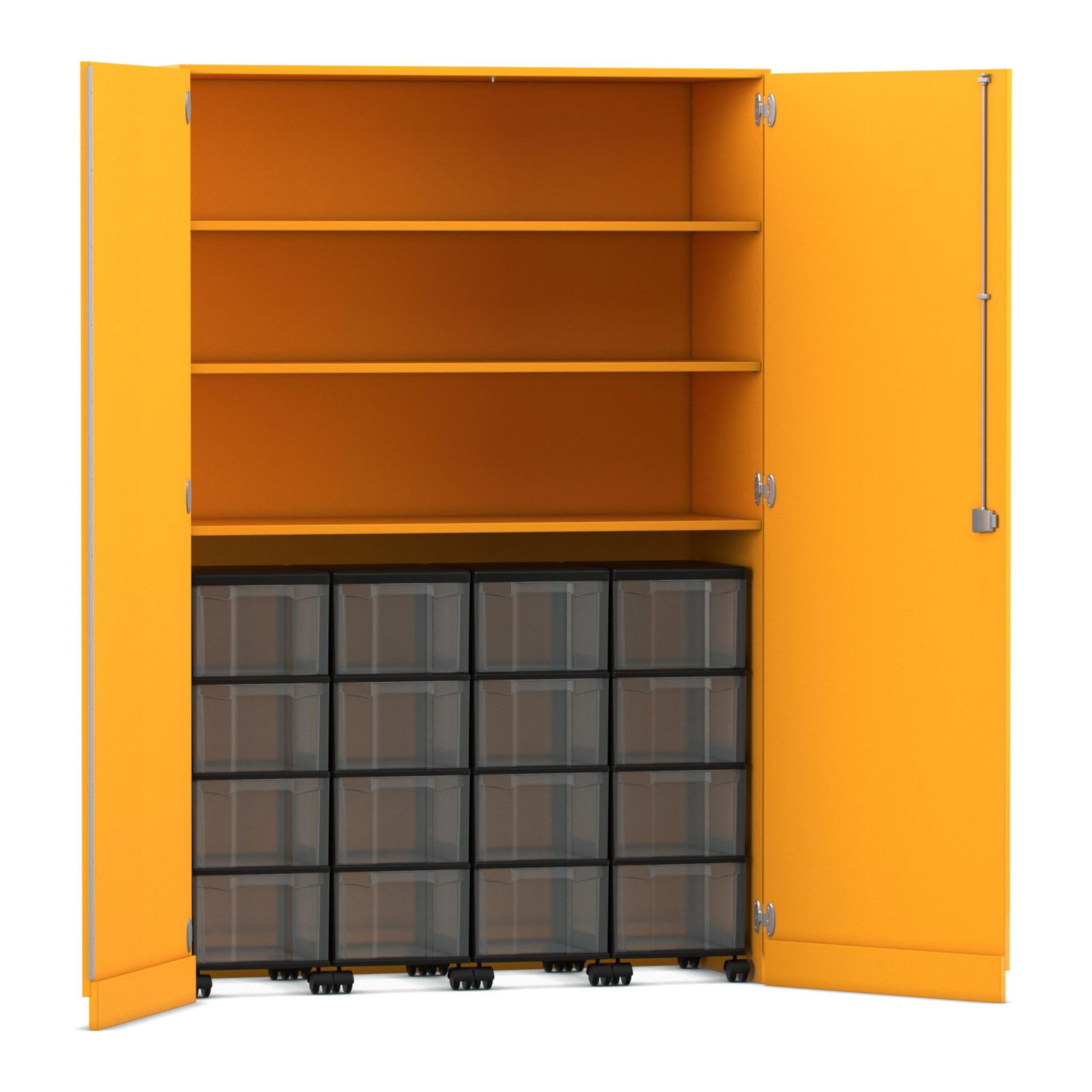 - Anzahl der Elemente: 1 Schrank, 4 Rollcontainer, 16 Boxen