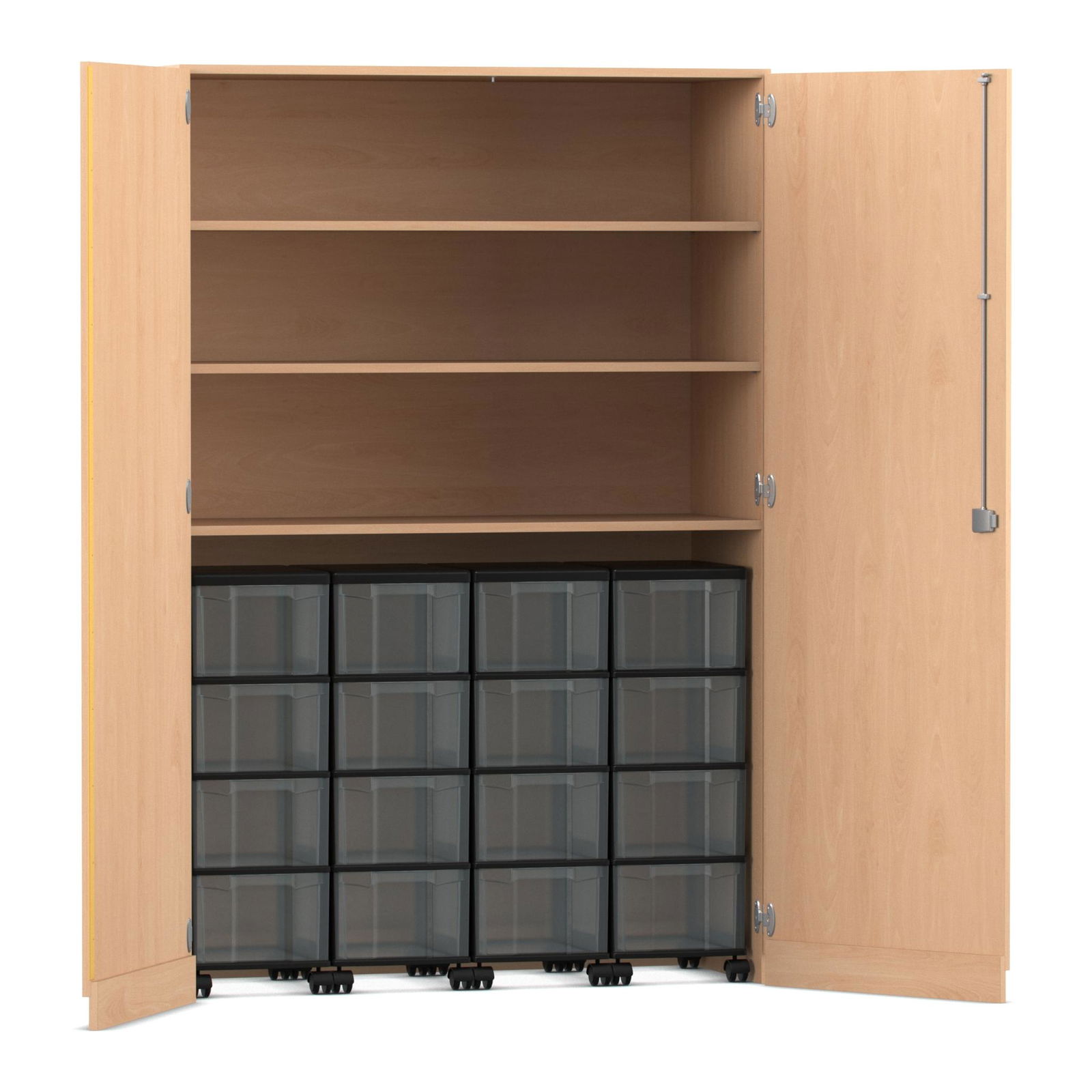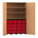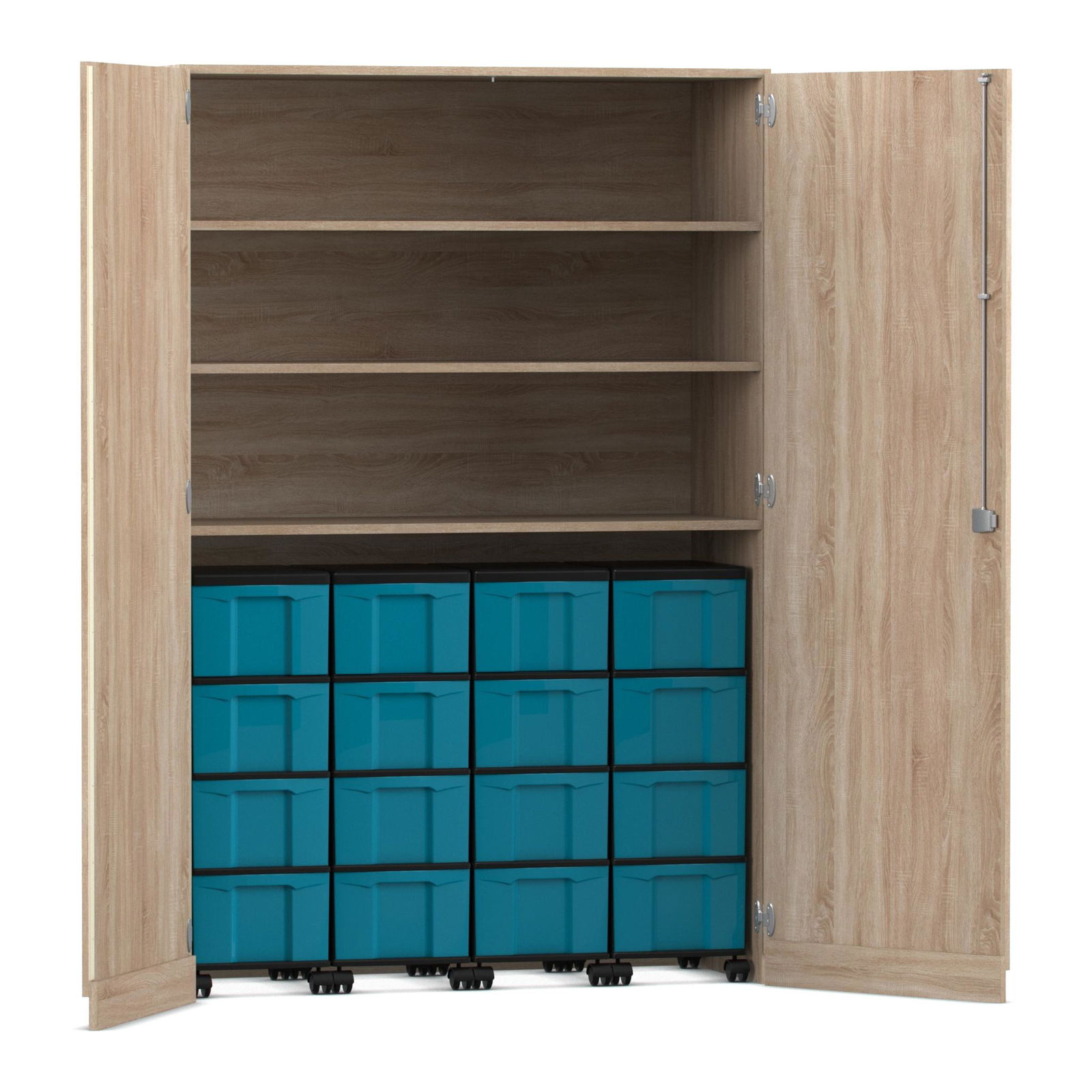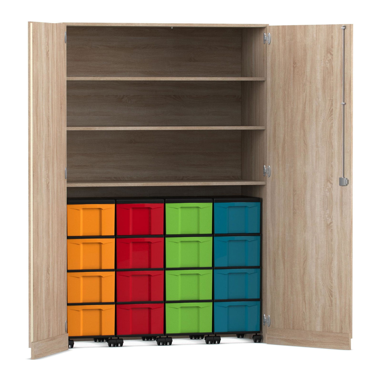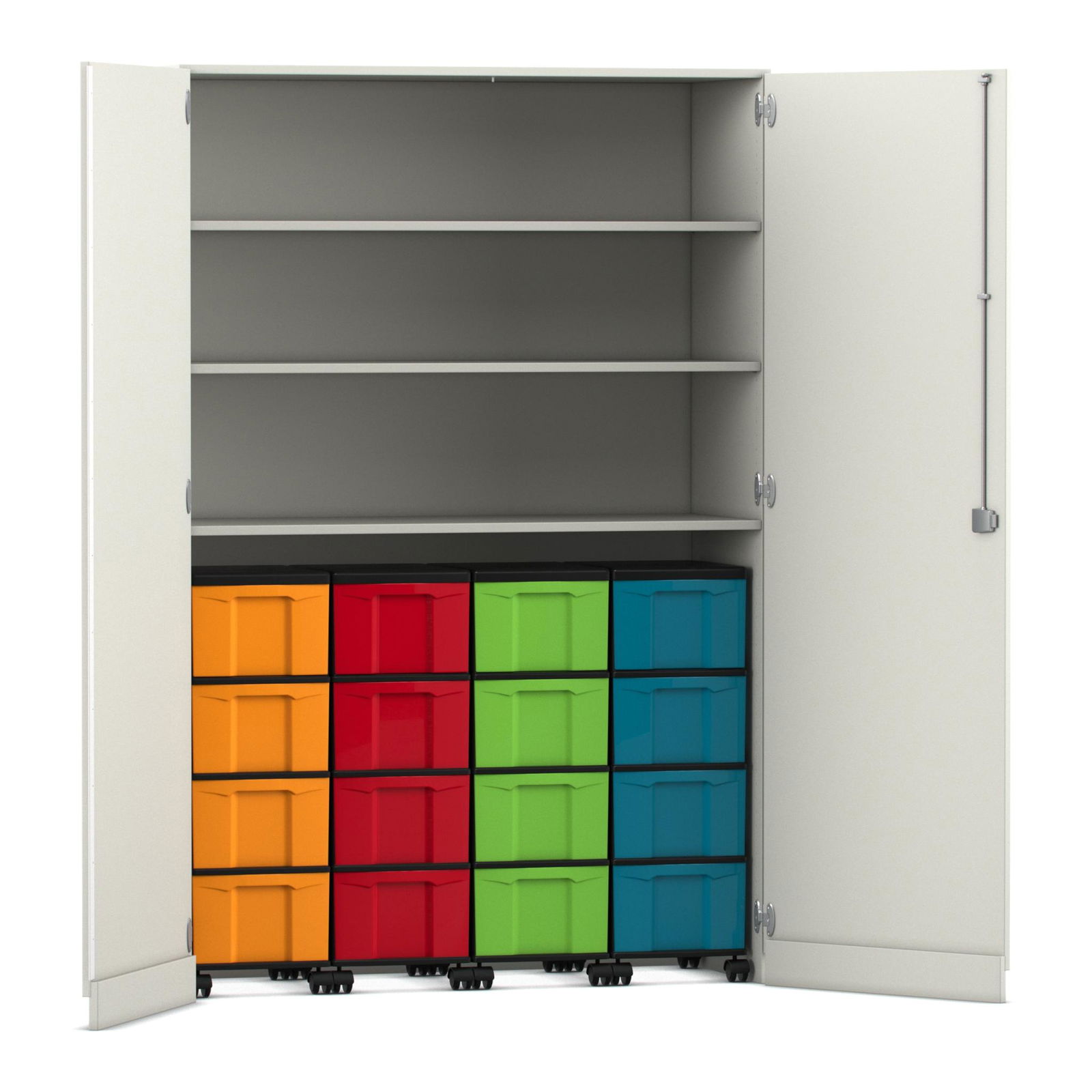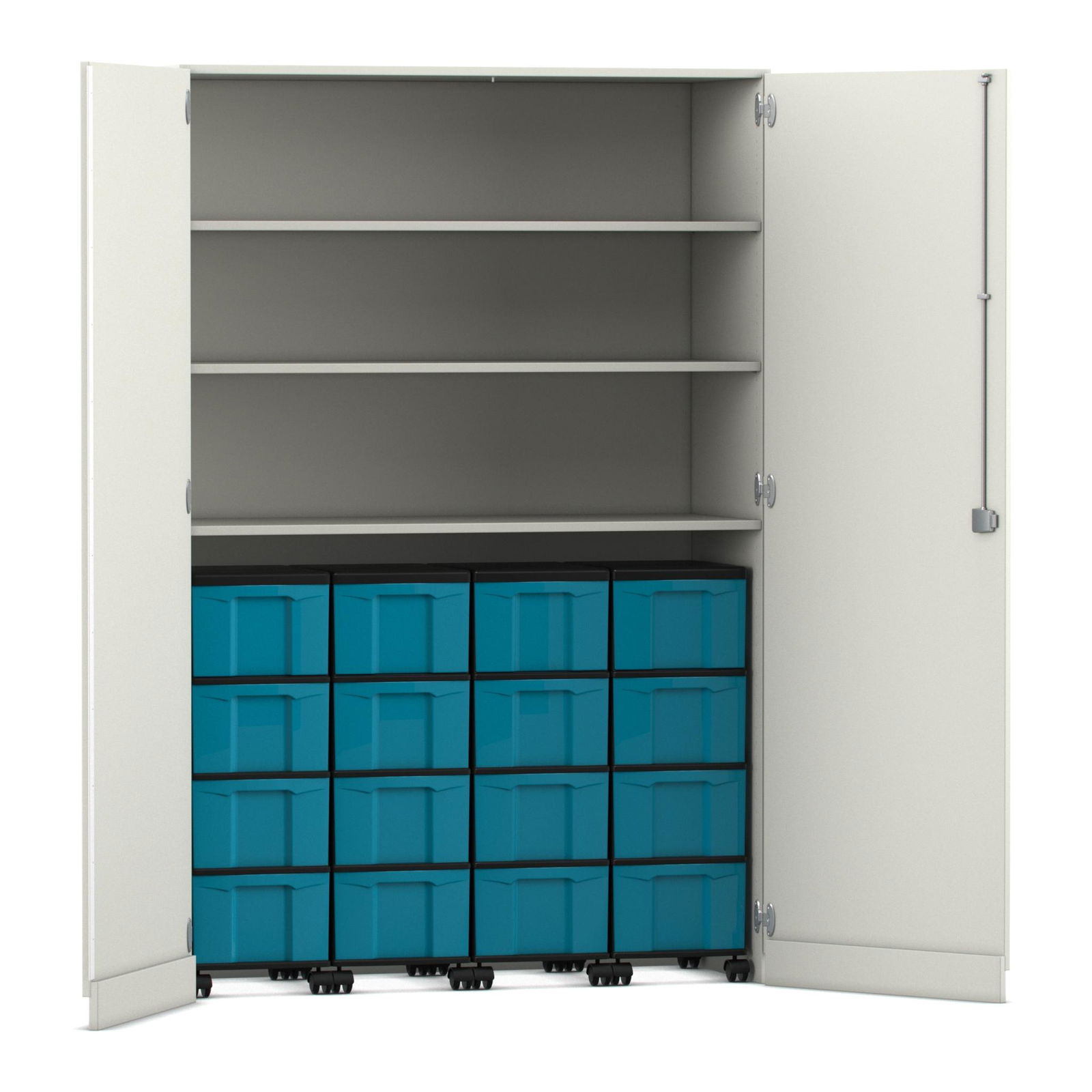 - Anzahl der Elemente: 1 Schrank, 4 Rollcontainer, 16 Boxen