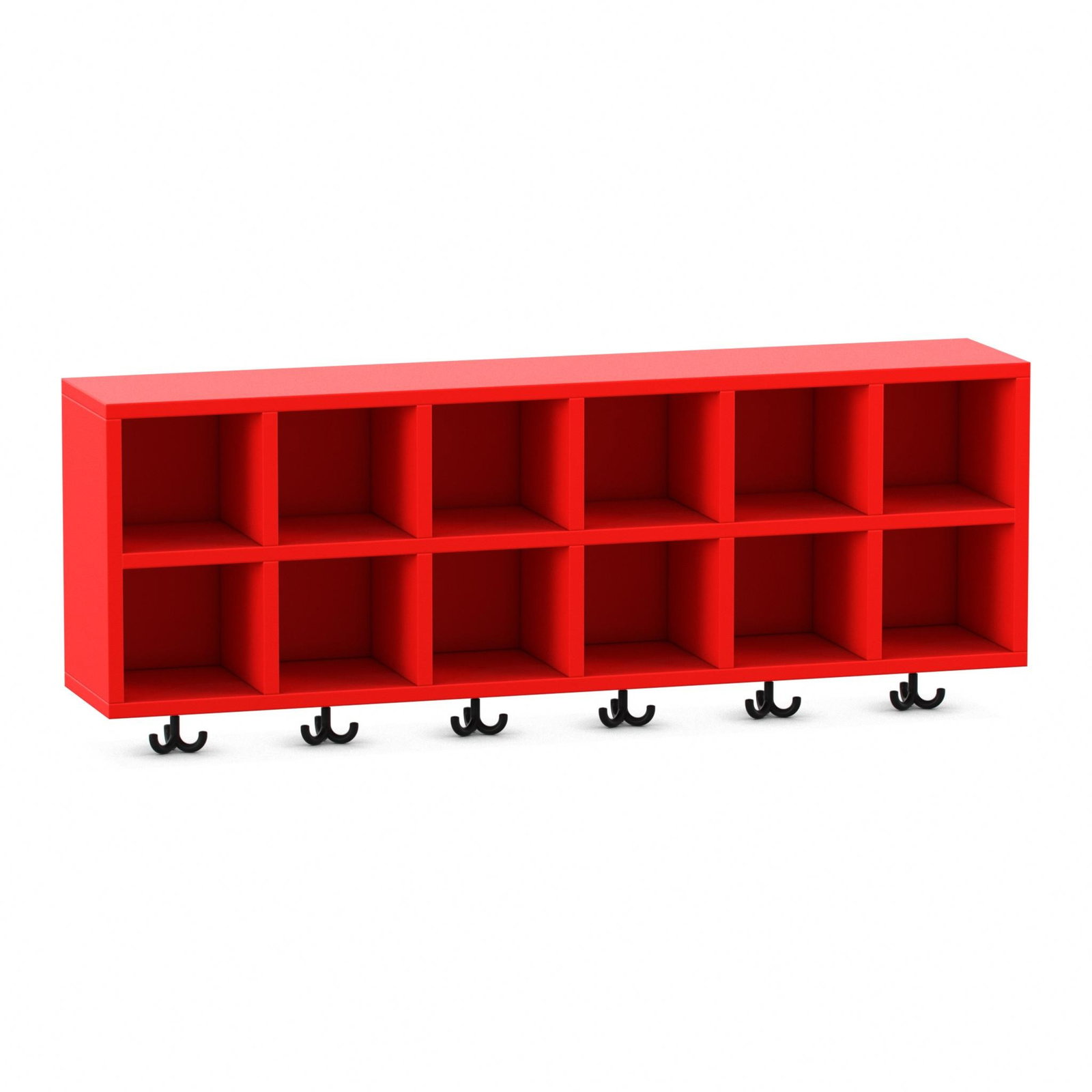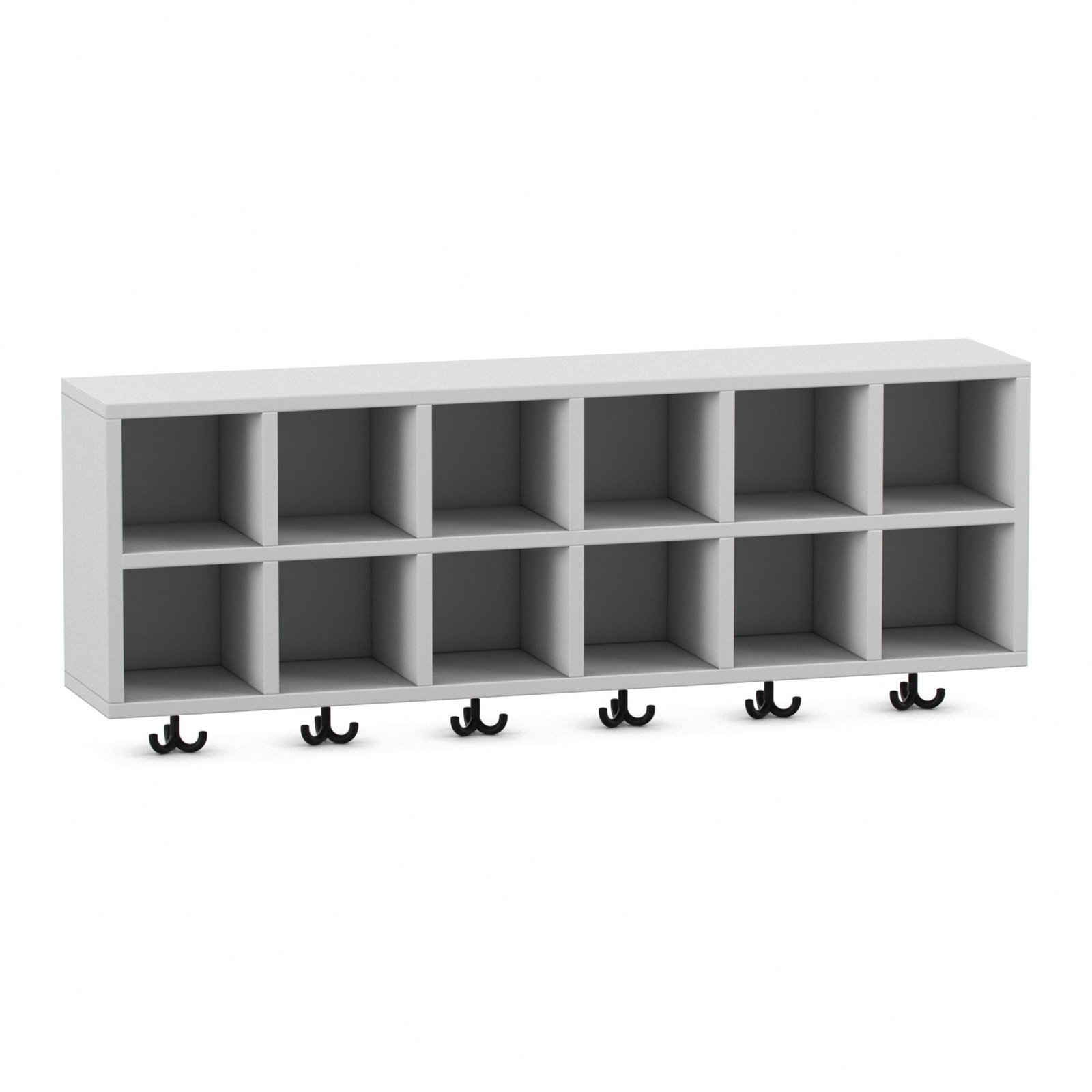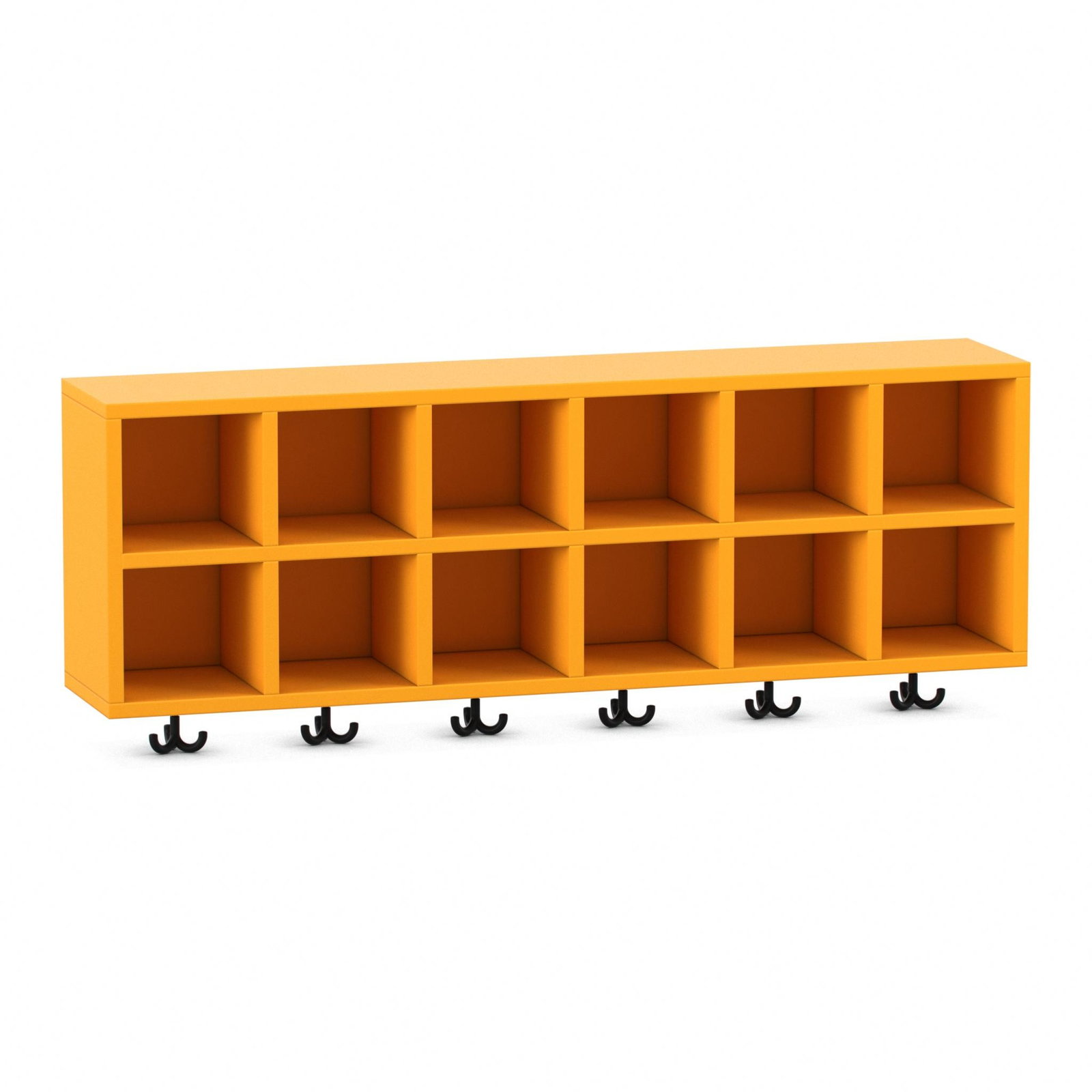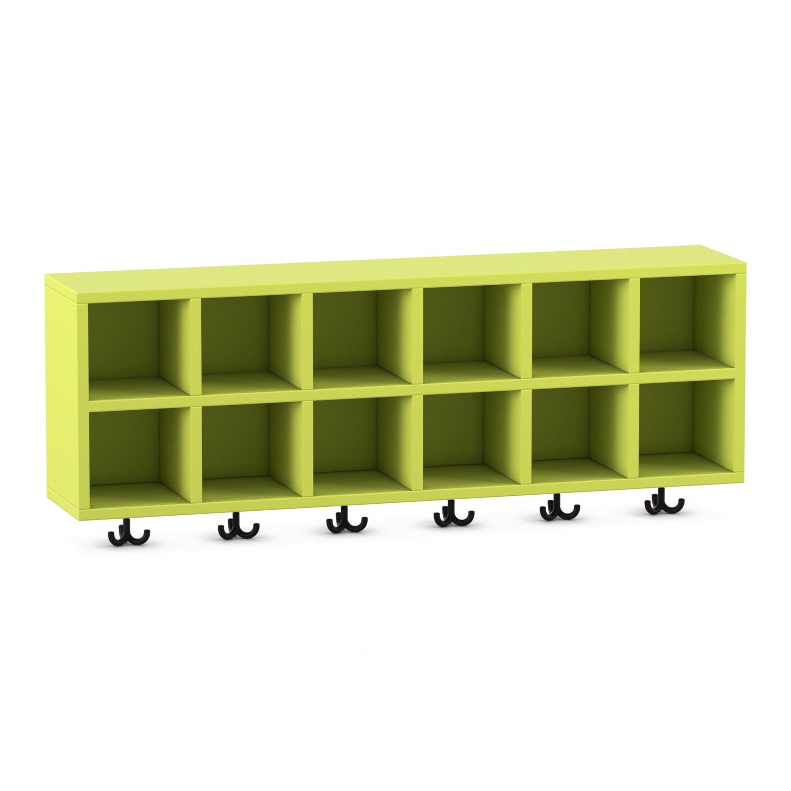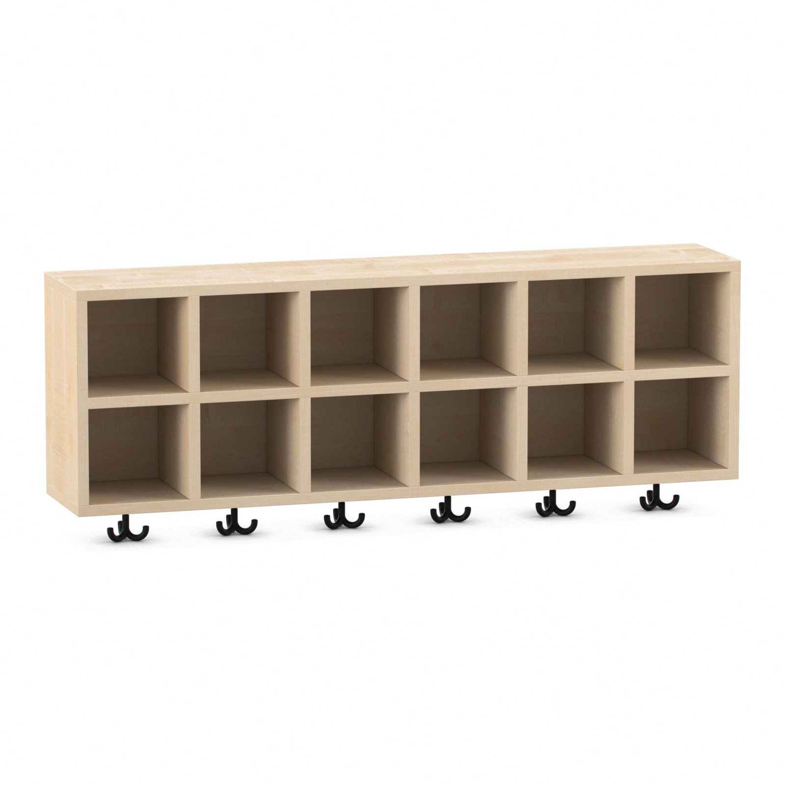 Die Förderung der kindlichen Selbstständigkeit ist ein zentrales pädagogisches Ziel in Kitas und Schulen. Mit diesem durchdachten Hängeregal geben Sie den Kindern einen eigenen, gut erreichbaren Bereich. In den insgesamt zwölf übersichtlichen Fächern können die Kleinen ihre persönlichen Dinge völlig eigenständig verstauen und wieder herausnehmen. Diese tägliche Routine stärkt das Selbstbewusstsein und entlastet das pädagogische Personal spürbar. Um perfekt auf Ihre individuellen Anforderungen einzugehen, erhalten Sie das Regal in zwei praktischen Varianten. Wählen Sie die Ausführung mit sechs Dreifachhaken, um sofort 18 Aufhängeplätze für Jacken, Taschen und Turnbeutel zu schaffen. Alternativ entscheiden Sie sich für die Variante ohne Haken, falls Sie bereits über separate Garderobenleisten an den Wänden verfügen. Die Haken befestigen Sie bei der Montage mit den mitgelieferten Schrauben ganz unkompliziert an den vorgebohrten Stellen.
