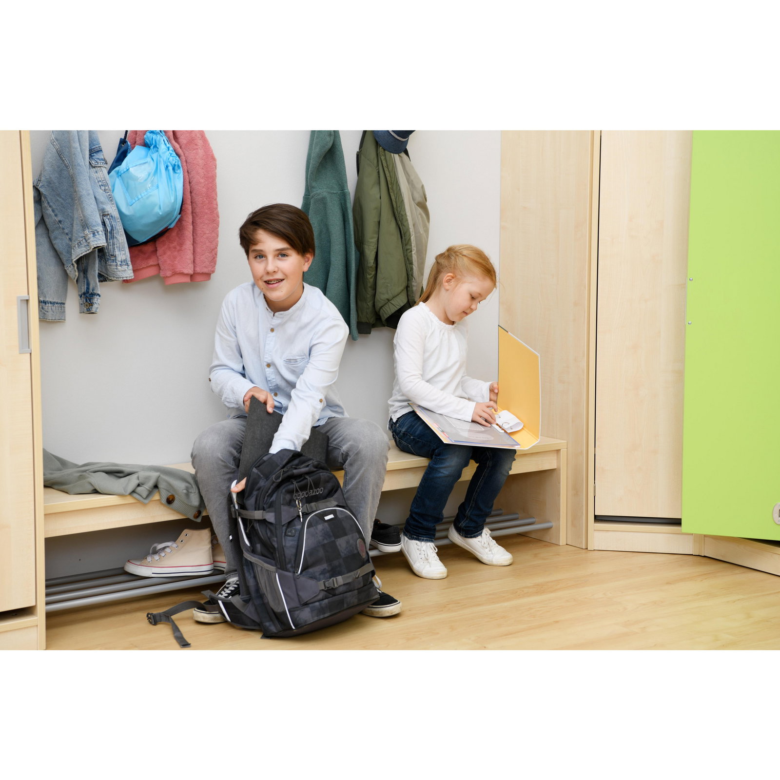 Möbel in Bildungseinrichtungen müssen jeden Tag enormen Belastungen standhalten. Aus diesem Grund fertigen wir die Garderobenbank direkt in unserer deutschen Betzold-Möbelproduktion unter den höchsten Qualitätsvorgaben. Das Möbelstück besteht aus erstklassigen Spanplatten, die mit einer extrem widerstandsfähigen Melaminharzbeschichtung versehen sind. Diese spezielle Oberfläche macht die Bank absolut kratzfest, stoßfest und abriebfest. Sie sieht auch nach vielen Jahren intensiver Nutzung noch tadellos aus und trotzt dem turbulenten Alltag mühelos. Die Reinigung gelingt Ihnen dabei ganz unkompliziert. Sie entfernen Schmutz einfach mit einem feuchten Tuch. Bei hartnäckigeren Flecken nutzen Sie gewöhnliche, milde Reinigungsmittel, um die Bank hygienisch sauber zu halten.