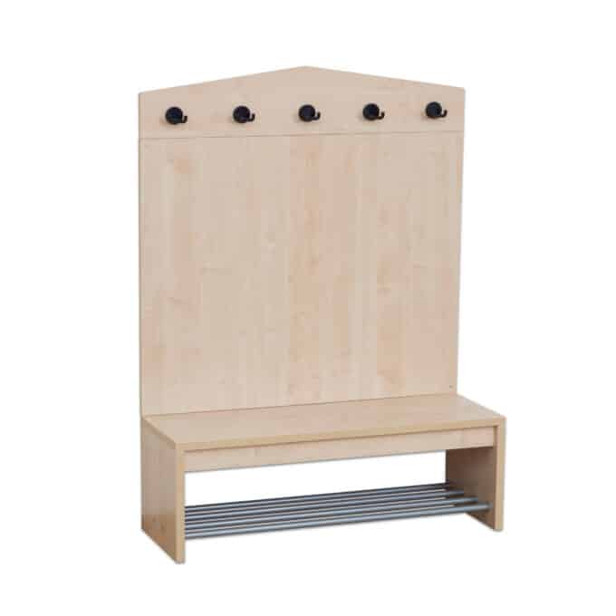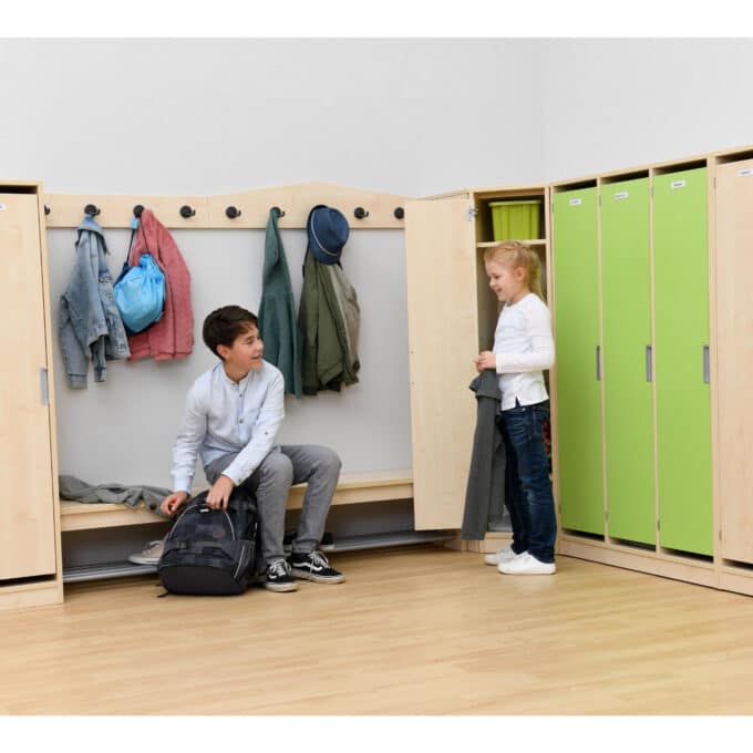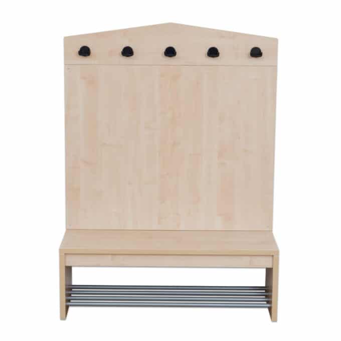 - Kindgerechtes und einladendes Design: Die verspielte Dachform spricht Kinder direkt an und schafft eine positive, heimelige Atmosphäre im Eingangsbereich. Sie signalisiert den Kindern: „Hier ist dein Platz, hier bist du willkommen.“ Das ansprechende Design motiviert die Kinder, ihre Sachen selbstständig aufzuhängen und fördert so spielerisch die Ordnung.