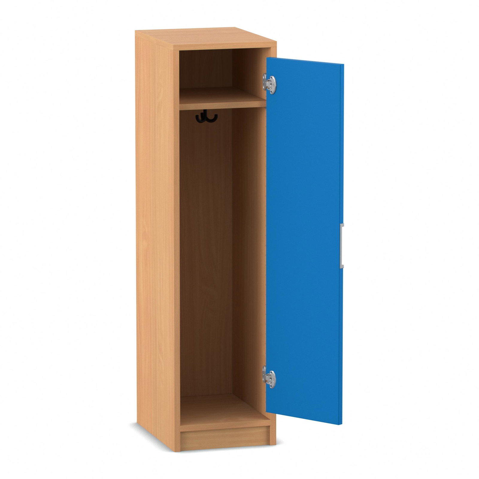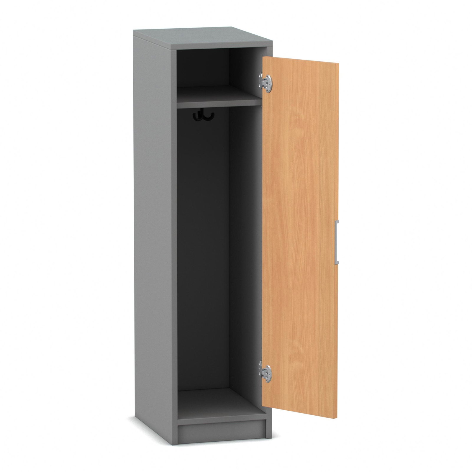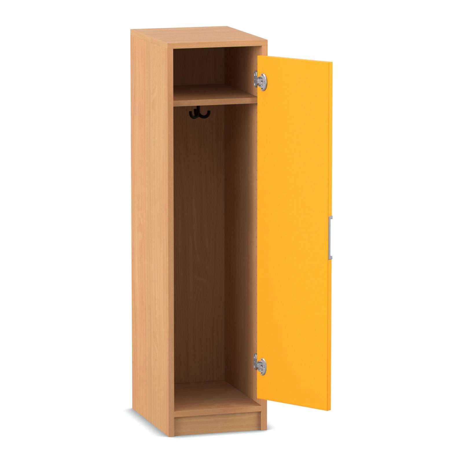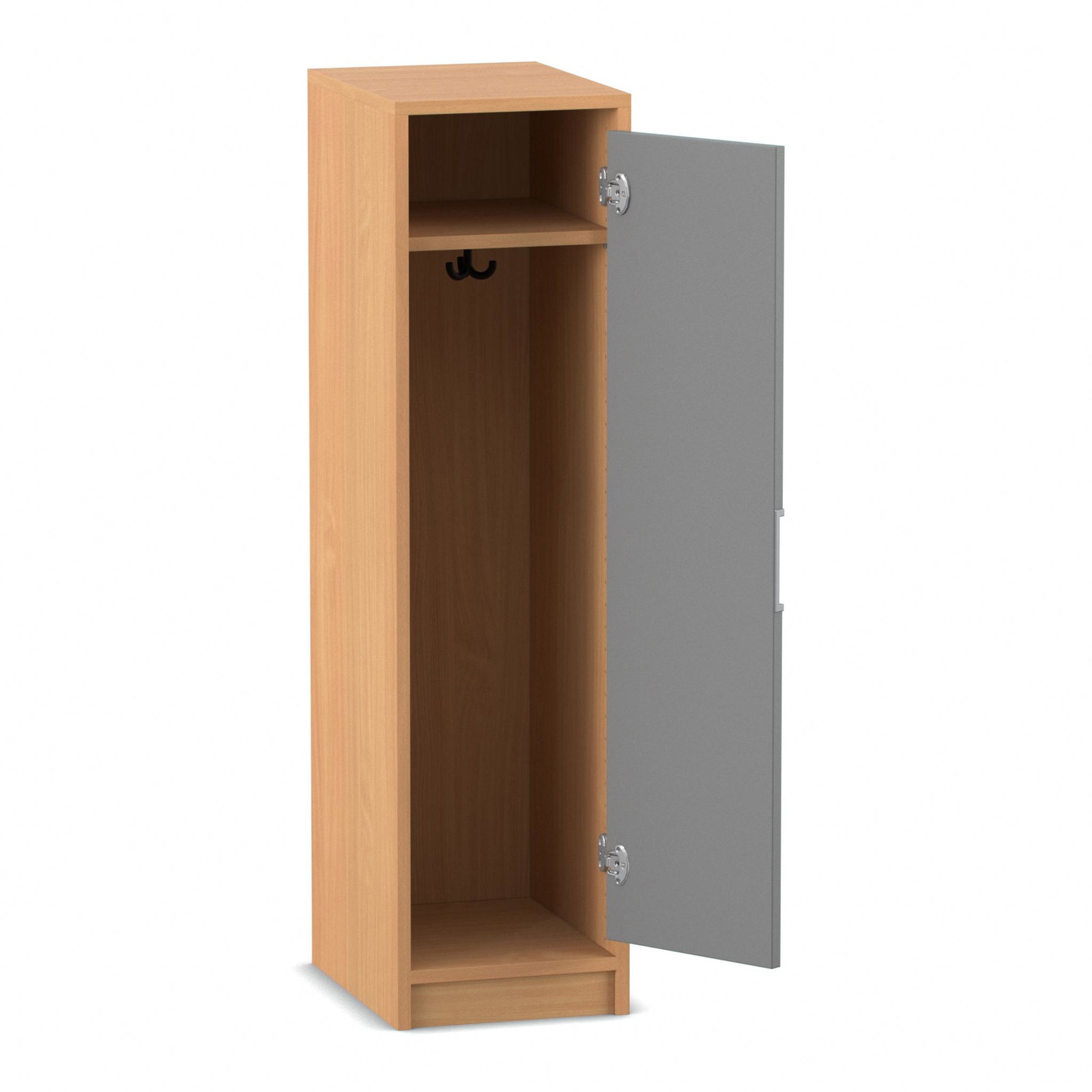 Möbel in Bildungseinrichtungen müssen jeden Tag enormen physischen Belastungen aushalten. Deshalb fertigen wir diesen Schrank aus erstklassigen Holz-Spanplatten, die mit einer hochwertigen Melaminharzbeschichtung versehen sind. Diese spezielle Oberfläche ist extrem widerstandsfähig. Sie ist dauerhaft kratzfest, stoßfest und abriebfest. Harte Reißverschlüsse oder unachtsame Stöße hinterlassen keine Spuren. Auch die Reinigung gestaltet sich denkbar einfach: Leichte Verschmutzungen wischen Sie schnell mit einem feuchten Baumwoll- oder Mikrofasertuch ab. Bei Bedarf nutzen Sie milde, handelsübliche Reinigungsmittel, um dauerhaft eine hygienische Umgebung zu wahren.