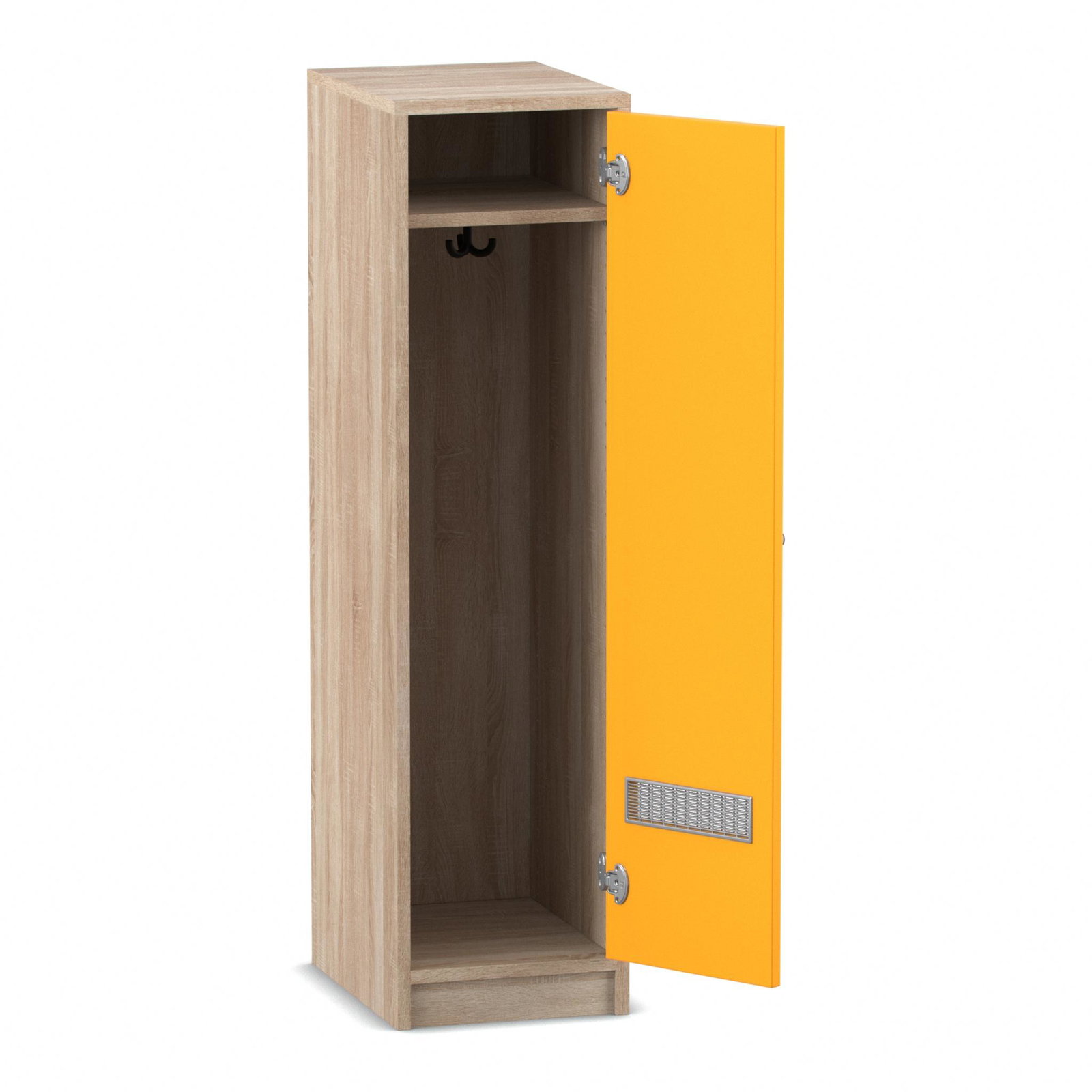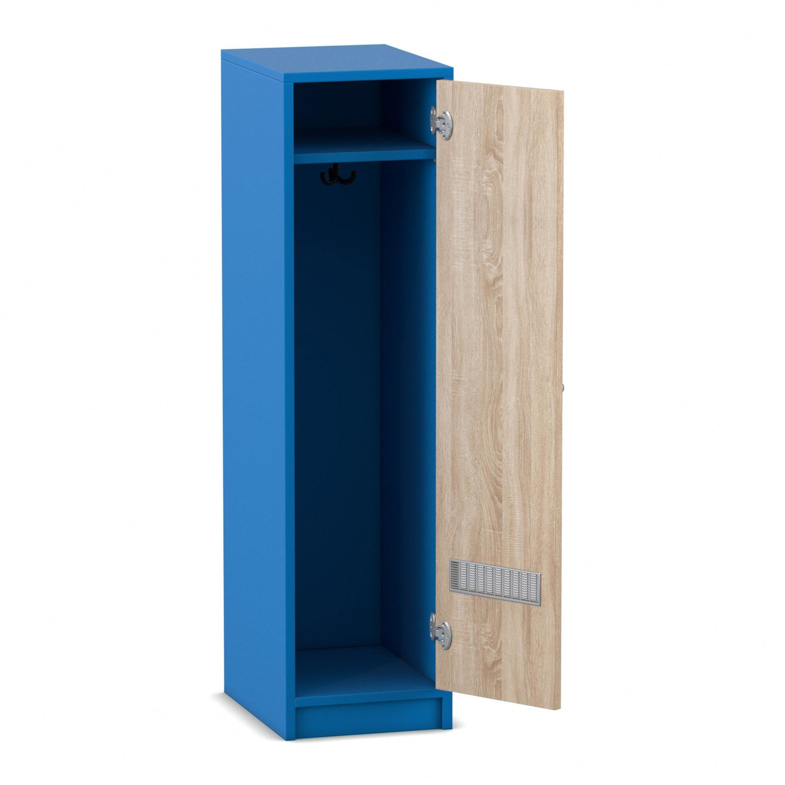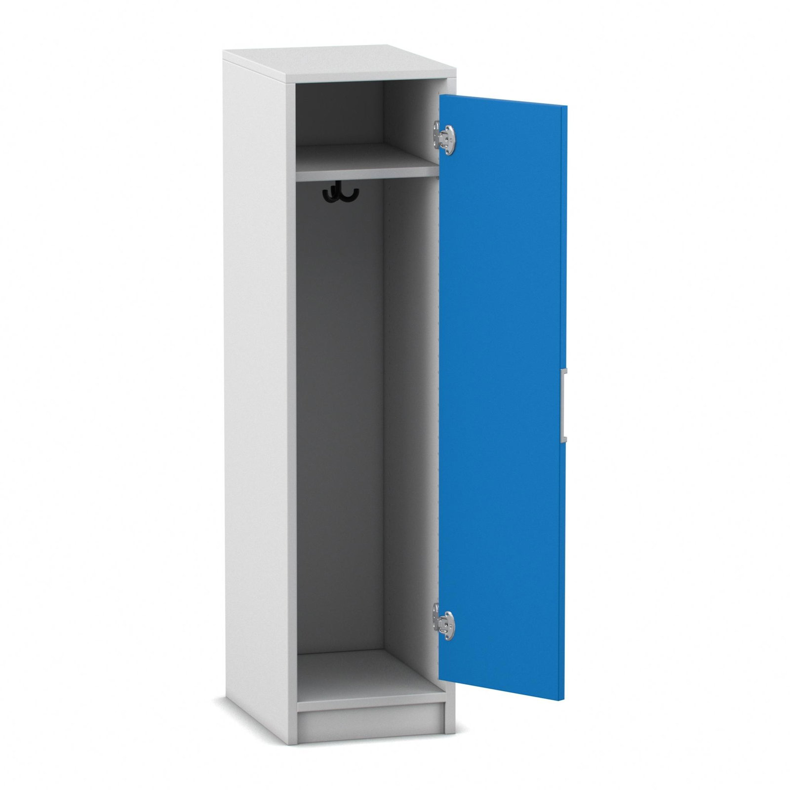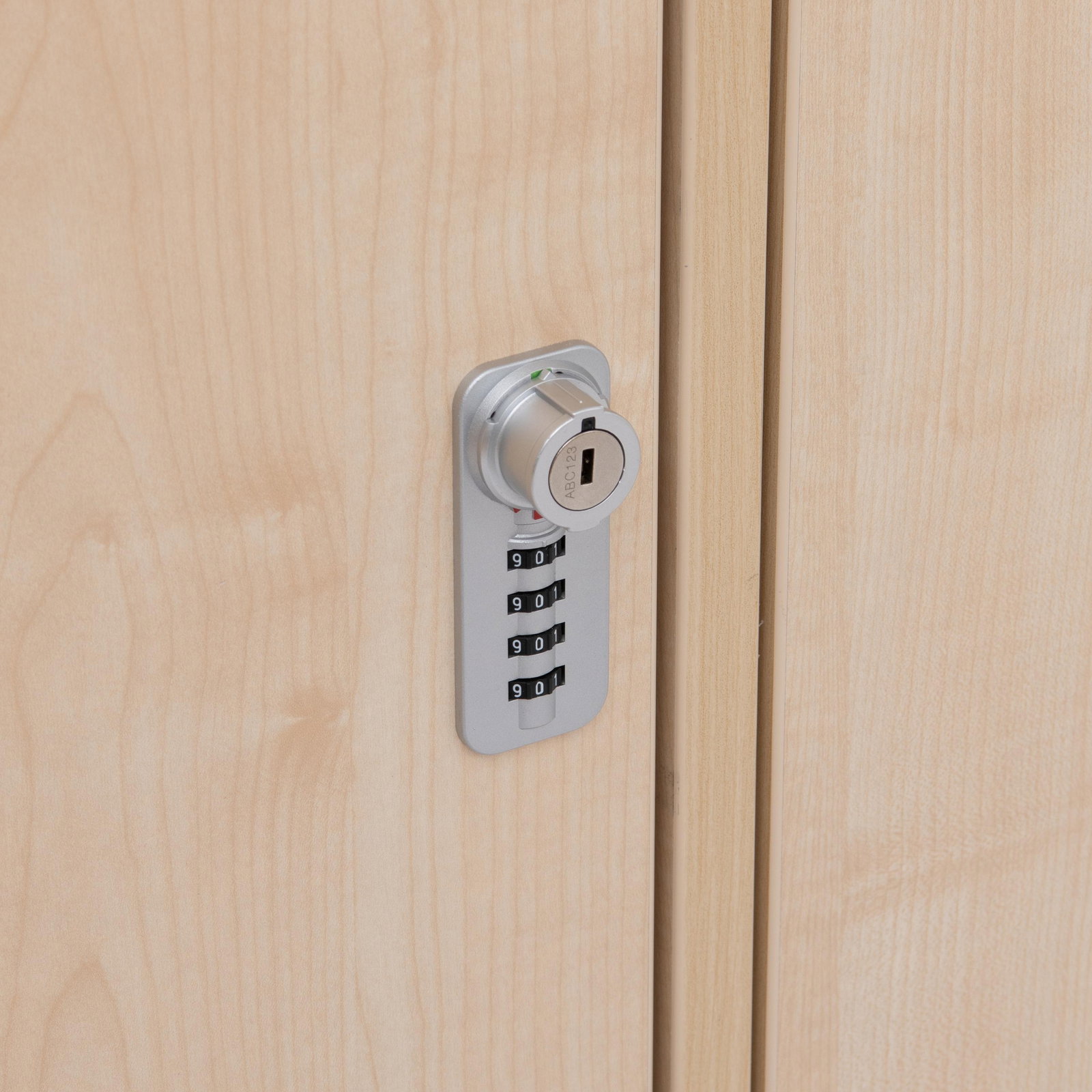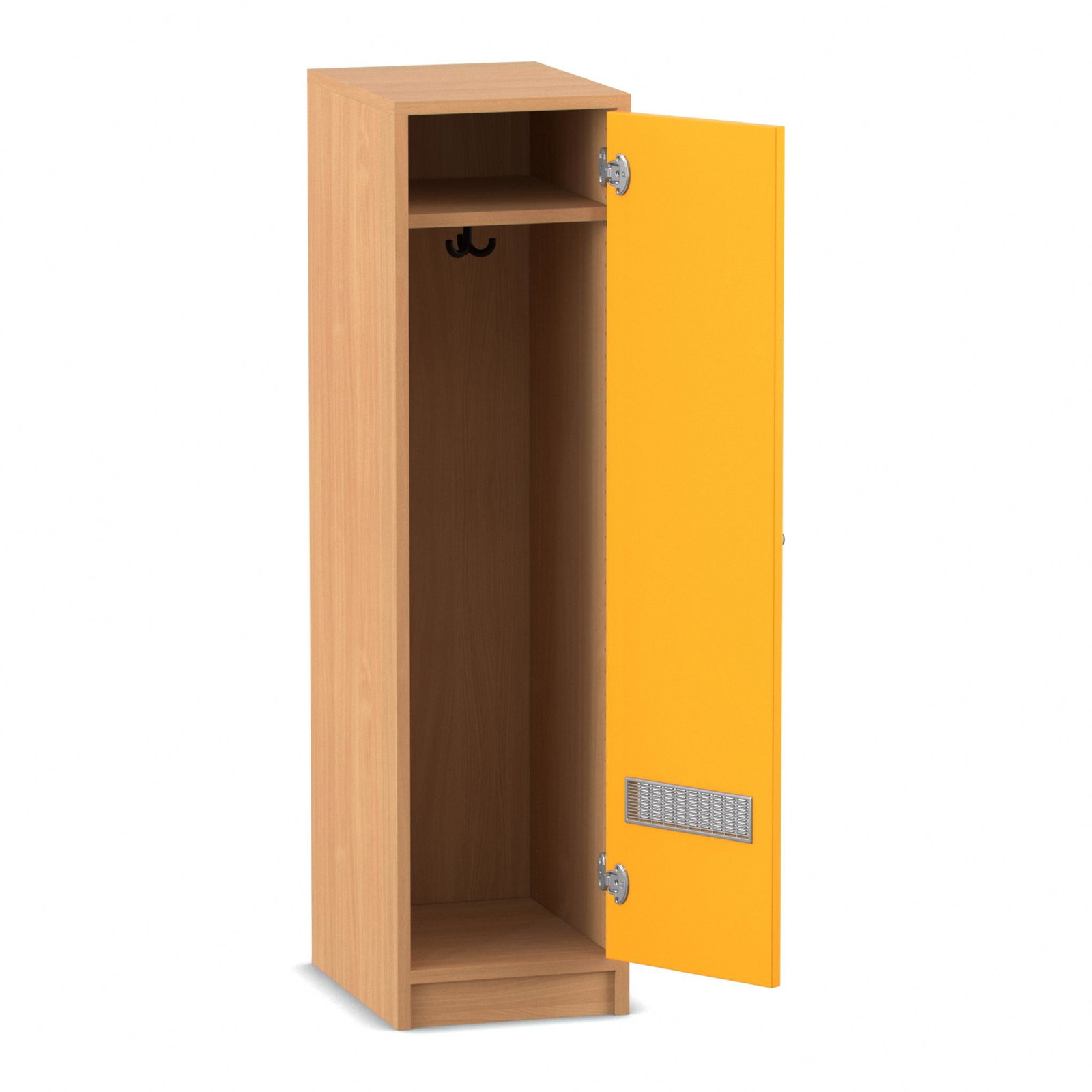 Möbel in Bildungseinrichtungen müssen jeden Tag enormen physischen Belastungen aushalten. Deshalb fertigen wir diesen Schrank aus erstklassigen Holz-Spanplatten, die mit einer hochwertigen Melaminharzbeschichtung versehen sind. Diese spezielle Oberfläche ist extrem widerstandsfähig. Sie ist dauerhaft kratzfest, stoßfest und abriebfest. Harte Reißverschlüsse oder unachtsame Stöße hinterlassen keine Spuren. Auch die Reinigung gestaltet sich denkbar einfach: Leichte Verschmutzungen wischen Sie schnell mit einem feuchten Baumwoll- oder Mikrofasertuch ab. Bei Bedarf nutzen Sie milde, handelsübliche Reinigungsmittel, um dauerhaft eine hygienische Umgebung zu wahren.