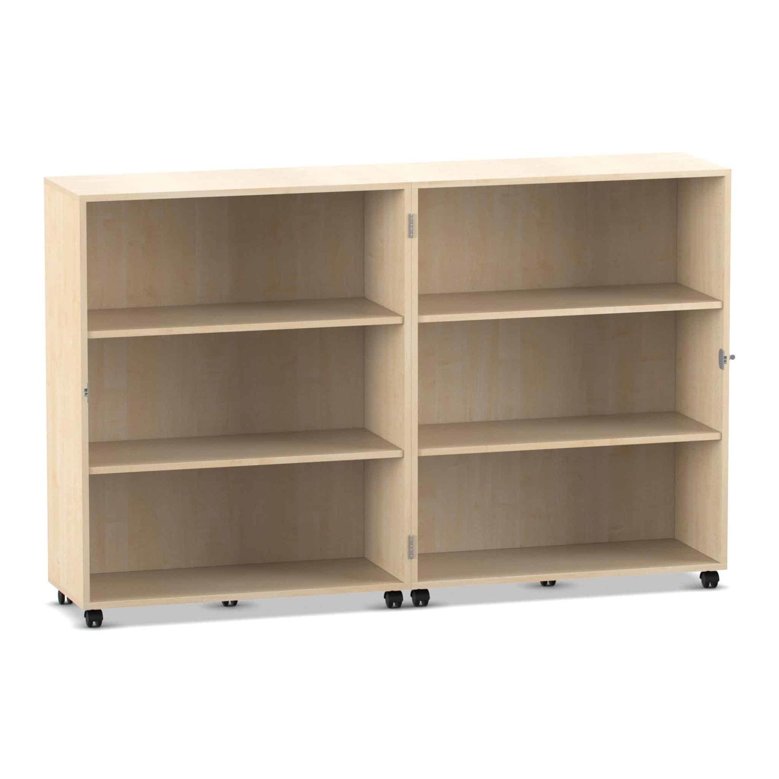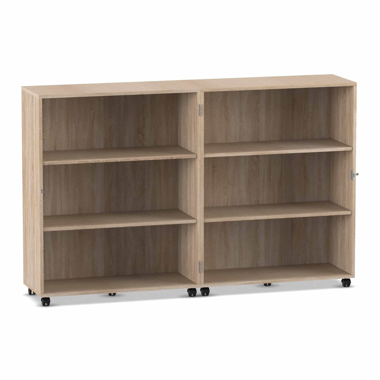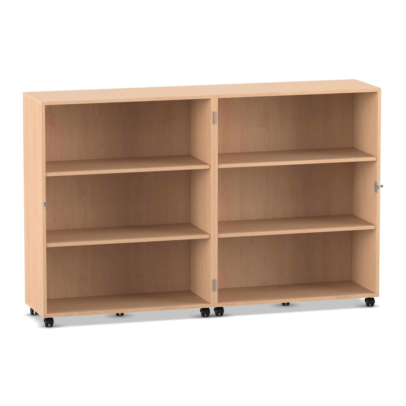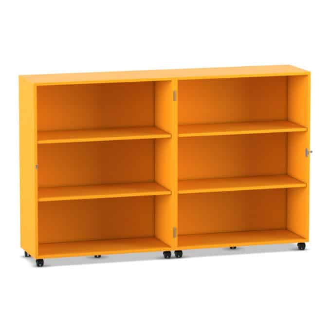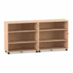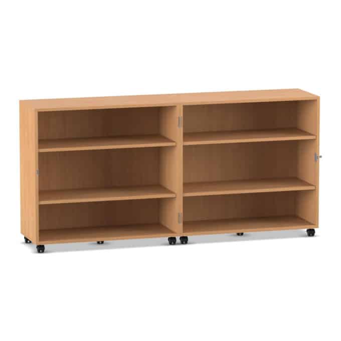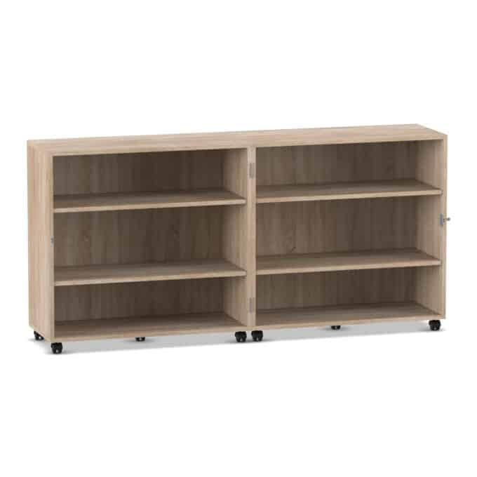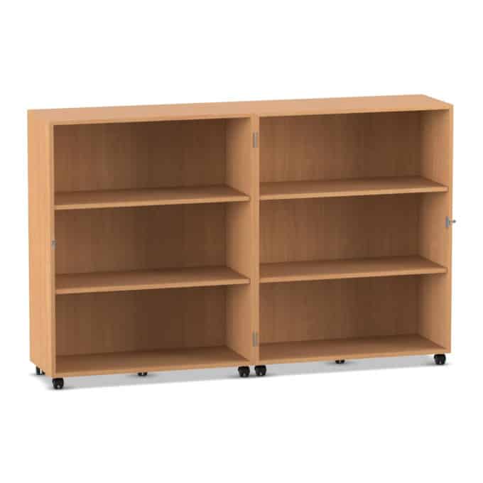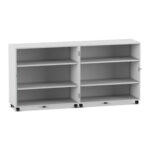 - Maximale Mobilität auf stabilen Lastrollen: Bringen Sie Ihre Materialien dorthin, wo sie gebraucht werden. Der Wagen gleitet auf zehn äußerst stabilen und leichtlaufenden Doppel-Lastrollen mühelos über den Boden. Schieben Sie Ihre mobile Bibliothek in die Leseecke oder den Materialwagen zur Bastelstation. Vier der Rollen sind mit Bremsen ausgestattet, die den Wagen sicher an seinem Platz fixieren, sowohl im geöffneten als auch im geschlossenen Zustand.