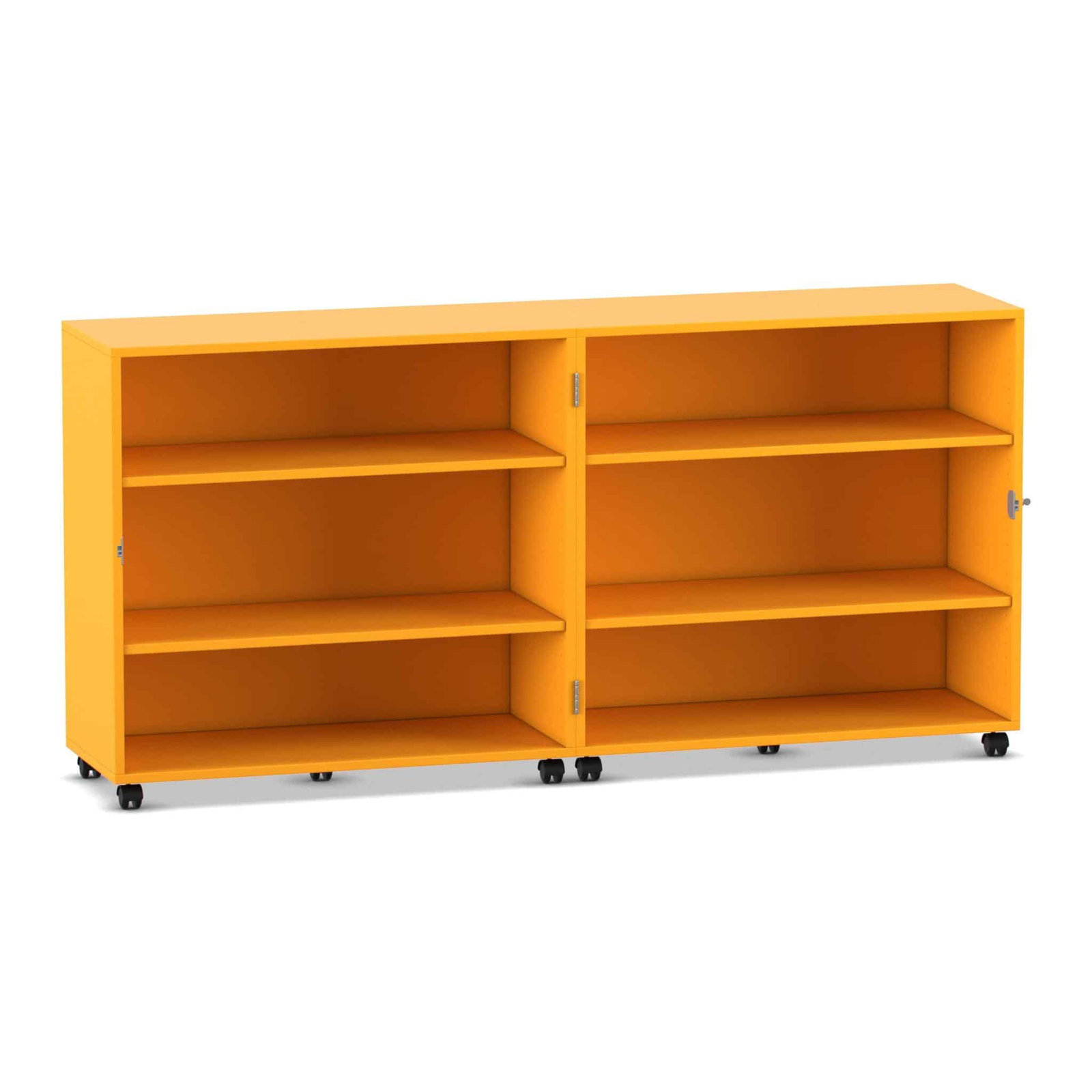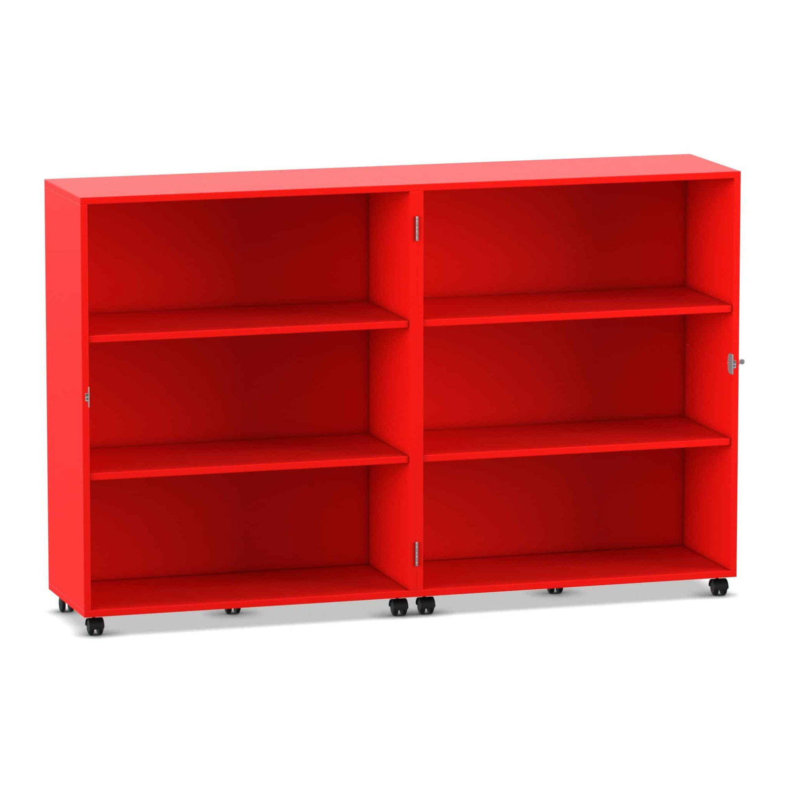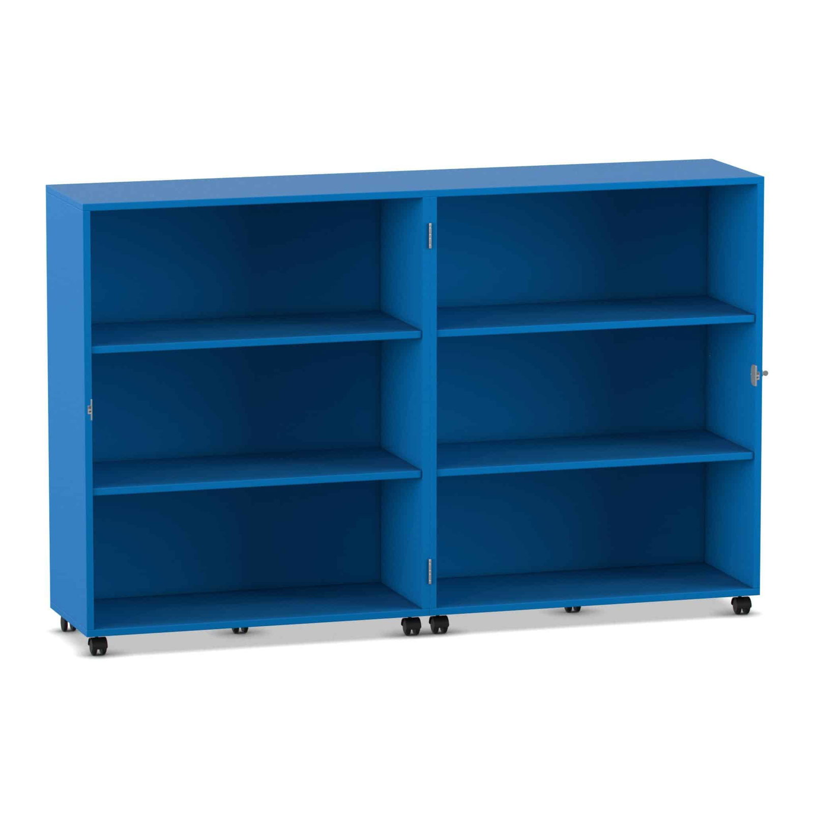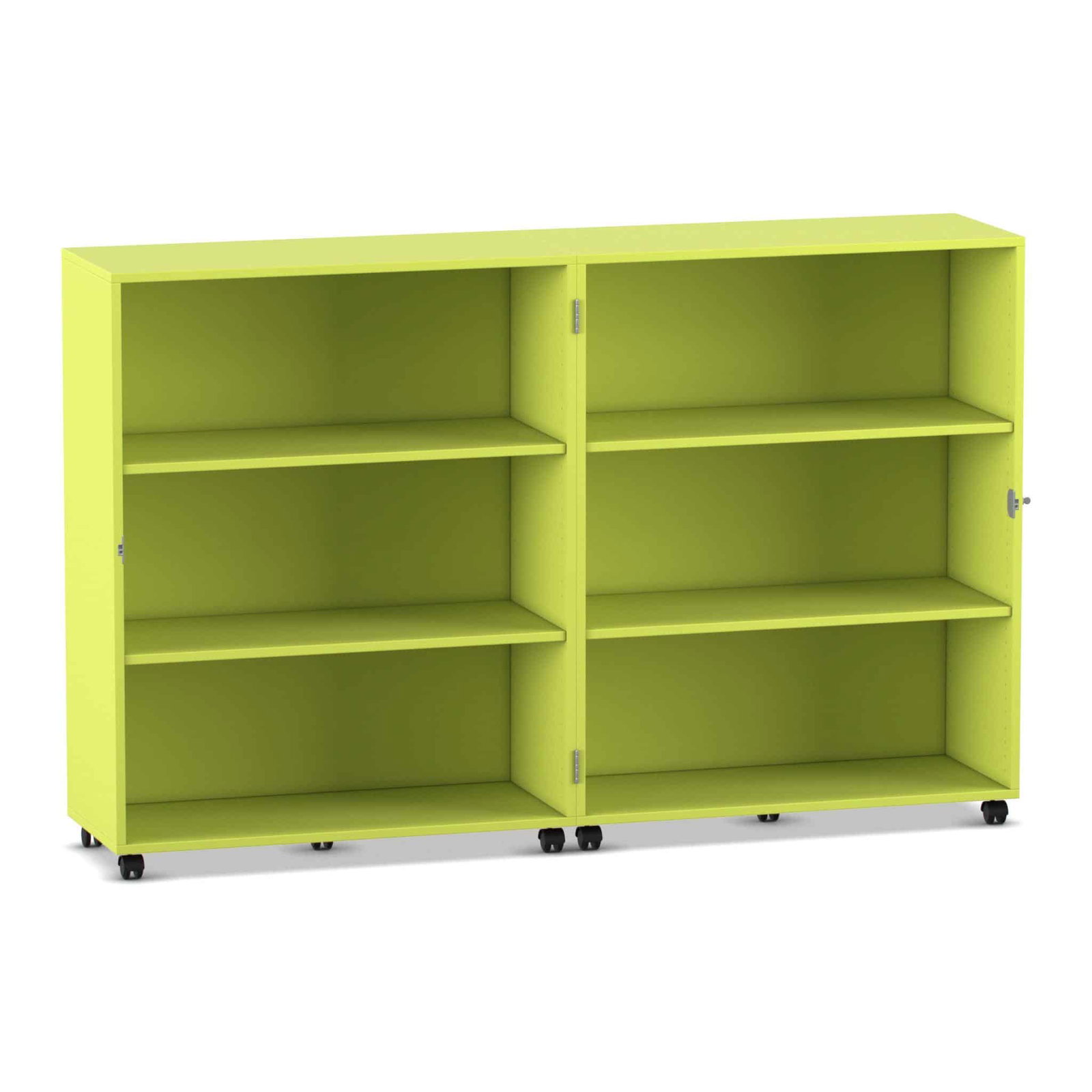 - Maximale Mobilität auf stabilen Lastrollen: Bringen Sie Ihre Materialien dorthin, wo sie gebraucht werden. Der Wagen gleitet auf zehn äußerst stabilen und leichtlaufenden Doppel-Lastrollen mühelos über den Boden. Schieben Sie Ihre mobile Bibliothek in die Leseecke oder den Materialwagen zur Bastelstation. Vier der Rollen sind mit Bremsen ausgestattet, die den Wagen sicher an seinem Platz fixieren, sowohl im geöffneten als auch im geschlossenen Zustand.