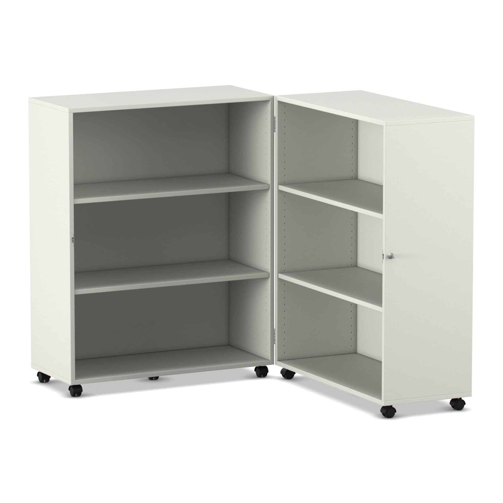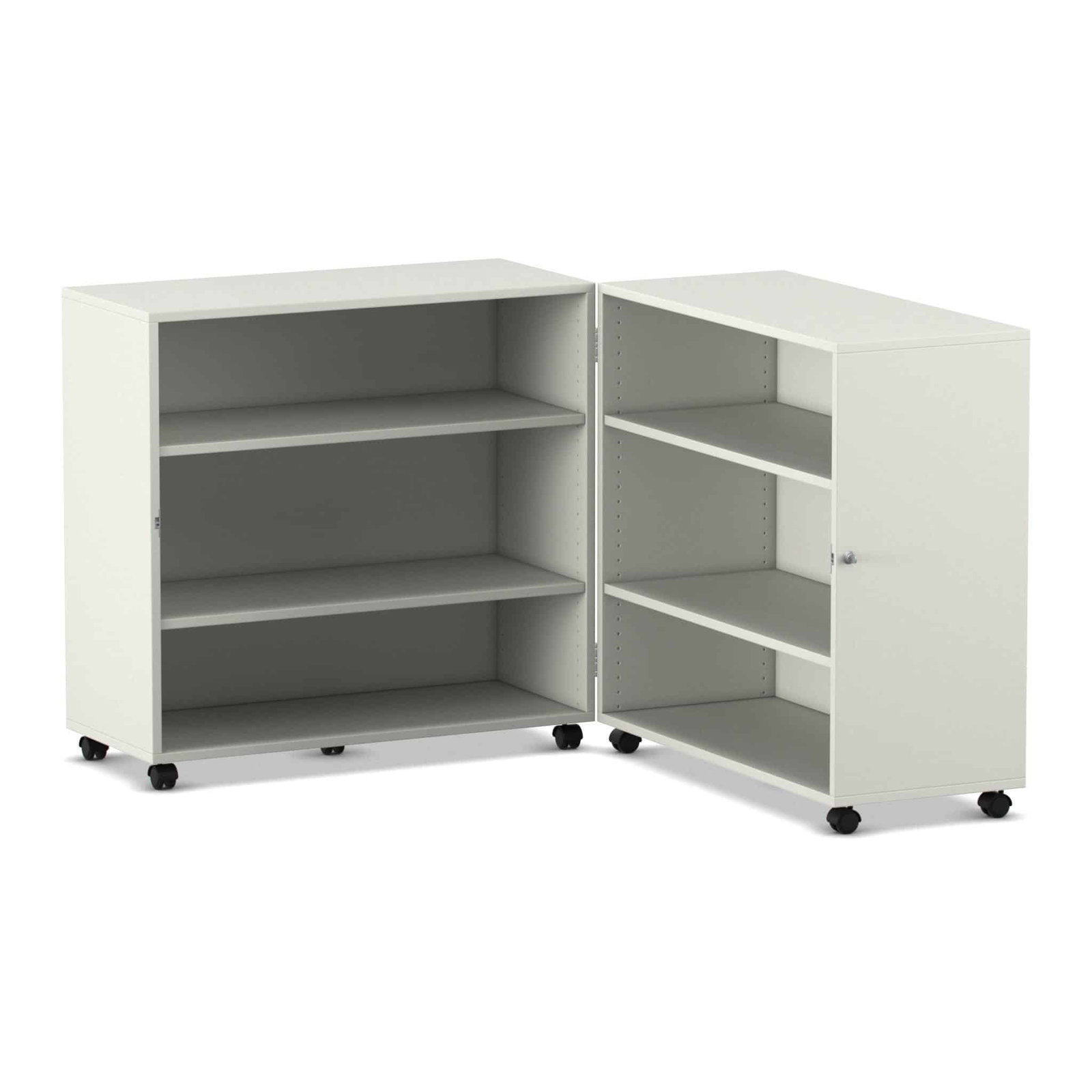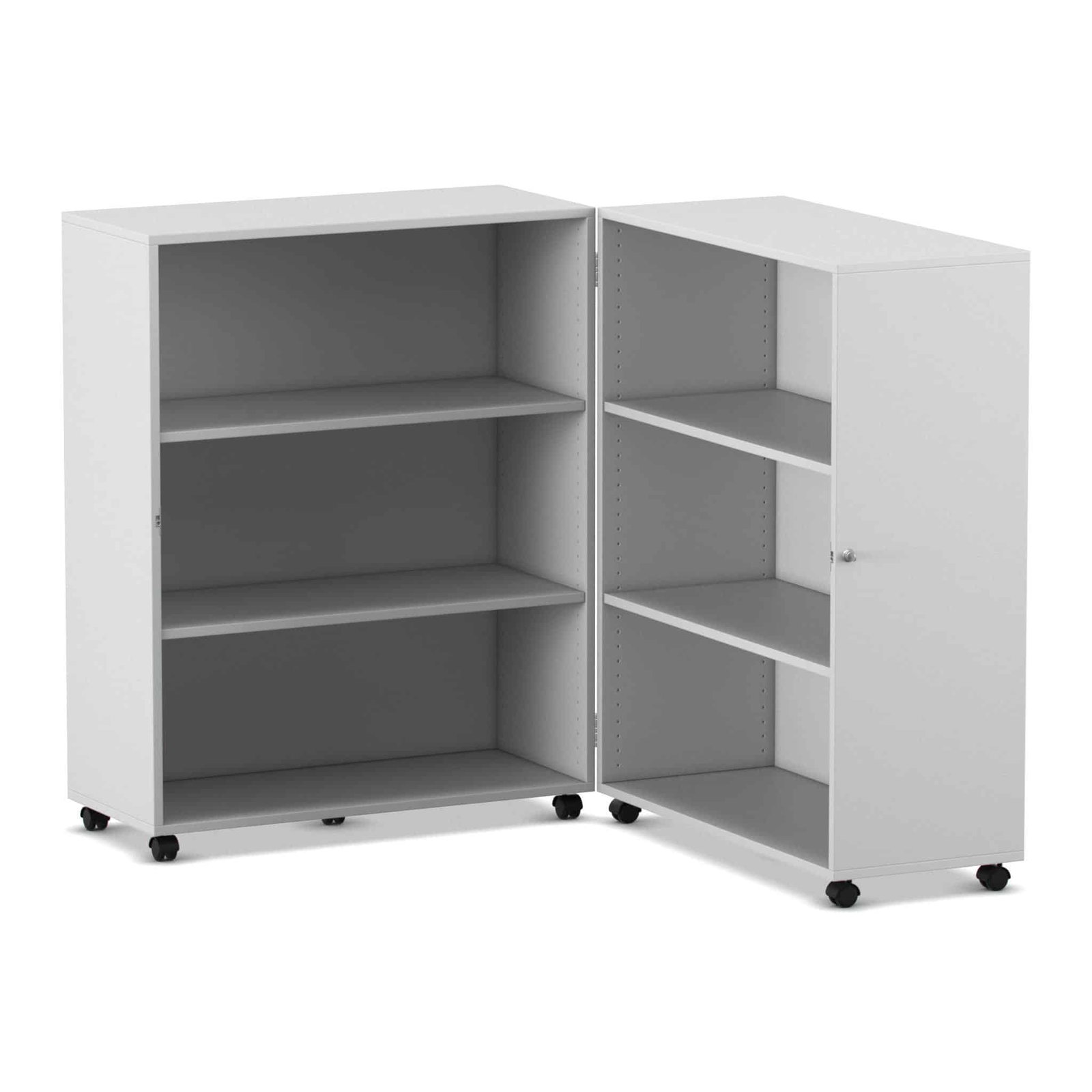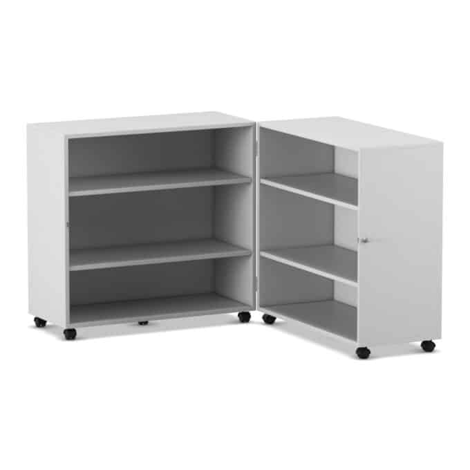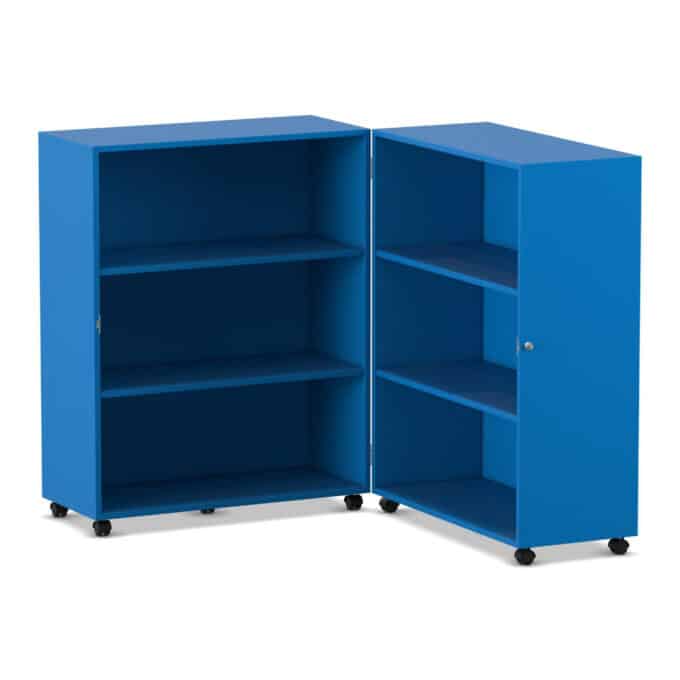 Stellen Sie sich eine komplette Bibliothek oder einen Materialschrank vor, der Ihnen bei Bedarf auf Abruf zur Verfügung steht und bei Nichtgebrauch einfach verschwindet. Der Flexeo® Klapp-Wagen ist genau dieser Verwandlungskünstler für Ihre Räume. Er ist eine mobile, abschließbare und unglaublich vielseitige Aufbewahrungslösung, die sich bei Bedarf auf fast zwei Meter Breite entfaltet und eine Fülle an Stauraum bietet. Wenn die Materialien nicht mehr benötigt werden, klappen Sie ihn einfach zusammen, schließen ihn ab und rollen ihn mühelos beiseite. Entwickelt für maximale Flexibilität in dynamischen Lern- und Arbeitsumgebungen, kombiniert dieser Wagen Sicherheit, Mobilität und ein enormes Fassungsvermögen auf einzigartige Weise.