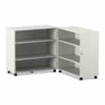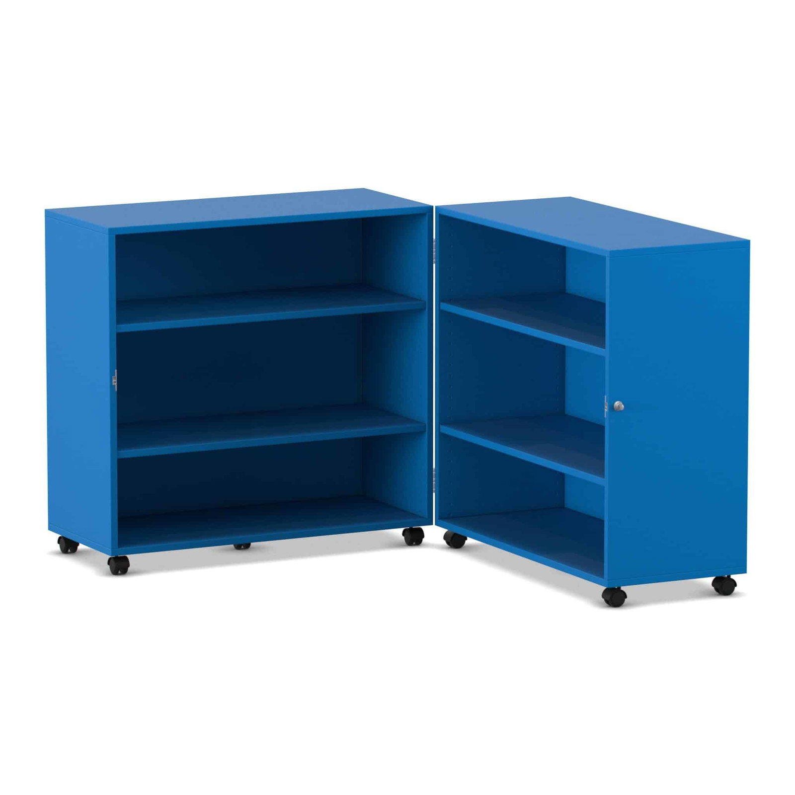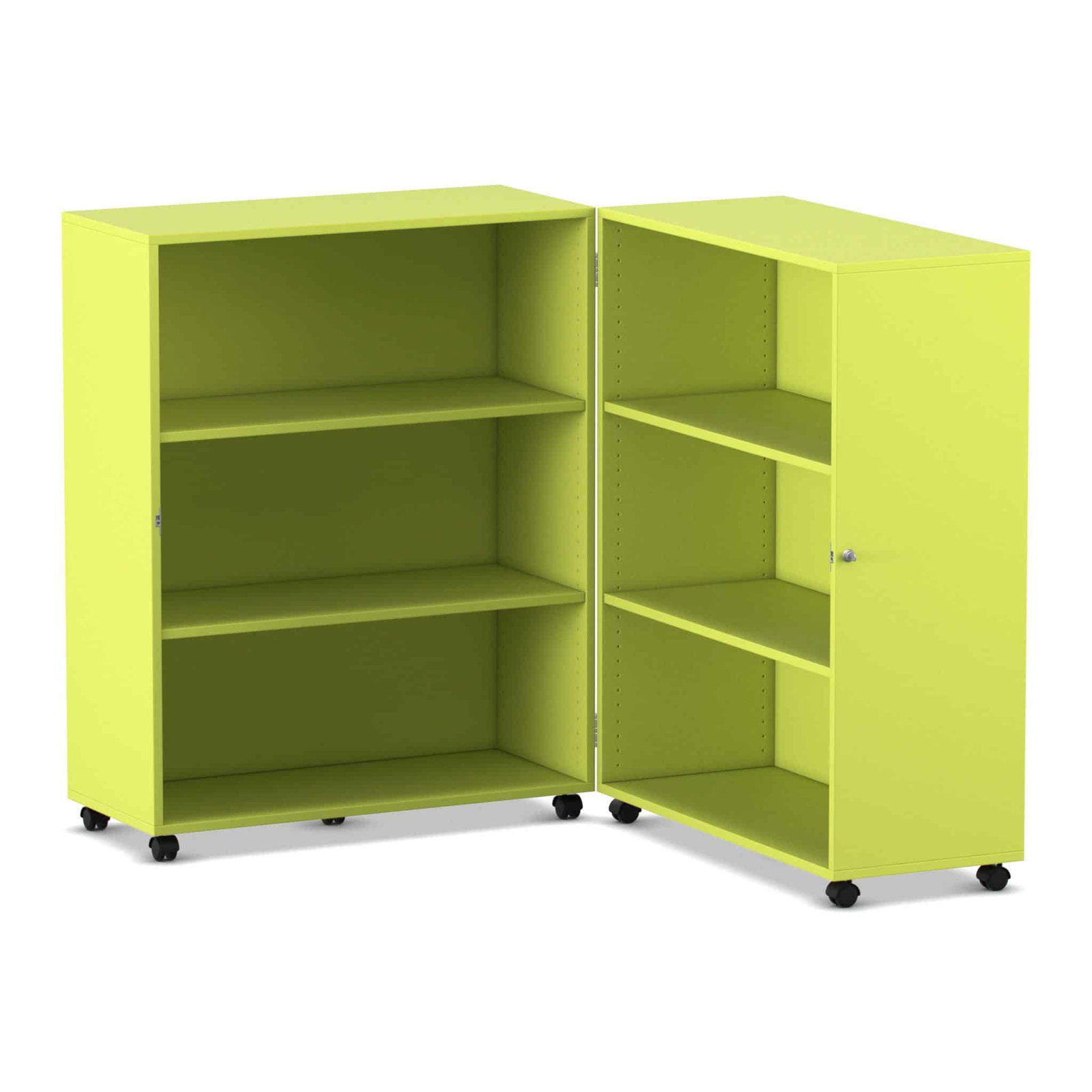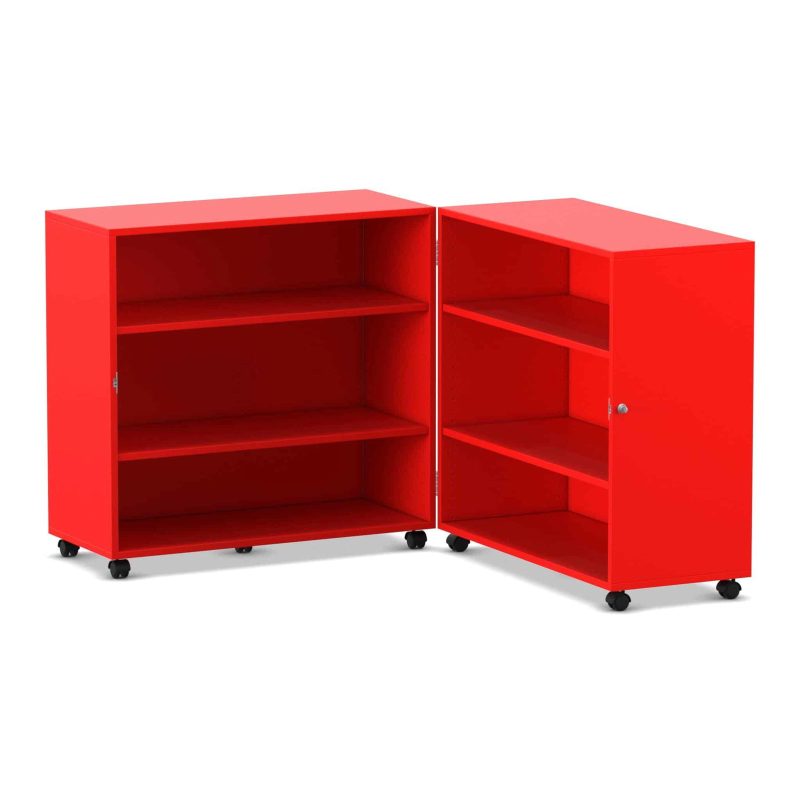 Stellen Sie sich eine komplette Bibliothek oder einen Materialschrank vor, der Ihnen bei Bedarf auf Abruf zur Verfügung steht und bei Nichtgebrauch einfach verschwindet. Der Flexeo® Klapp-Wagen ist genau dieser Verwandlungskünstler für Ihre Räume. Er ist eine mobile, abschließbare und unglaublich vielseitige Aufbewahrungslösung, die sich bei Bedarf auf fast zwei Meter Breite entfaltet und eine Fülle an Stauraum bietet. Wenn die Materialien nicht mehr benötigt werden, klappen Sie ihn einfach zusammen, schließen ihn ab und rollen ihn mühelos beiseite. Entwickelt für maximale Flexibilität in dynamischen Lern- und Arbeitsumgebungen, kombiniert dieser Wagen Sicherheit, Mobilität und ein enormes Fassungsvermögen auf einzigartige Weise.