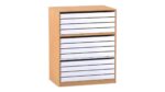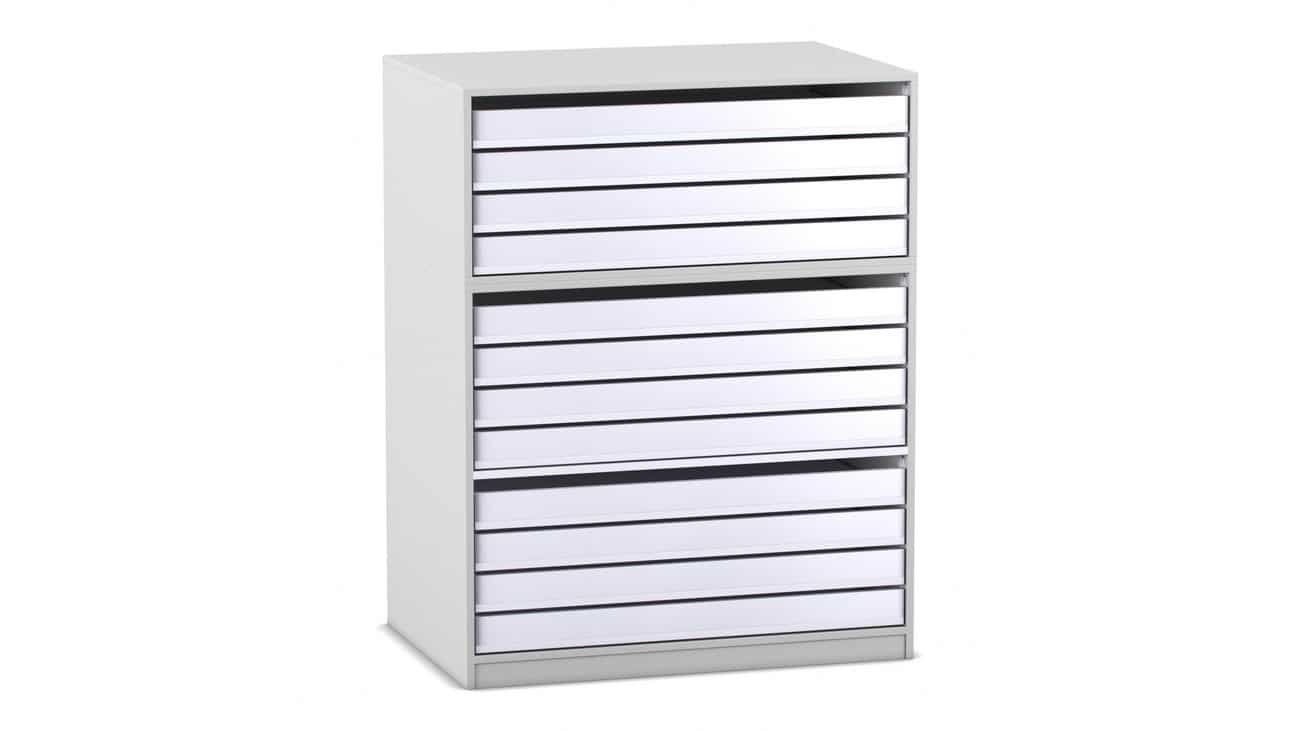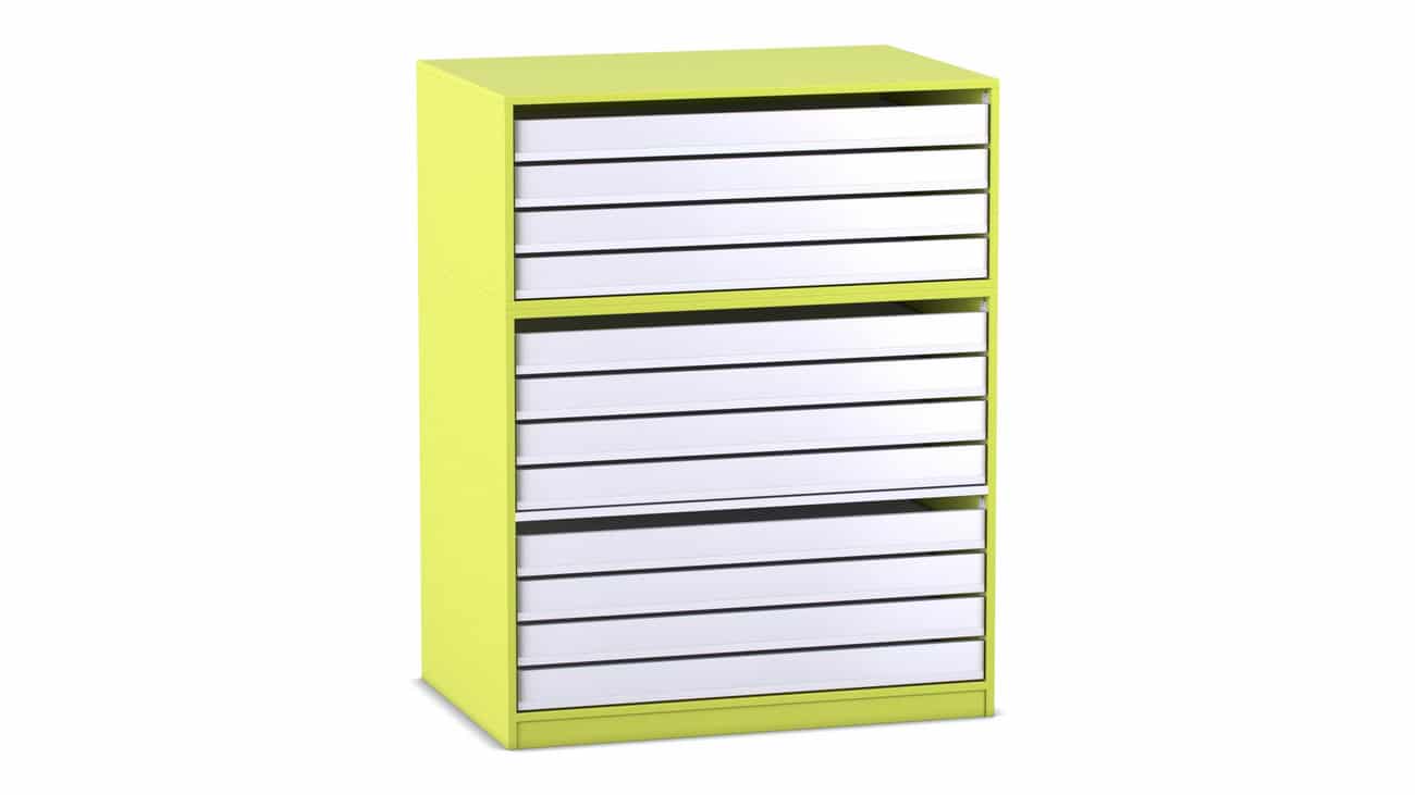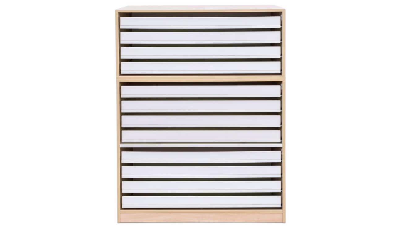 Willkommen beim Flexeo® Papier- und Bilderschrank mit 12 großen Auszügen! Dieses hochwertige Möbelstück, made in Germany, ist die perfekte Lösung für die Aufbewahrung von Bastelpapiere und anderen kreativen Materialien. Mit seinem durchdachten Design und der robusten Bauweise sorgt er für Ordnung und Übersichtlichkeit in jedem Klassenraum, Atelier oder Kreativbereich.