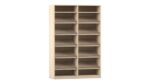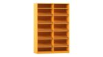 Das Flexeo® Regal ist mit 10 Schrägablagen ausgestattet, die über eine praktische plexiglas Aufkante verfügen. Diese schützt Ihre Exponate und sorgt dafür, dass alles sicher und übersichtlich bleibt. Die 4 Fächer bieten zusätzliche Stauraum für größere Bücher oder Materialien und schaffen eine vielseitige Aufbewahrungslösung.