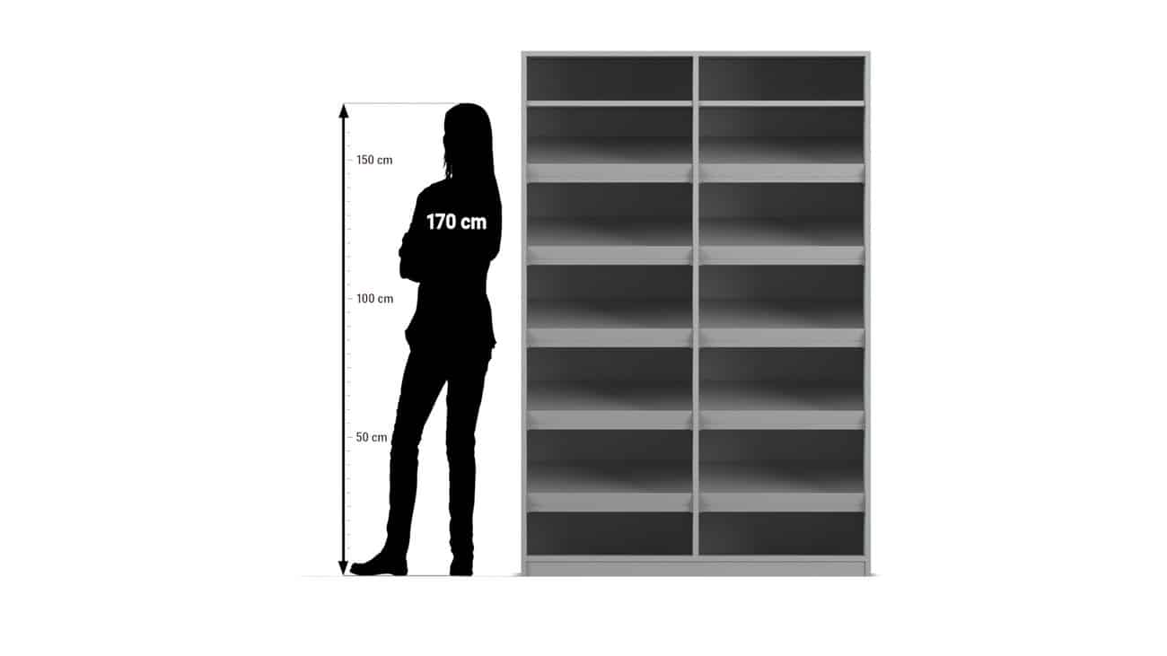Mit einer Höhe von 190 cm, einer Breite von 126,4 cm und einer Tiefe von 48 cm oder 58 cm ist dieses Regal ein wahres Platzwunder und bietet Ihnen viele Optionen, um es optimal in Ihrer Einrichtung zu integrieren.