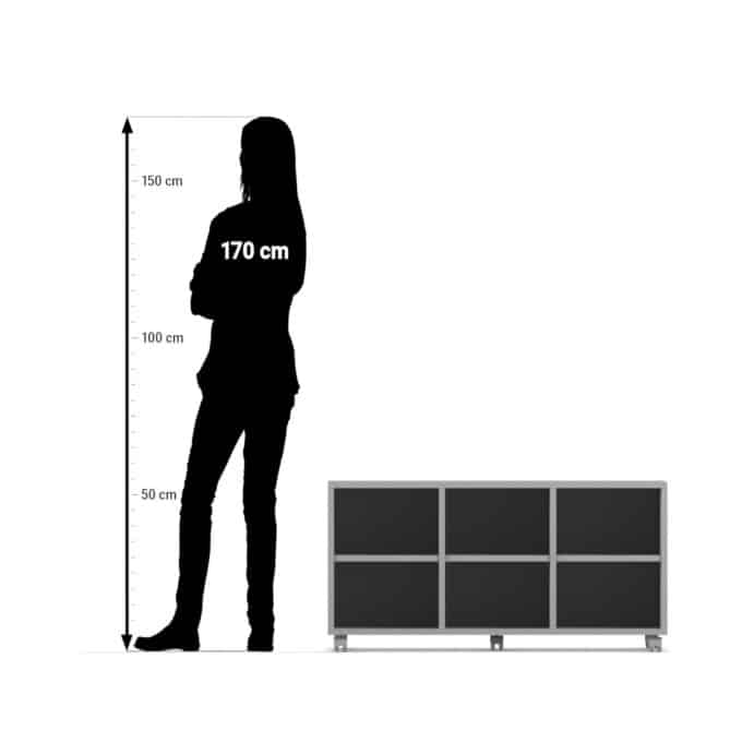 - Anzahl Fächer: 6 (3 Reihen nebeneinander, 2 Ebenen übereinander)