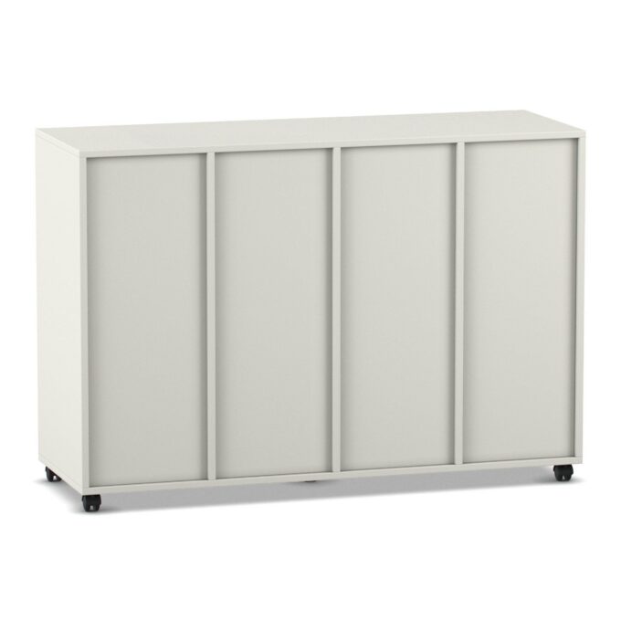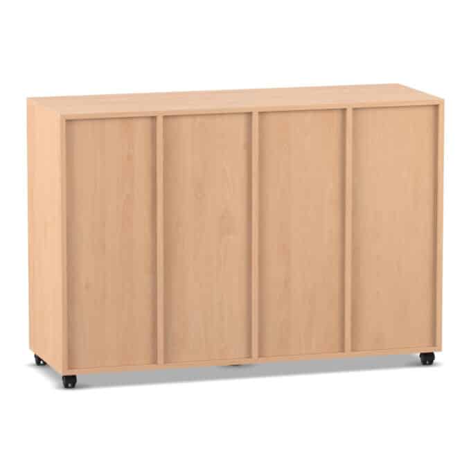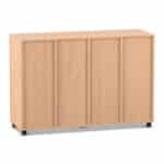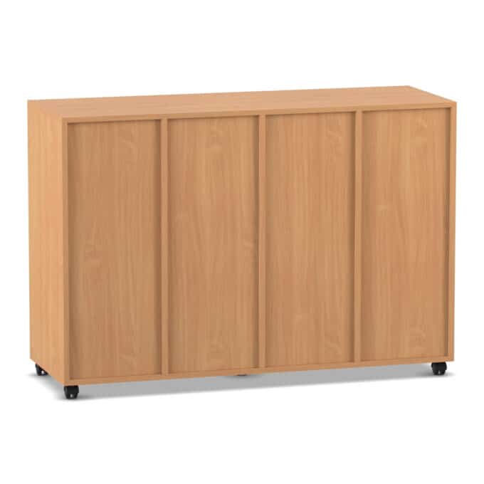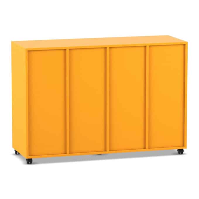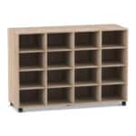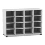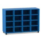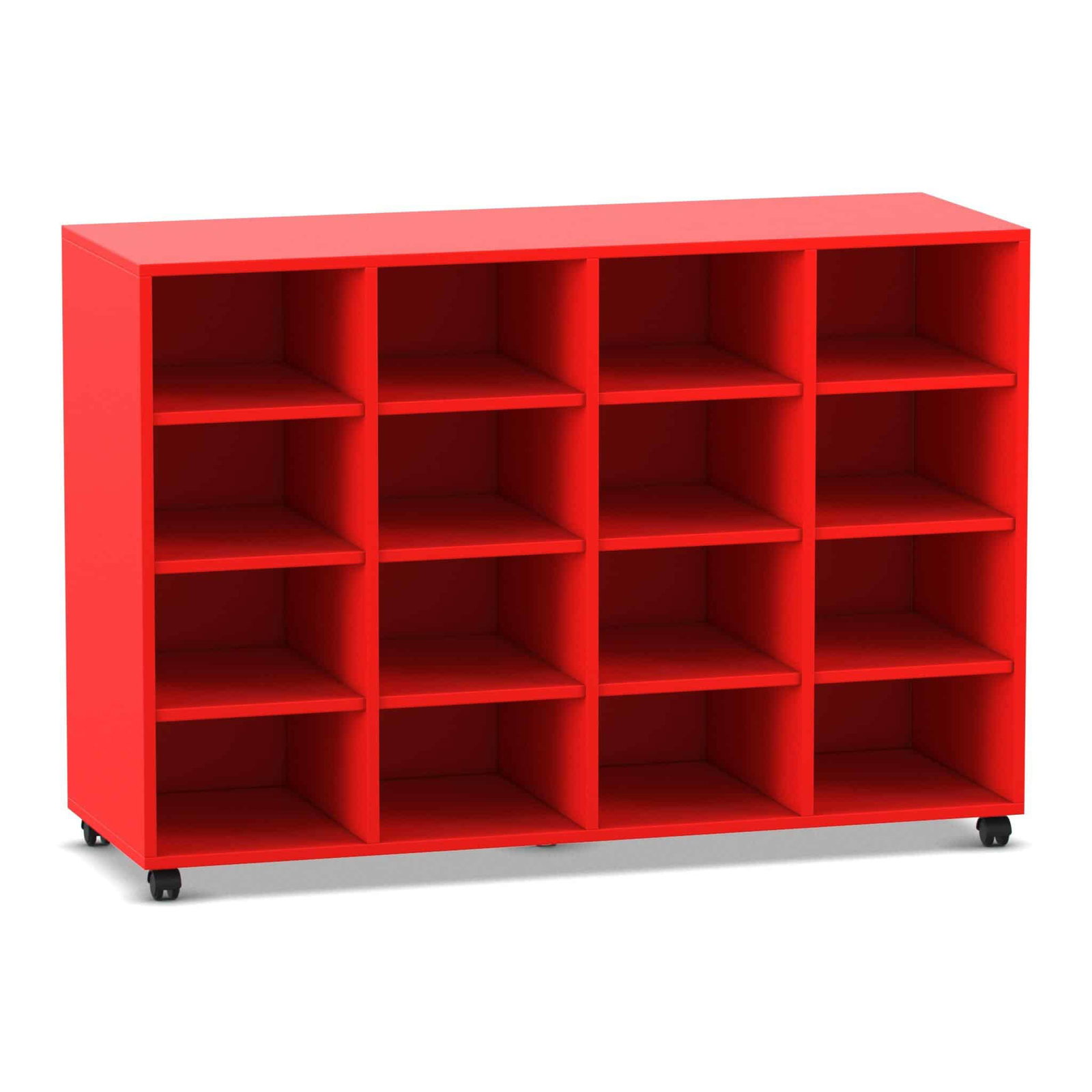 Setzen Sie neue Maßstäbe in Sachen Ordnung und Flexibilität mit dem Flexeo® Regal PRO. Dieses enorm stabile und vielseitige Regalsystem wurde entwickelt, um den dynamischen Anforderungen moderner Klassenzimmer, Gruppenräume und Bibliotheken gerecht zu werden. Mit 16 geräumigen Fächern, die auf vier Reihen verteilt sind, bietet es maximalen Stauraum auf optimaler Höhe. Seine besondere Stärke liegt nicht nur in der robusten Konstruktion, sondern auch in seiner Fähigkeit, als stilvoller Raumteiler zu fungieren. Ob an der Wand oder frei im Raum stehend – dieses Regal schafft Struktur, fördert die Organisation und passt sich jeder Raumsituation perfekt an.