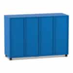 - Stellart: Wahlweise Sockel, Stellfüße oder feststellbare Rollen