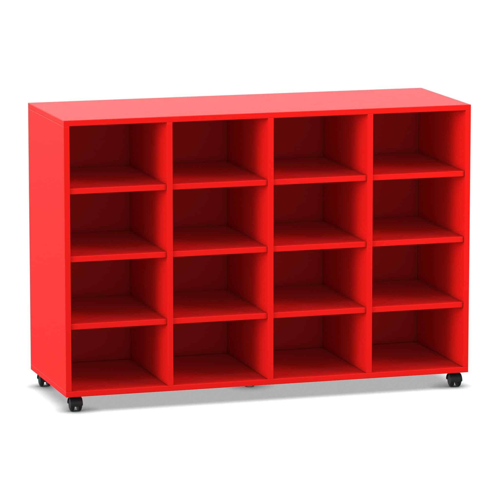 Setzen Sie neue Maßstäbe in Sachen Ordnung und Flexibilität mit dem Flexeo® Regal PRO. Dieses enorm stabile und vielseitige Regalsystem wurde entwickelt, um den dynamischen Anforderungen moderner Klassenzimmer, Gruppenräume und Bibliotheken gerecht zu werden. Mit 16 geräumigen Fächern, die auf vier Reihen verteilt sind, bietet es maximalen Stauraum auf optimaler Höhe. Seine besondere Stärke liegt nicht nur in der robusten Konstruktion, sondern auch in seiner Fähigkeit, als stilvoller Raumteiler zu fungieren. Ob an der Wand oder frei im Raum stehend – dieses Regal schafft Struktur, fördert die Organisation und passt sich jeder Raumsituation perfekt an.