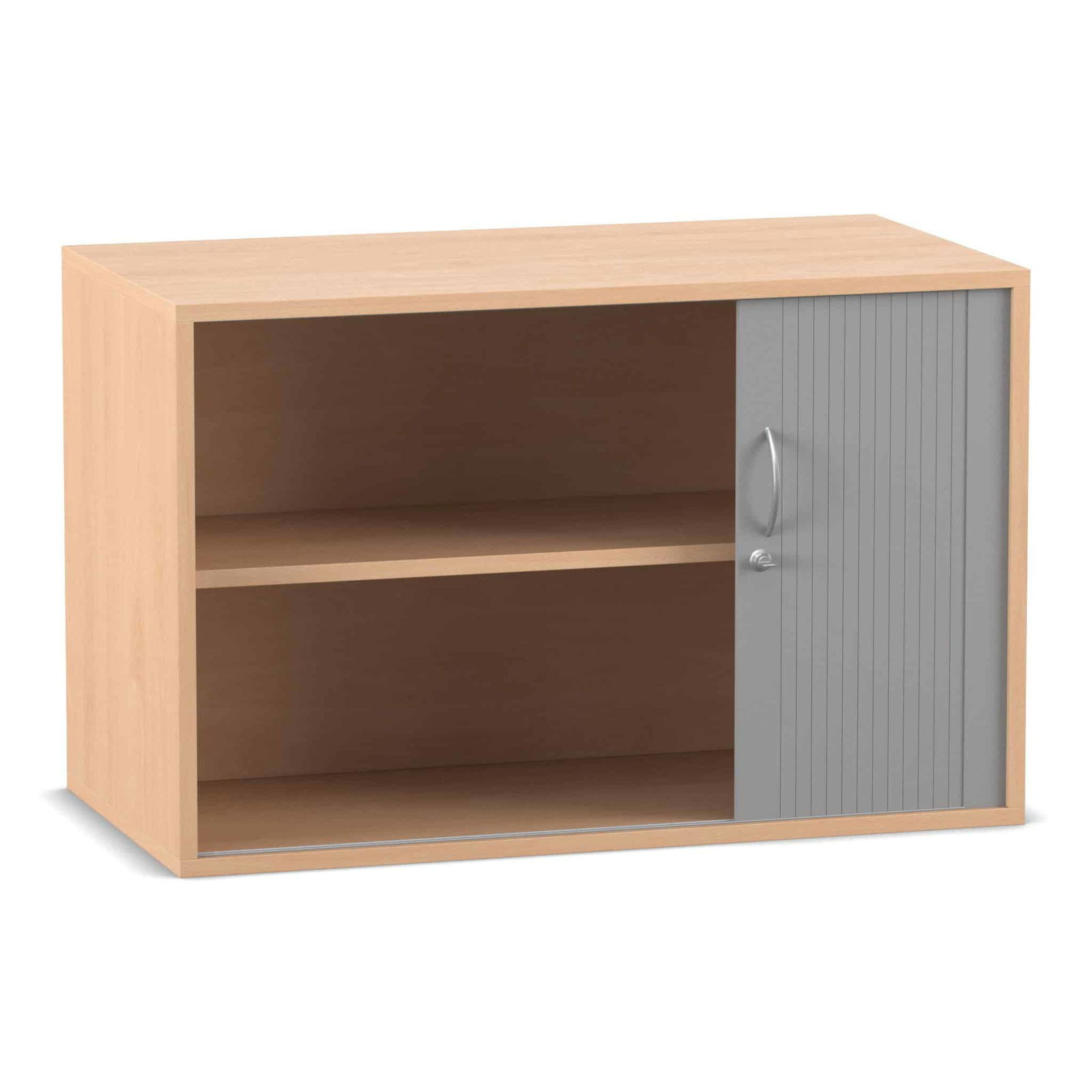 - Platzsparendes und sicheres Rollladensystem: Gerade in engen Räumen oder Fluren ist das Rollladensystem unschlagbar. Der leichtgängige Kunststoff-Rollladen verschwindet beim Öffnen komplett in der doppelwandigen Rückwand. Das bedeutet: Kein störender Schwenkbereich und kein Raumverlust durch offenstehende Türen. Der Inhalt bleibt hinter dem abschließbaren Rollladen auf ganzer Breite sicher und blickdicht verwahrt.