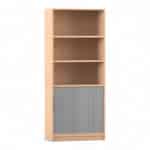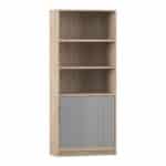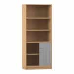 - Aufteilung: 5 Fächer, entsprechend 5 Ordnerhöhen (3 offen, 2 hinter Rollladen)