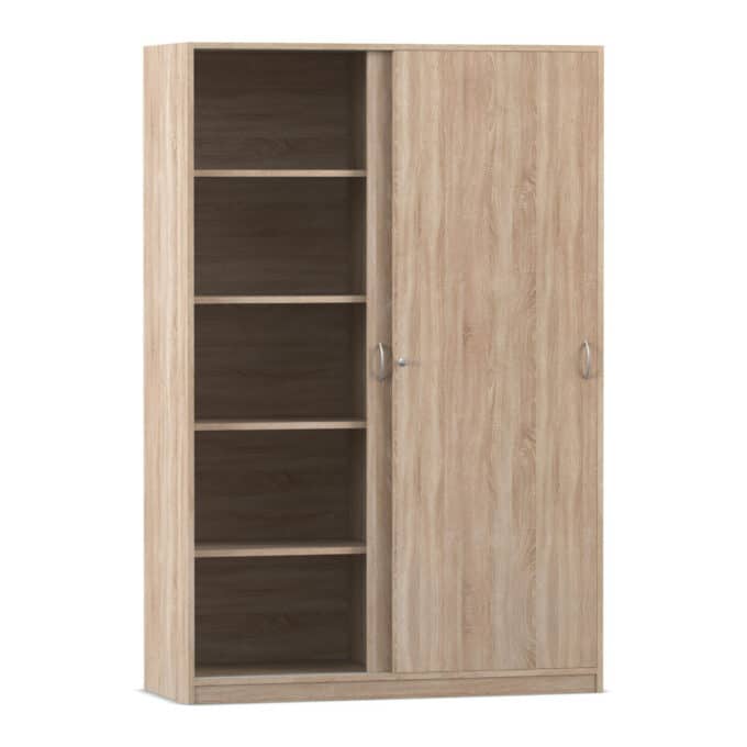 - Flexibler Stauraum für perfekte Organisation: Hinter den beiden Schiebetüren verbergen sich 10 geräumige Fächer, die durch eine stabile Mittelwand getrennt sind. Die acht mitgelieferten Fachböden sind flexibel verstellbar, sodass Sie den Innenraum exakt an Ihre Bedürfnisse anpassen können – ob für hohe Ordner (in den Tiefen 48/58 cm), Bücher oder umfangreiche Materialiensammlungen.