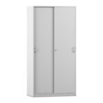 Erobern Sie ungenutztes Potenzial und schaffen Sie Ordnung auf engstem Raum mit dem schmalen Flexeo® Schiebetürenschrank. Mit seiner intelligenten Breite von nur 94,4 cm ist dieses hohe, abschließbare Stauraumsystem die ultimative Lösung für Nischen, kleinere Büros und stark frequentierte Flure. Dank seiner leichtgängigen Schiebetüren wird kein wertvoller Platz durch ausladende Drehtüren verschenkt. Hinter der eleganten Fassade verbirgt sich ein erstaunlich geräumiges und flexibles Innenleben mit 10 Fächern. Gefertigt in Deutschland und untermauert durch eine 5-Jahres-Garantie, liefert dieser Schrank kompromisslose Stabilität, sichere Aufbewahrung und ein Design, das sich nahtlos in jede professionelle Umgebung einfügt.