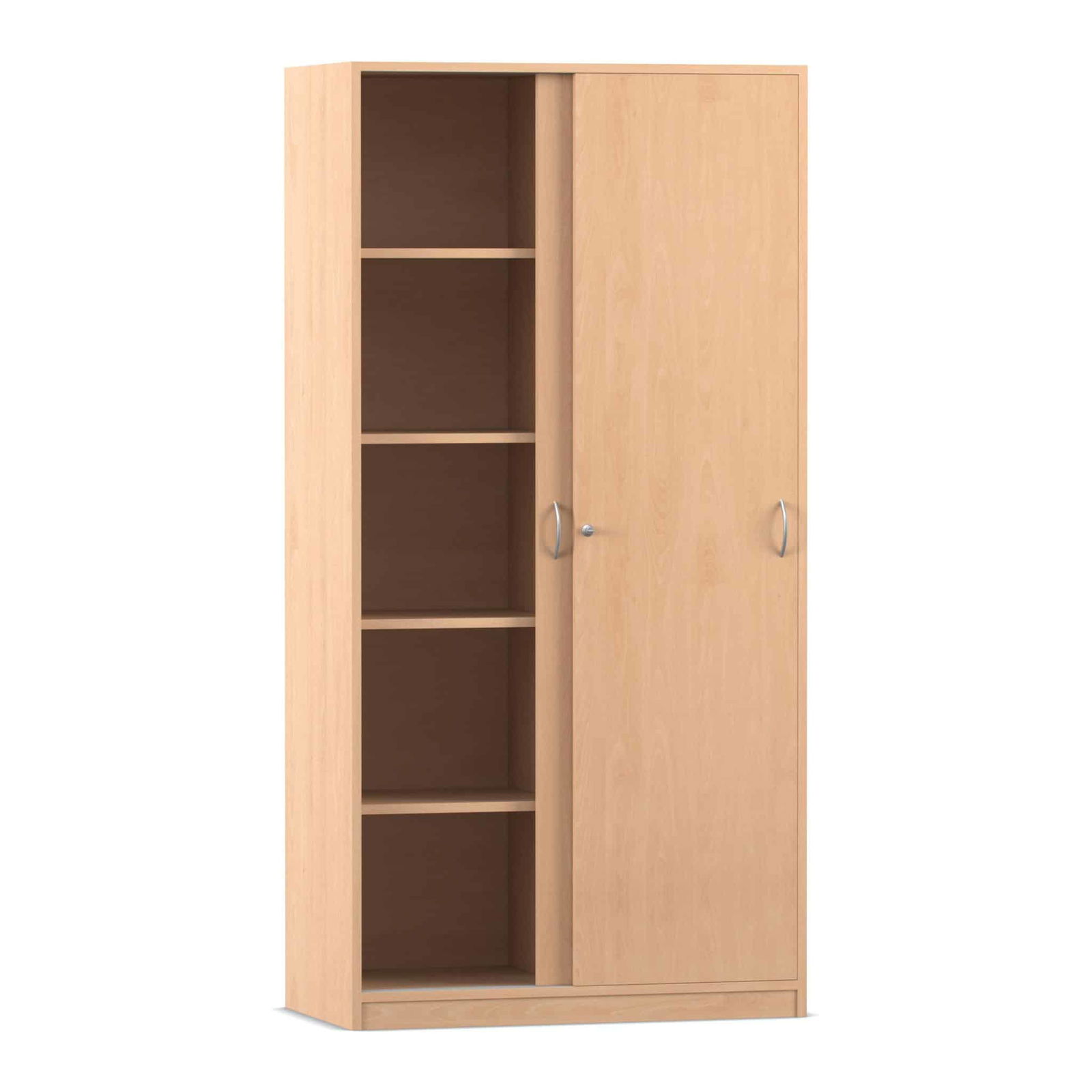 - Maximale Platzersparnis für enge Raumverhältnisse: Dieses System ist der Champion für effiziente Raumnutzung. Da die Türen sanft zur Seite gleiten und nicht in den Raum schwenken, ist er die perfekte Wahl für schmale Gänge, kleine Lehrerzimmer oder Nischen, die sonst ungenutzt blieben. Sie gewinnen wertvolle Bewegungsfreiheit und können den Raum optimal ausnutzen, ohne auf großzügigen Stauraum verzichten zu müssen.