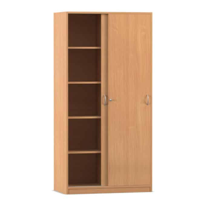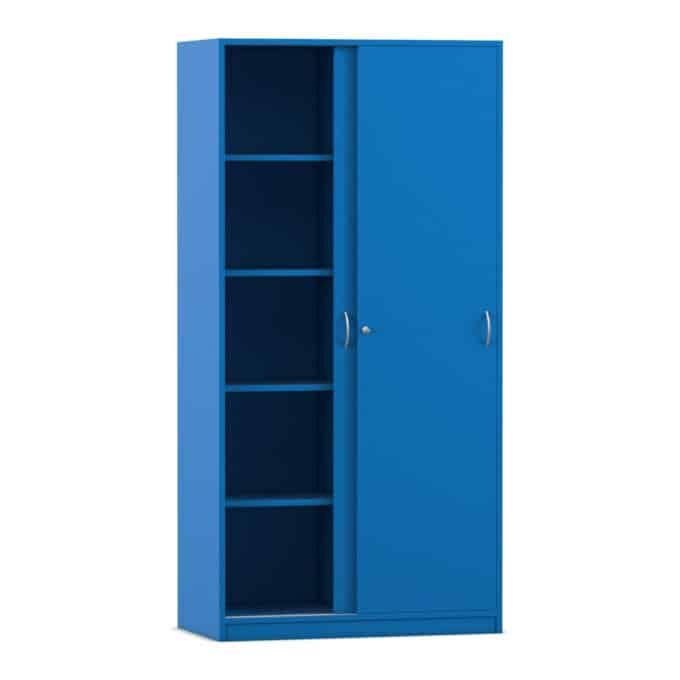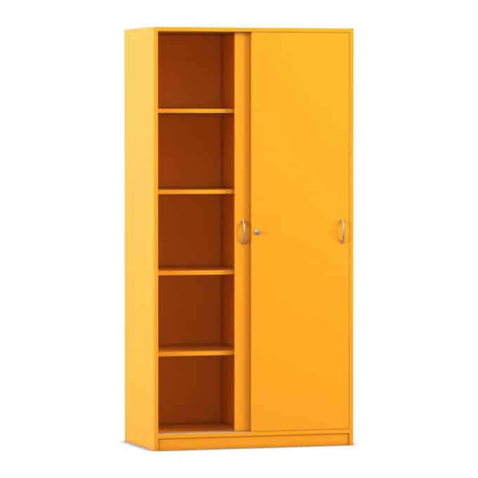 - Maximale Platzersparnis für enge Raumverhältnisse: Dieses System ist der Champion für effiziente Raumnutzung. Da die Türen sanft zur Seite gleiten und nicht in den Raum schwenken, ist er die perfekte Wahl für schmale Gänge, kleine Lehrerzimmer oder Nischen, die sonst ungenutzt blieben. Sie gewinnen wertvolle Bewegungsfreiheit und können den Raum optimal ausnutzen, ohne auf großzügigen Stauraum verzichten zu müssen.