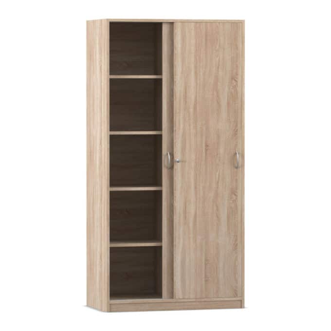 - Flexibler Stauraum für perfekte Organisation: Hinter den beiden Schiebetüren verbirgt sich ein durchdachtes Ordnungssystem mit 10 Fächern, getrennt durch eine stabile Mittelwand. Die acht mitgelieferten Fachböden sind flexibel verstellbar, sodass Sie den Innenraum exakt an Ihre Bedürfnisse anpassen können – ob für hohe Aktenordner (in den Tiefen 48/58 cm), Bücher oder umfangreiche Materialiensammlungen.