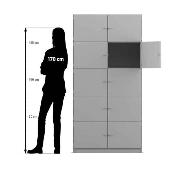 - Anzahl Fächer: 10 (geschlossen und einzeln abschließbar)
