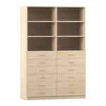 Entdecken Sie Stauraum in seiner intelligentesten Form. Dieser Flexeo® Schrank in echter Schreinerqualität ist die perfekte Lösung für alle, die maximale Ordnung und höchste Stabilität suchen. Gefertigt in Deutschland, kombiniert dieses Möbelstück zwölf robuste Holzschubladen mit sechs flexiblen, offenen Fächern. Dank der durchdachten Konstruktion mit Mittelwand und massiver Rückwand bietet der Schrank nicht nur enorm viel Platz, sondern auch eine außergewöhnliche Langlebigkeit. Ob im Materialraum, im Lehrerzimmer oder als vielseitiger Raumteiler – dieses Organisationstalent bringt Struktur, Übersicht und eine professionelle Ästhetik in jeden Raum.