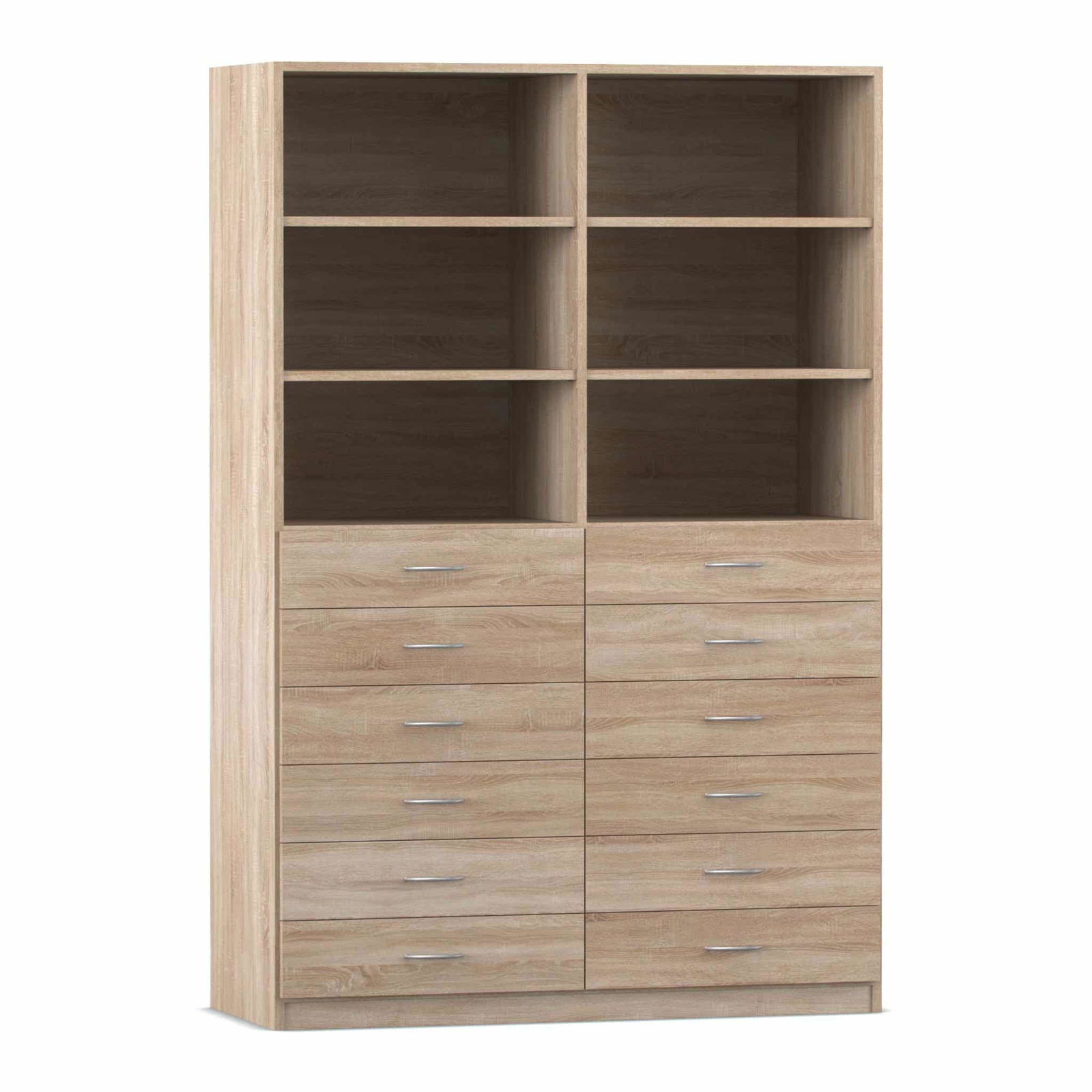- Maximale Organisation durch perfekte Aufteilung: Schaffen Sie für jedes Utensil den richtigen Platz. Die zwölf kleinen, aber enorm stabilen Holzschubladen eignen sich perfekt für die Sortierung von Kleinmaterialien, Bastelbedarf oder persönlichen Gegenständen. Die sechs darüberliegenden, offenen Fächer bieten schnellen Zugriff auf Ordner, Bücher oder größere Boxen und lassen sich dank der vier verstellbaren Böden individuell anpassen.
