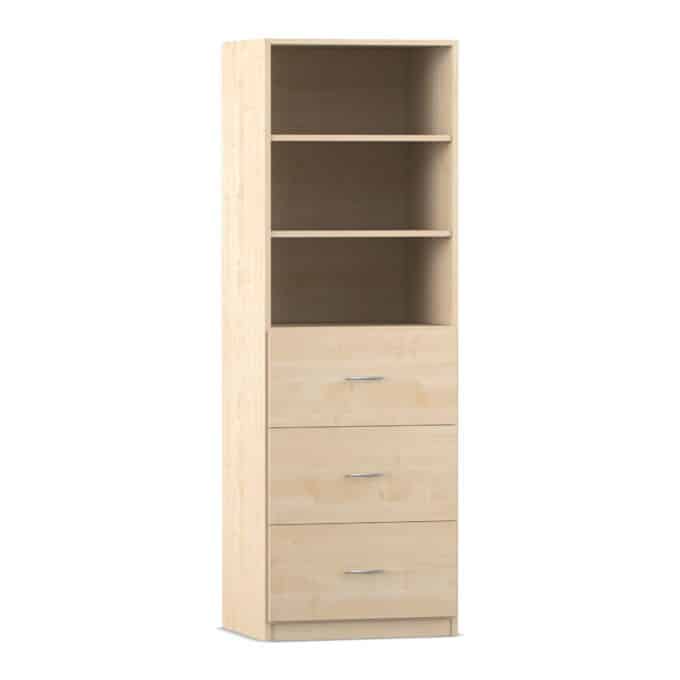 Entdecken Sie die ideale Lösung, um sperrige Gegenstände und große Mengen an Material kompakt, sicher und übersichtlich zu verstauen. Dieser schmale, aber extrem geräumige Flexeo® Hochschrank ist ein wahres Stauraumwunder. Gefertigt in Deutschland, kombiniert er drei voluminöse Holzschubladen mit drei flexiblen, offenen Fächern. Dank seiner außergewöhnlich stabilen Konstruktion, der durchdachten Sicherheitsmerkmale und der langlebigen Materialien ist dieser Schrank die perfekte, sofort einsatzbereite Lösung für Werkstätten, Kunsträume, Büros und Klassenzimmer, in denen jeder Zentimeter zählt.