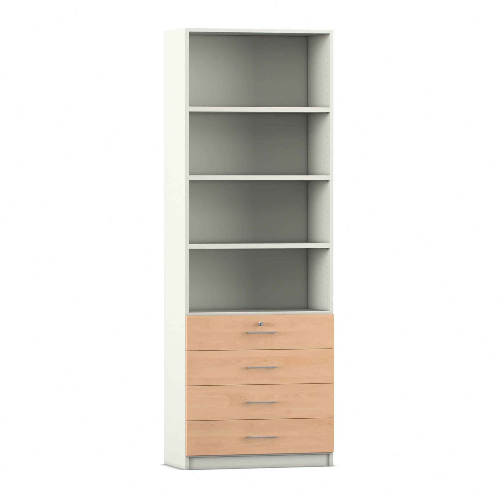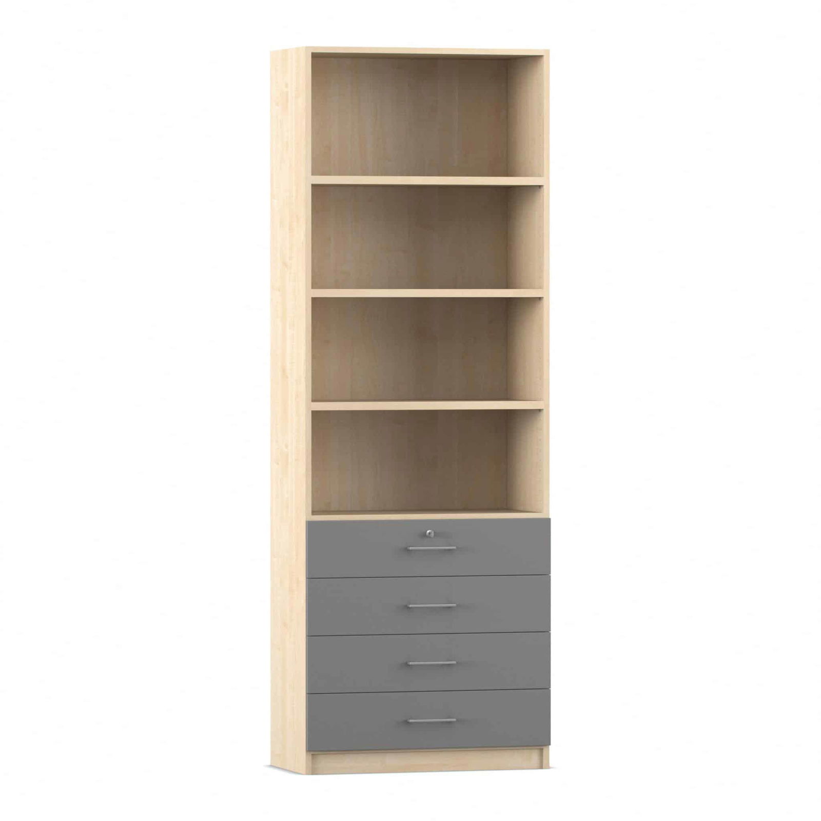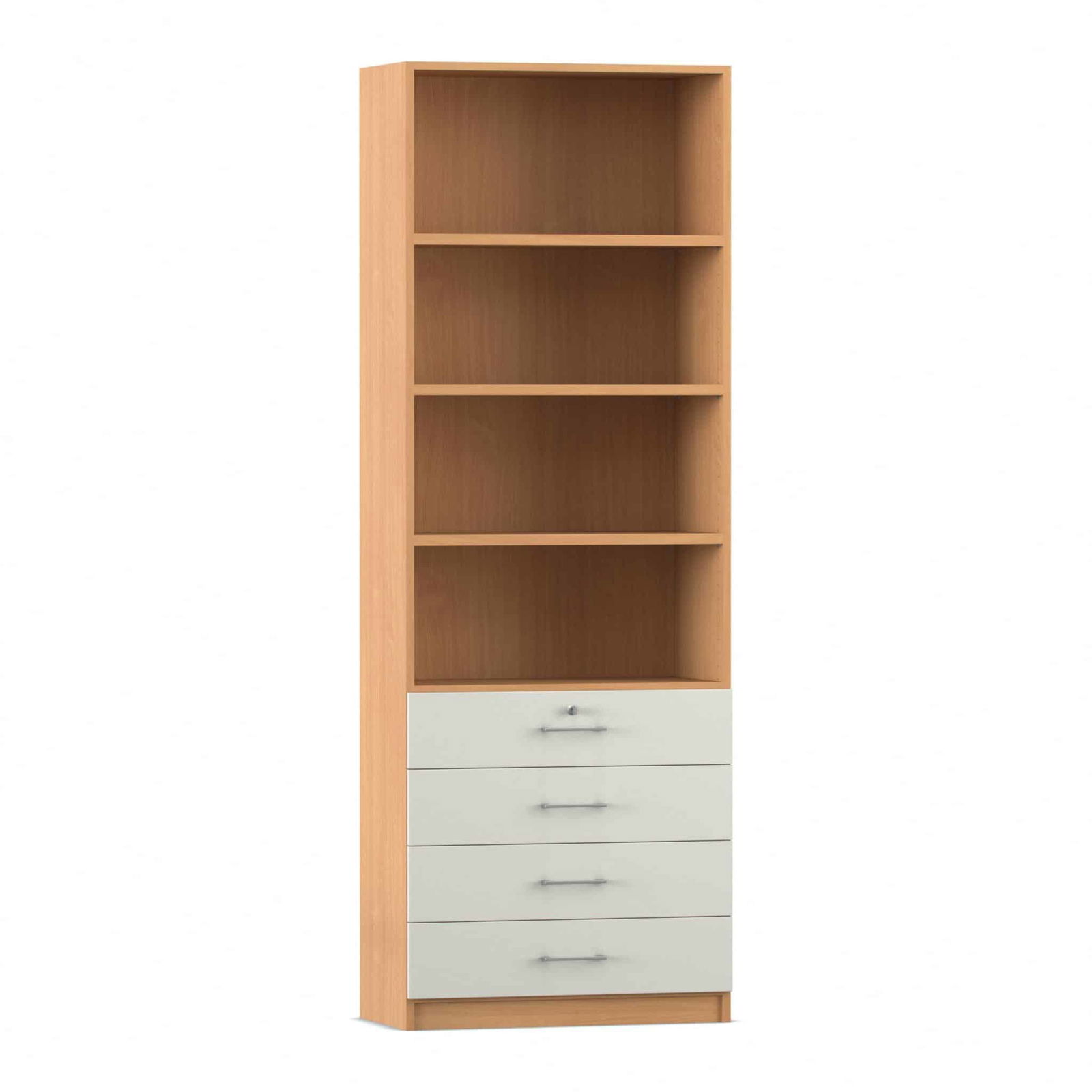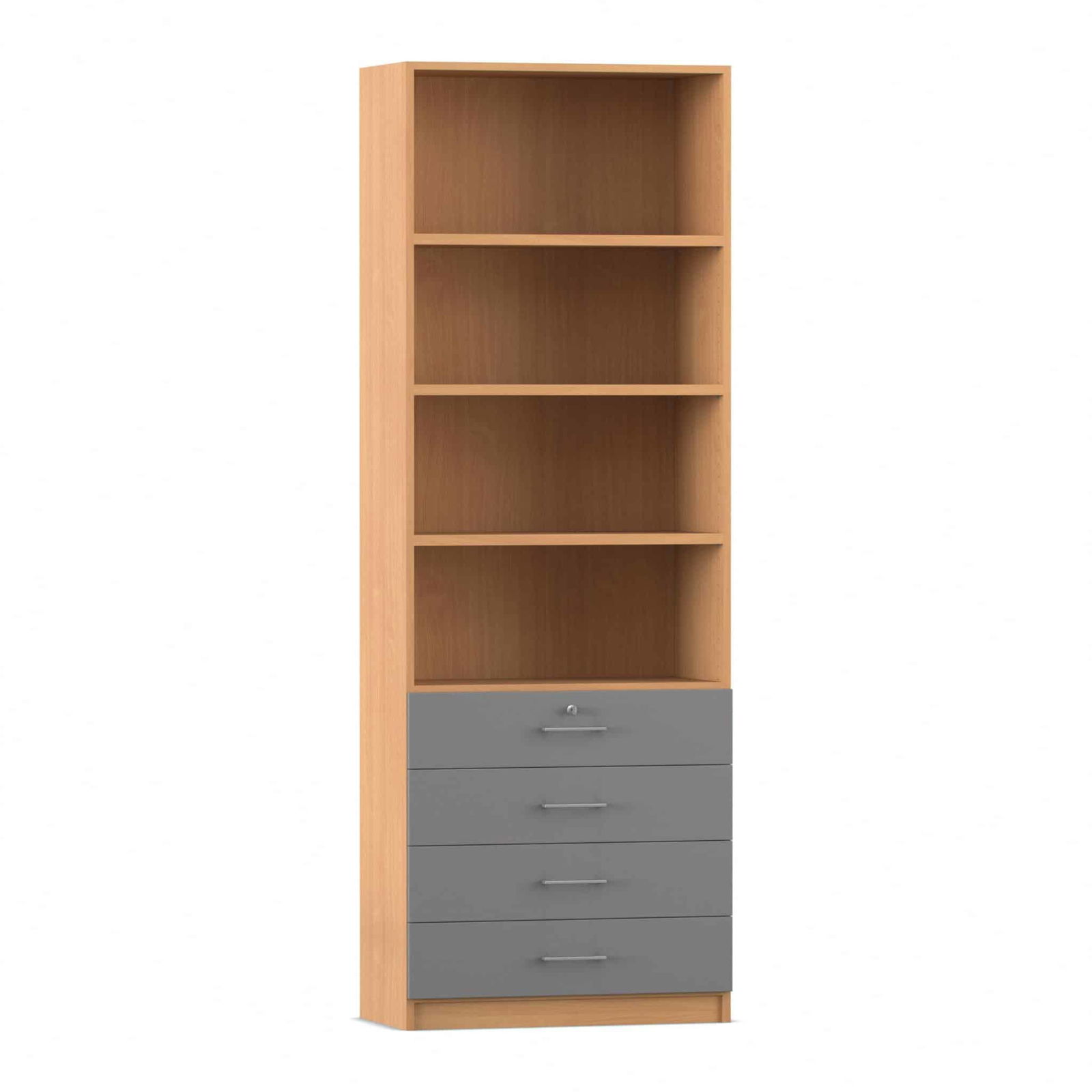 - Intelligente Kombination aus Fächern und Schubladen: Dieser Schrank bietet die ideale Aufteilung für eine perfekte Organisation. Die vier oberen, offenen Fächer bieten auf einer Höhe von sechs Ordnerhöhen reichlich Platz für Ordner, Bücher und Stehsammler, auf die Sie schnell zugreifen müssen. In den vier unteren, abschließbaren Schubladen bewahren Sie kleinere Utensilien, Büromaterial oder vertrauliche Dokumente sicher und übersichtlich auf.