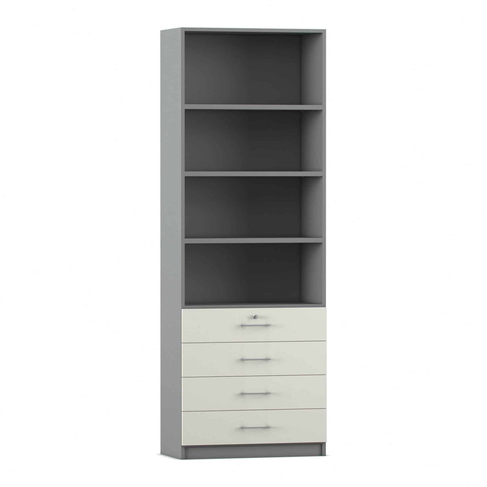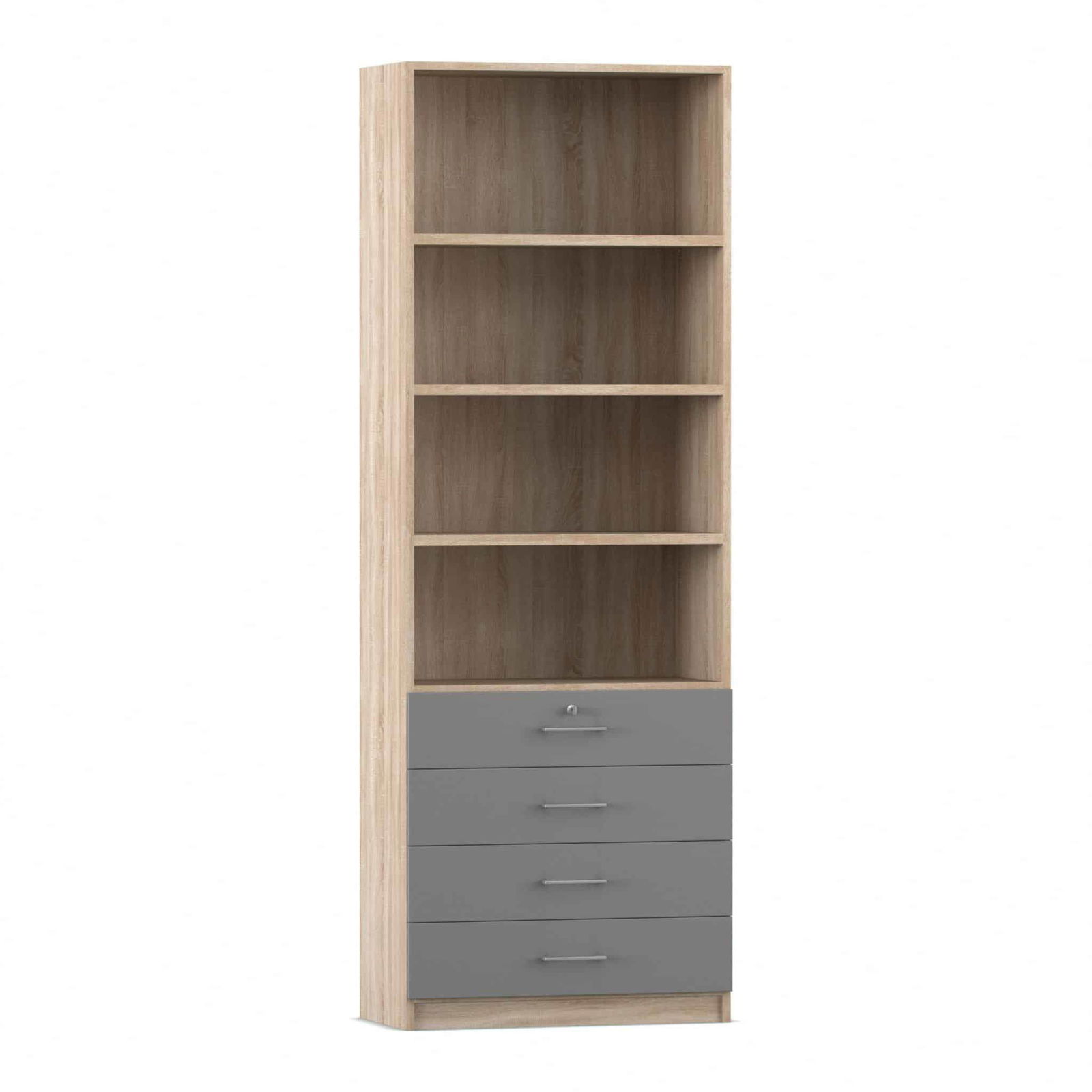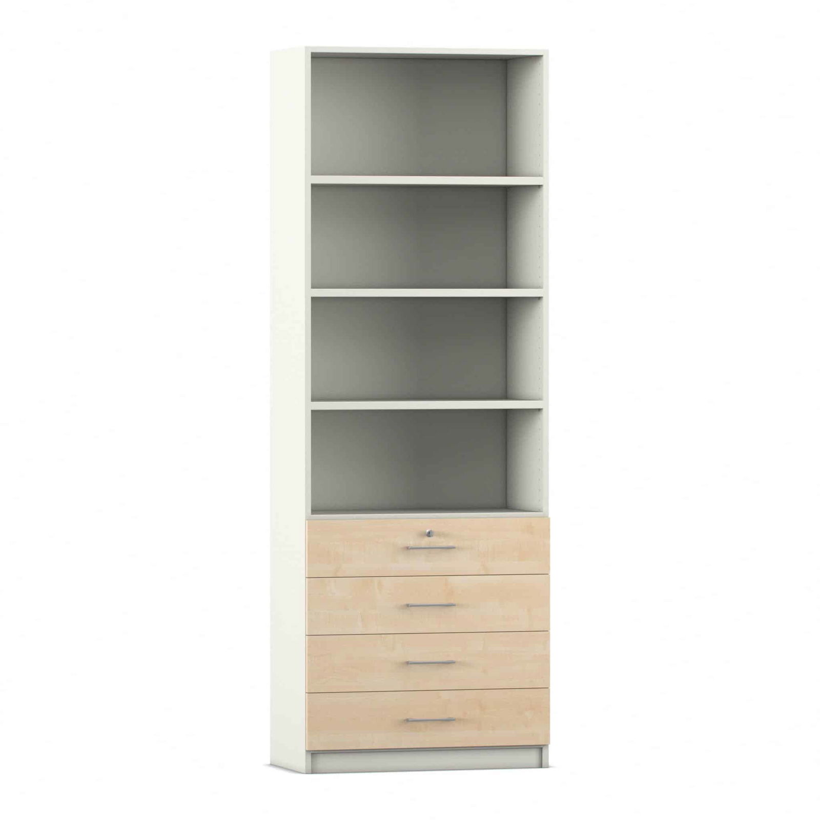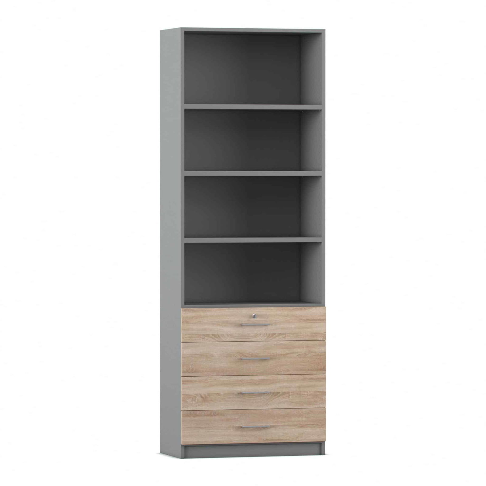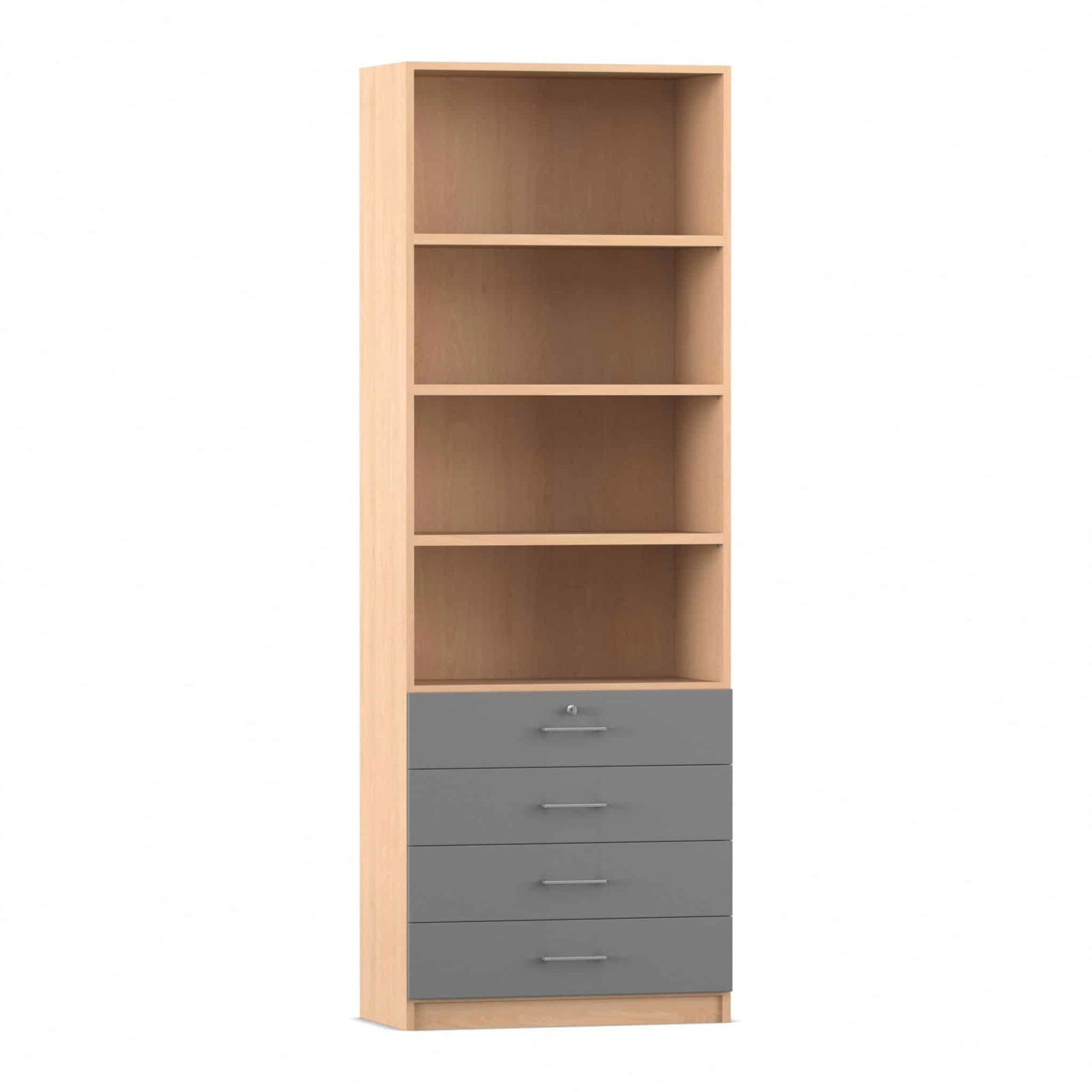 - Intelligente Kombination aus Fächern und Schubladen: Dieser Schrank bietet die ideale Aufteilung für eine perfekte Organisation. Die vier oberen, offenen Fächer bieten auf einer Höhe von sechs Ordnerhöhen reichlich Platz für Ordner, Bücher und Stehsammler, auf die Sie schnell zugreifen müssen. In den vier unteren, abschließbaren Schubladen bewahren Sie kleinere Utensilien, Büromaterial oder vertrauliche Dokumente sicher und übersichtlich auf.