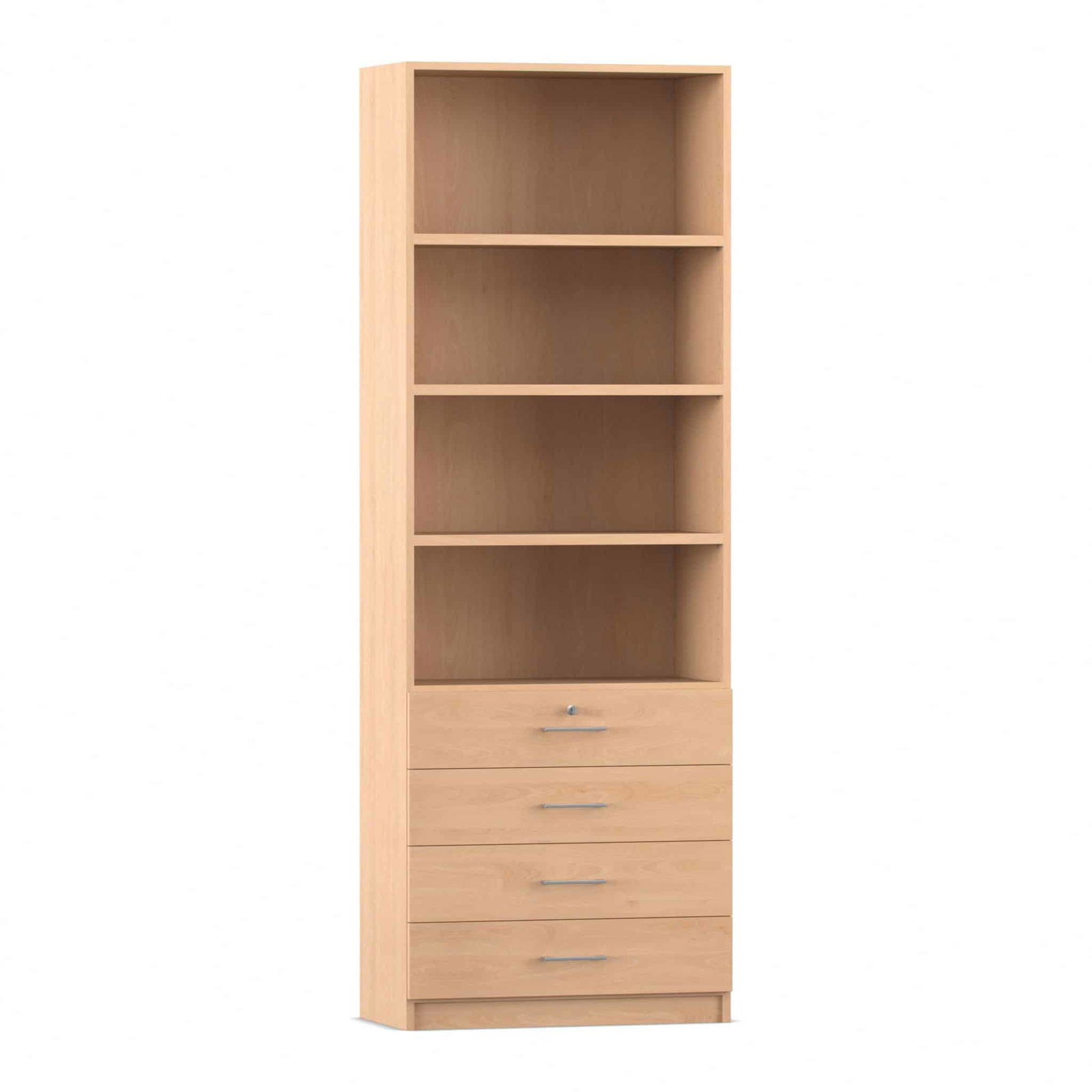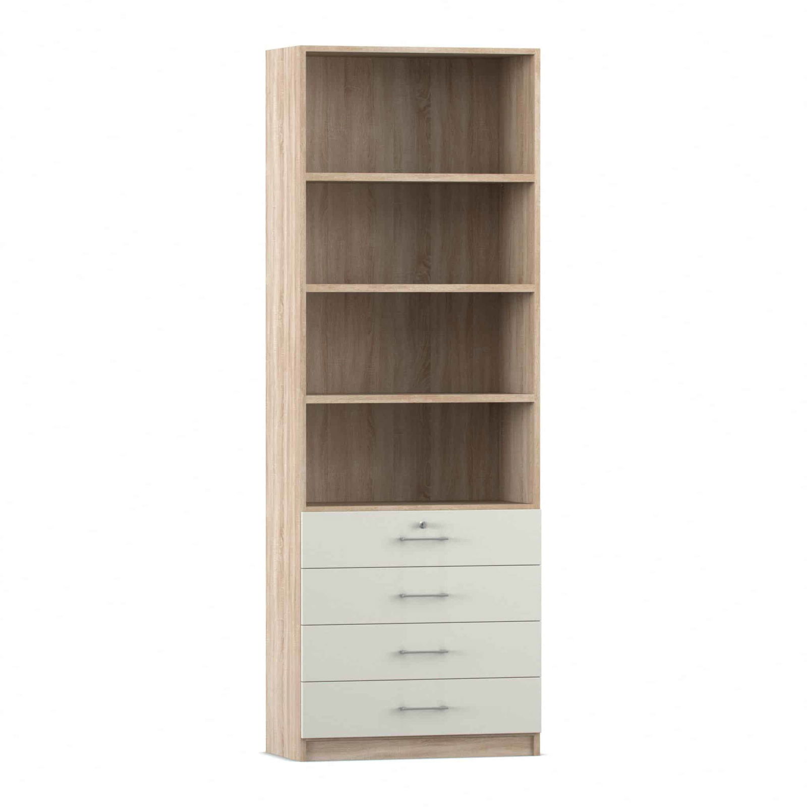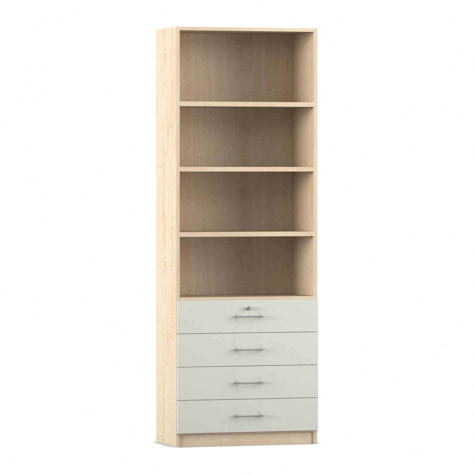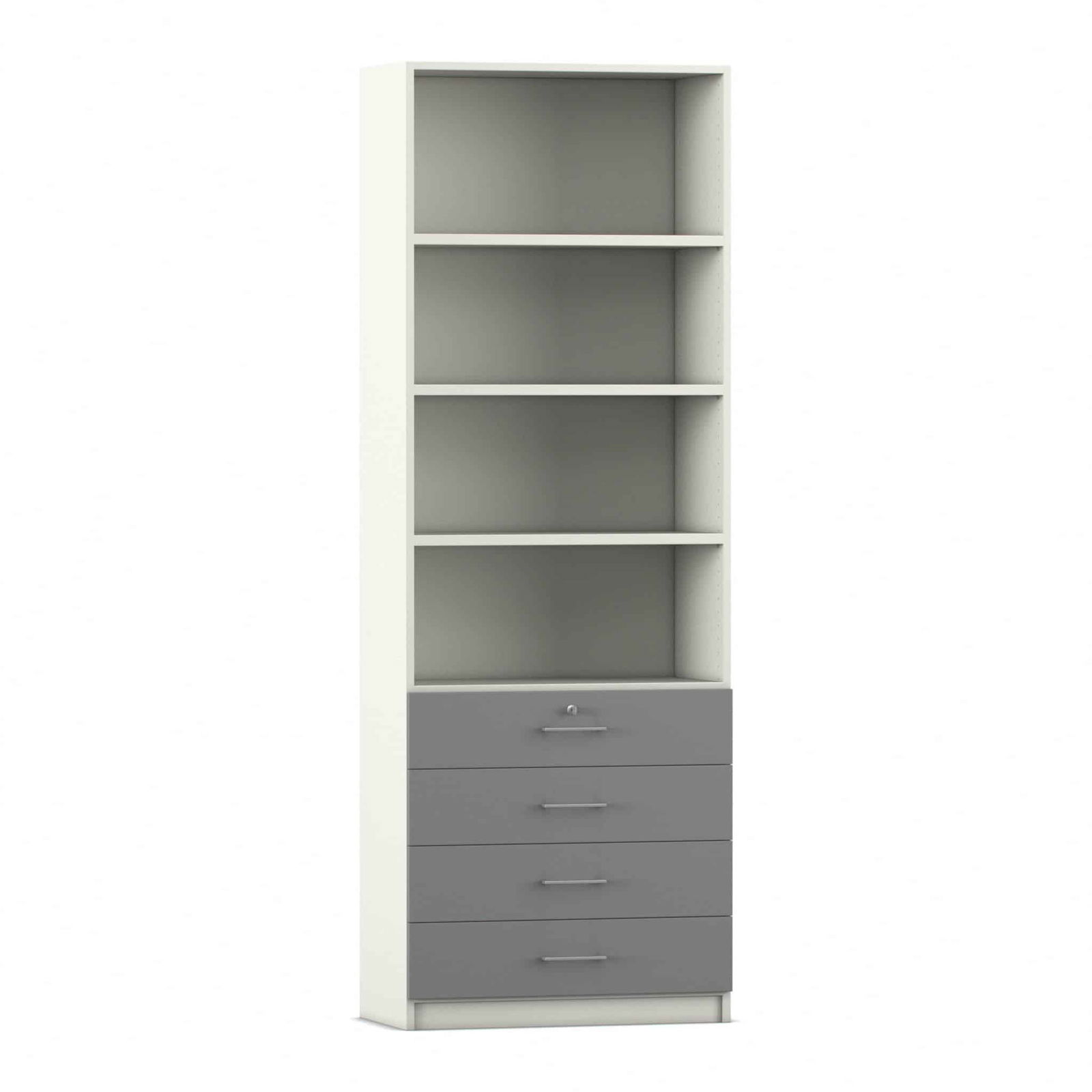 - Intelligente Kombination aus Fächern und Schubladen: Dieser Schrank bietet die ideale Aufteilung für eine perfekte Organisation. Die vier oberen, offenen Fächer bieten auf einer Höhe von sechs Ordnerhöhen reichlich Platz für Ordner, Bücher und Stehsammler, auf die Sie schnell zugreifen müssen. In den vier unteren, abschließbaren Schubladen bewahren Sie kleinere Utensilien, Büromaterial oder vertrauliche Dokumente sicher und übersichtlich auf.