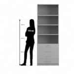 - Aufteilung: 4 offene Fächer (passend für 6 Ordnerhöhen), 4 kleine Schubladen