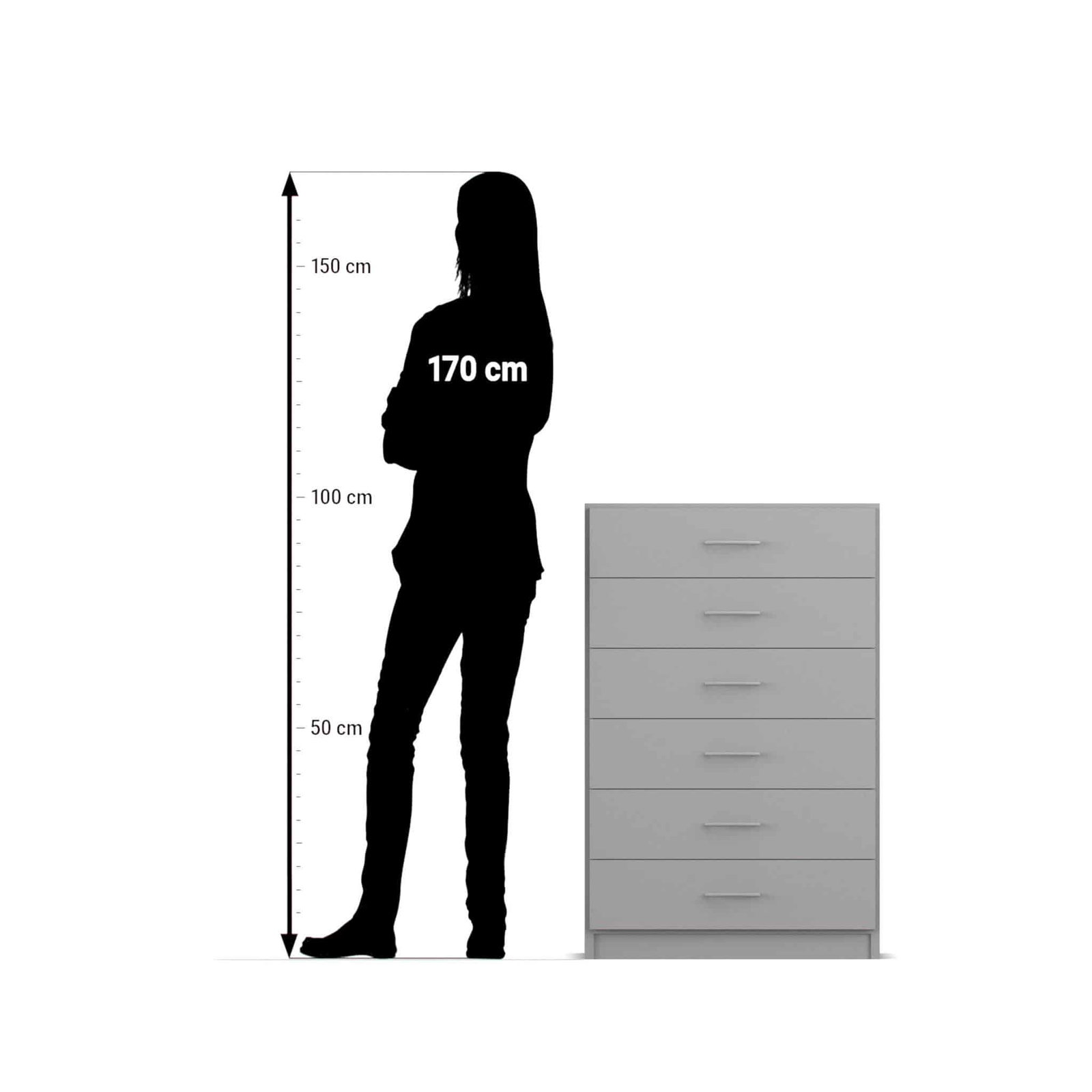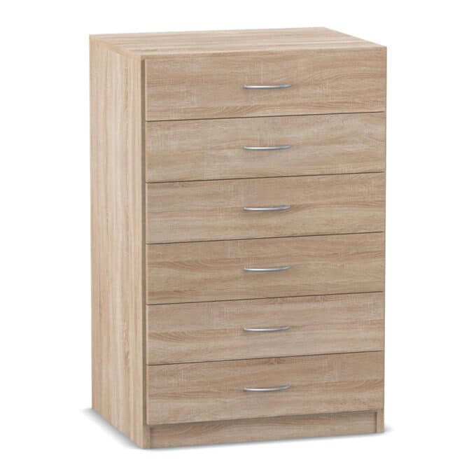 - Sicherheit, die mitdenkt – integrierter Kippschutz: Jede der sechs Schubladen ist mit einer intelligenten Auszugssperre versehen. Dieses sicherheitsrelevante Detail sorgt dafür, dass immer nur eine Schublade gleichzeitig geöffnet werden kann. Dadurch wird ein gefährliches Umkippen des Schranks auch bei voller Beladung der bis zu 35 kg tragfähigen Schubladen zuverlässig verhindert.