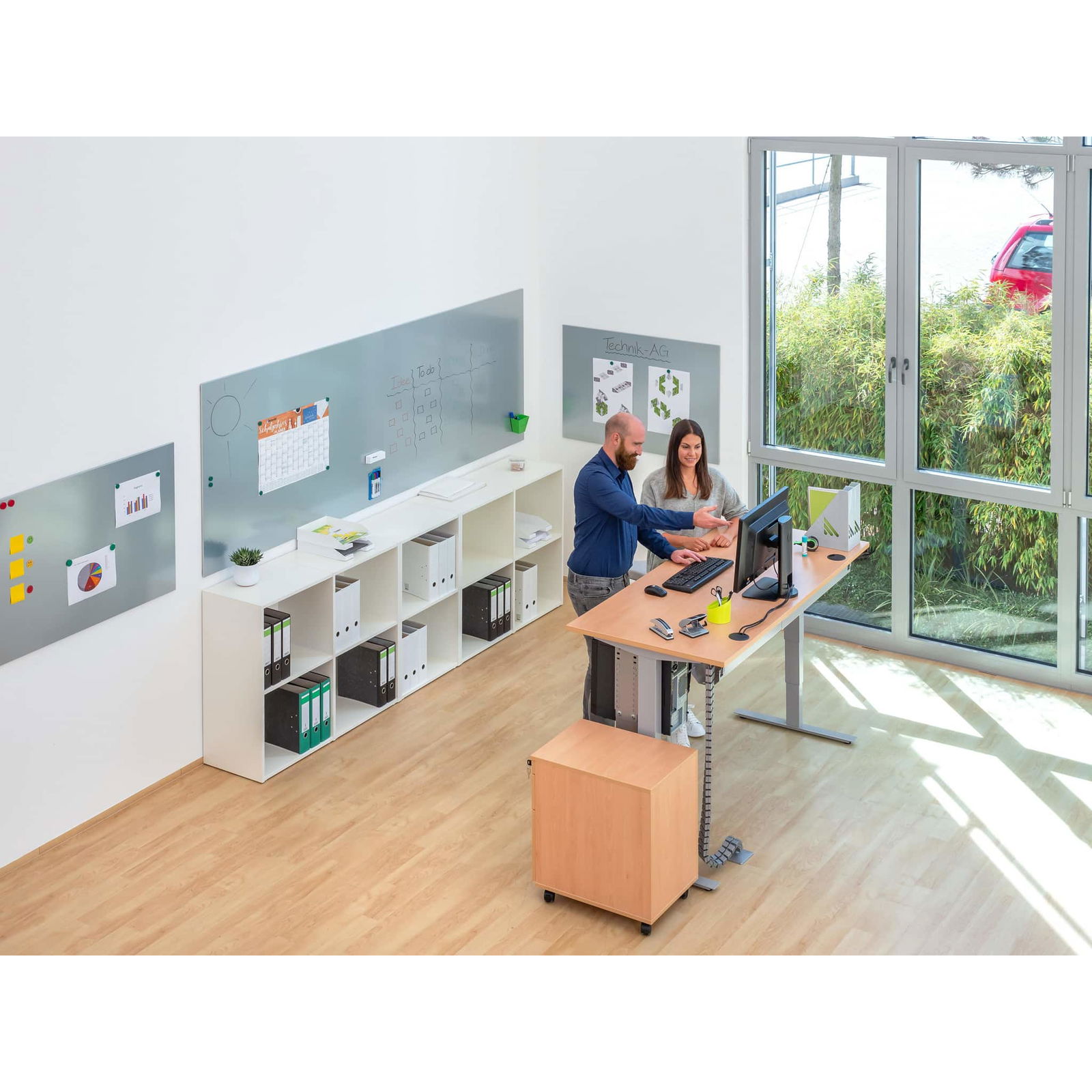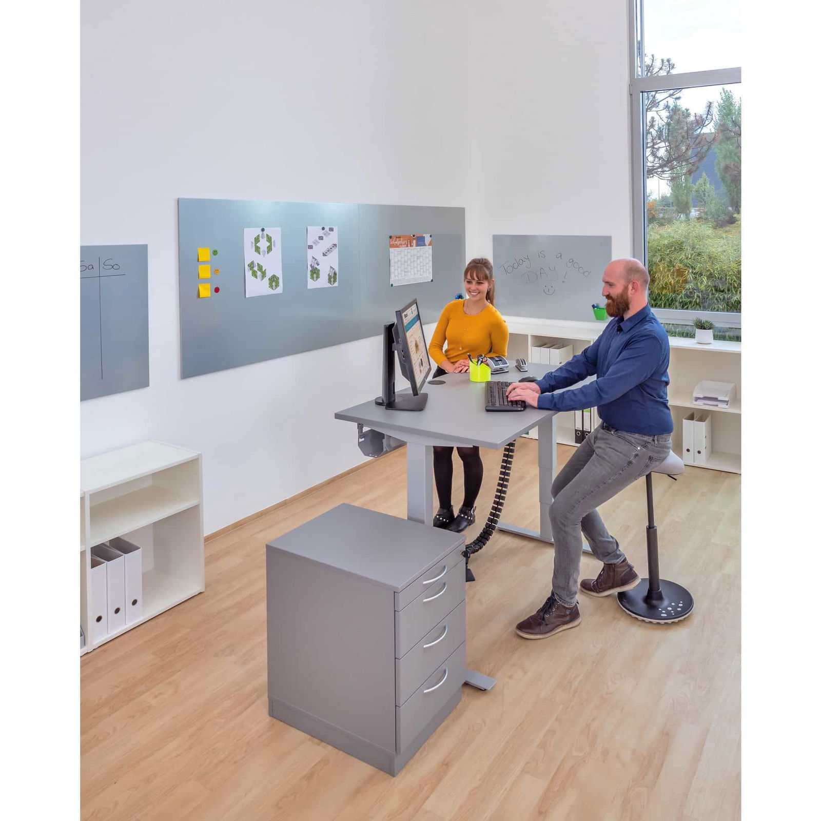 - Ihr persönlicher Beitrag zur Rückengesundheit: Durch den regelmäßigen Wechsel zwischen Sitzen und Stehen fördern Sie aktiv Ihre Gesundheit. Der Körper bleibt in Bewegung, die Wirbelsäule wird entlastet und schmerzhaften Verspannungen im Nacken- und Rückenbereich wird effektiv vorgebeugt. Das Ergebnis ist mehr Energie und eine spürbar höhere Konzentrationsfähigkeit während des gesamten Arbeitstages.
