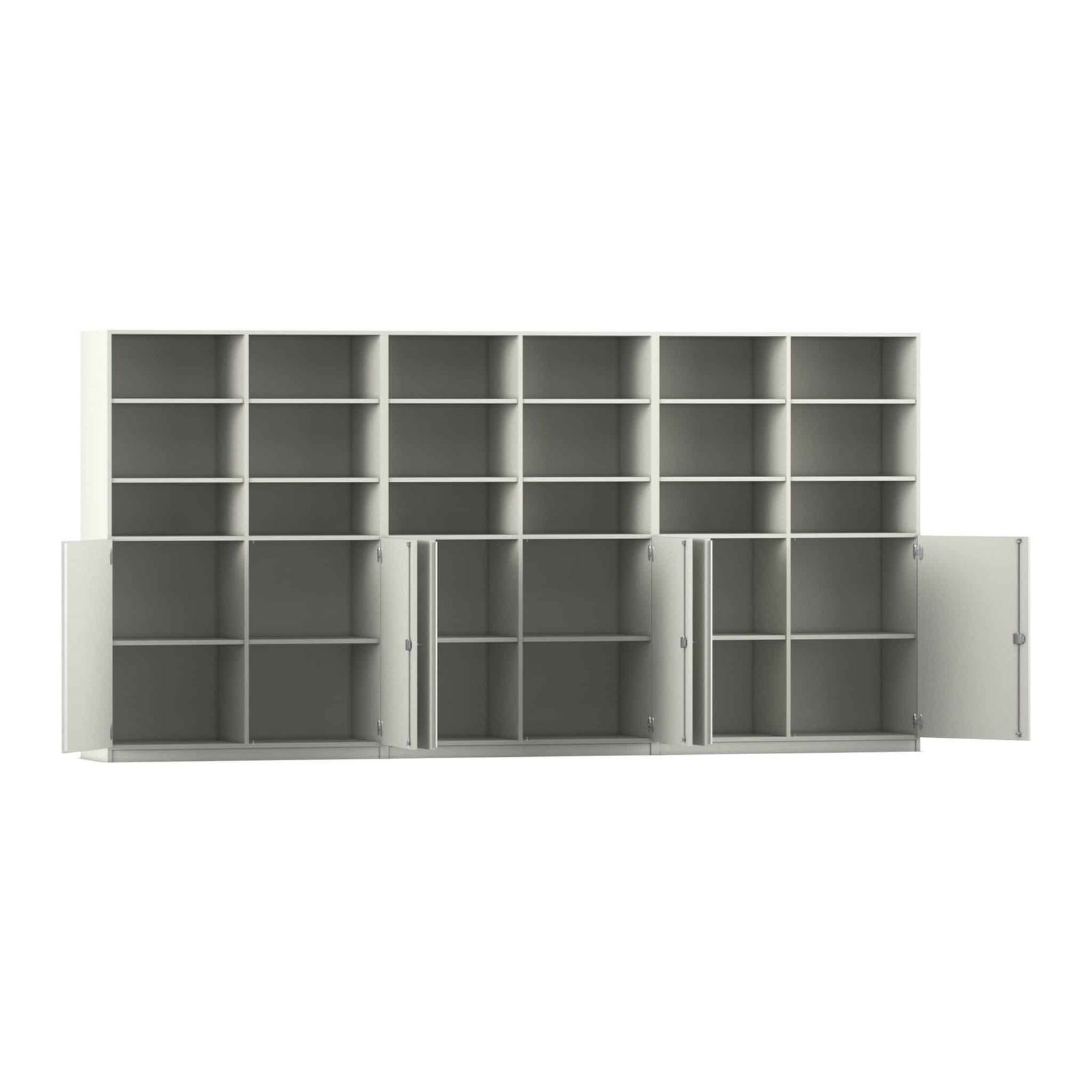 - Optimale Kombination aus Offenheit und Sicherheit: Profitieren Sie vom Besten aus zwei Welten. Die oberen offenen Regalfächer eignen sich perfekt für Bücher, Ordner und Materialien, auf die Sie schnell zugreifen müssen. In den sechs unteren, abschließbaren Halbtüren können Sie vertrauliche Unterlagen, wertvolle Geräte oder private Gegenstände sicher und unsichtbar verstauen.