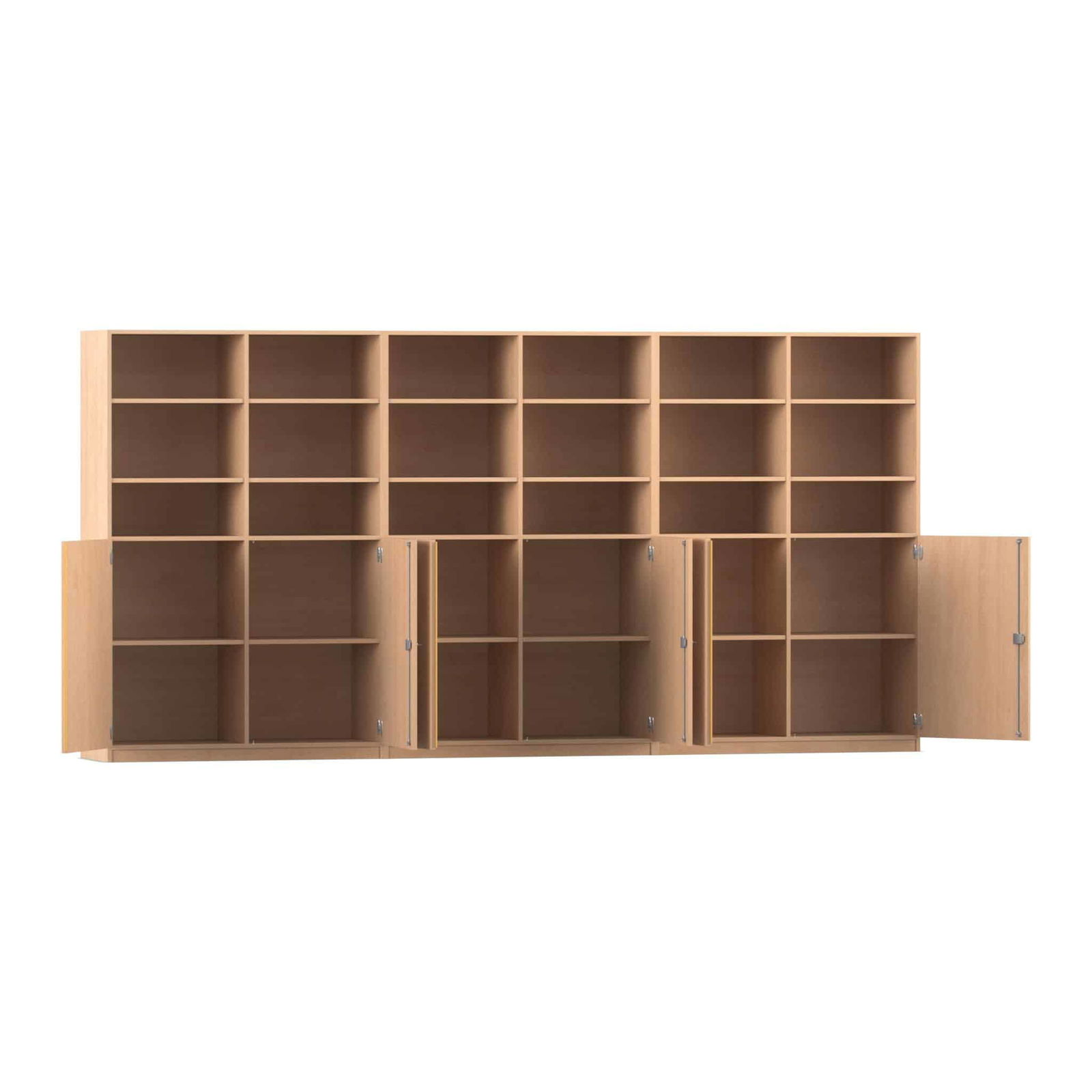 - Durchdachte Details für den täglichen Gebrauch: Die Schranktüren sind mit speziellen, für den Schulbetrieb geeigneten 270°-Scharnieren ausgestattet. Diese ermöglichen ein vollständiges Öffnen der Türen, sodass sie flach am Korpus anliegen und im hektischen Alltag nicht im Weg sind oder zur Stolperfalle werden.