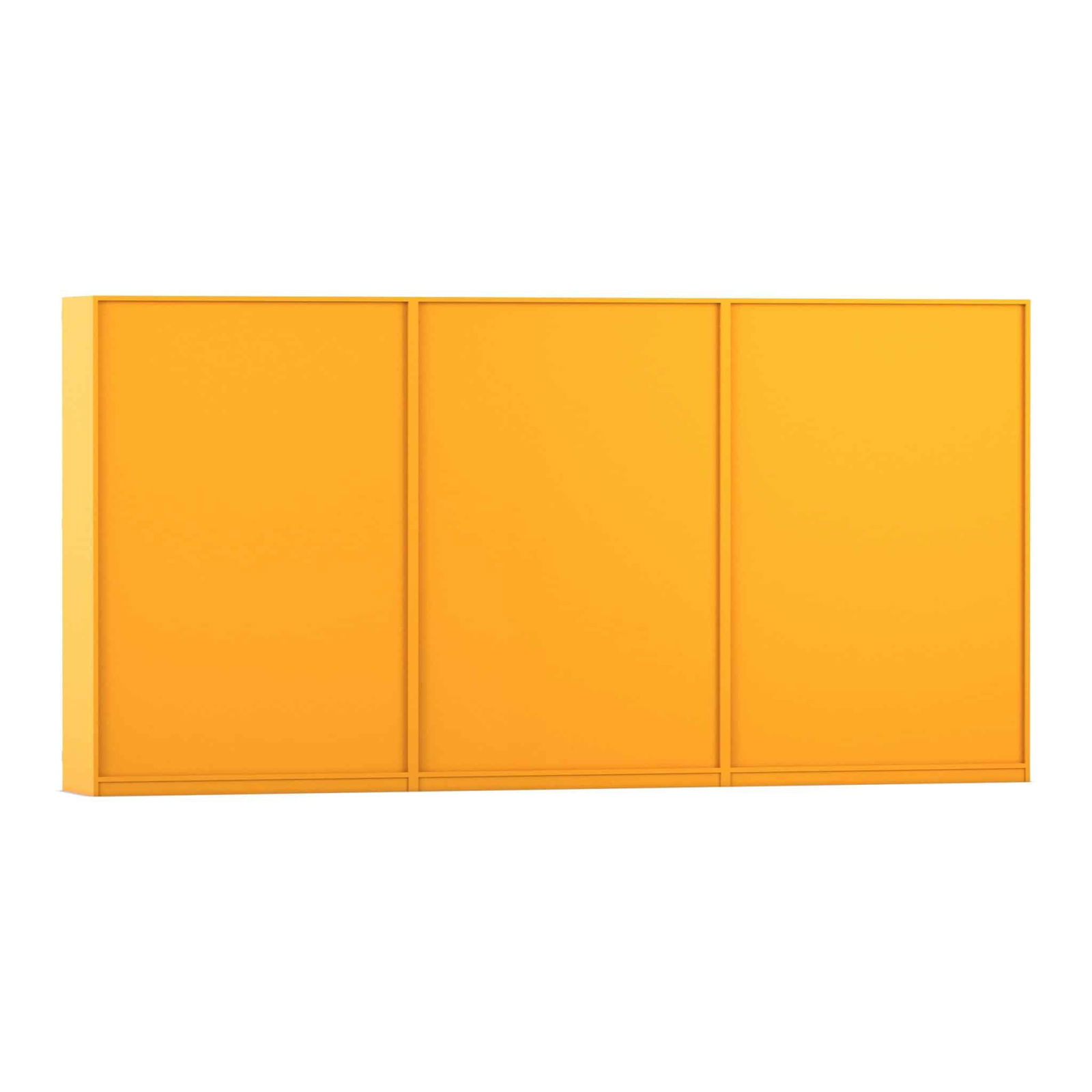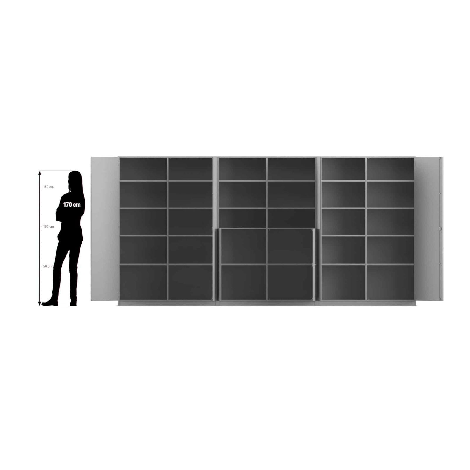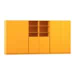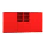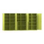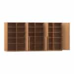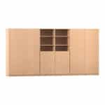 - Aufteilung: 2x Doppeltürschrank, 1x offenes Mittelregal mit Halbschrank unten