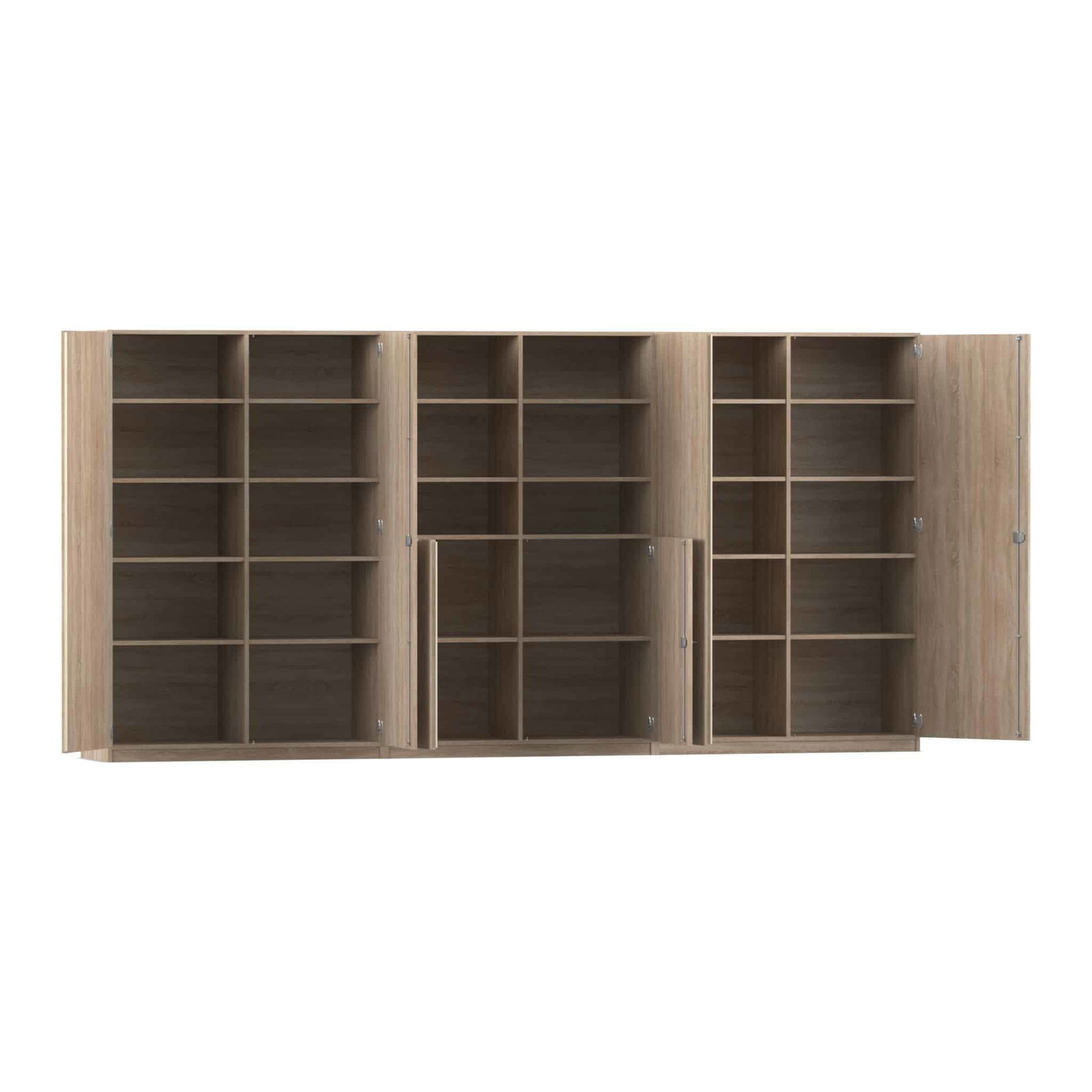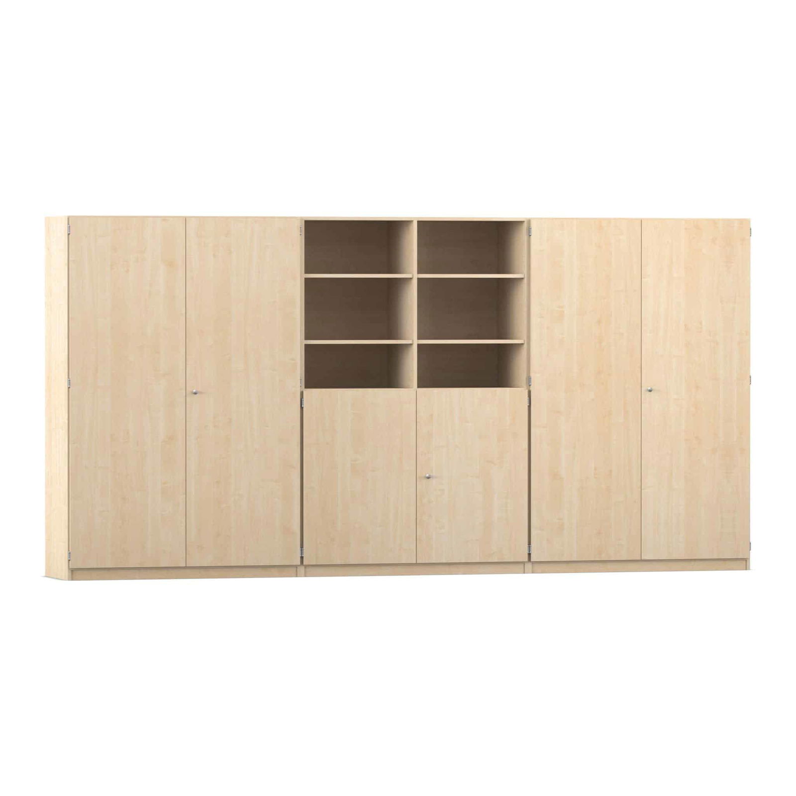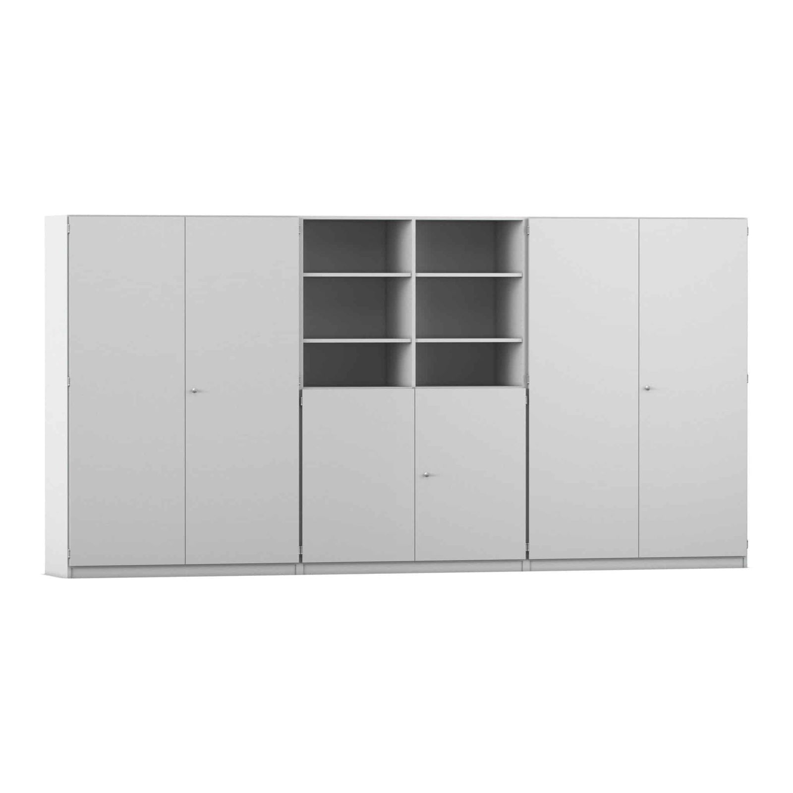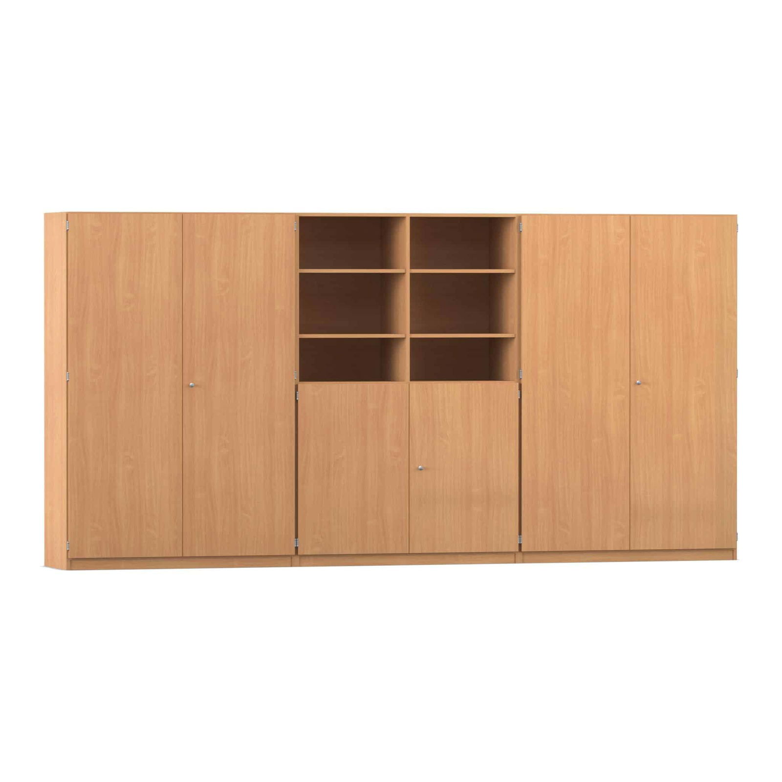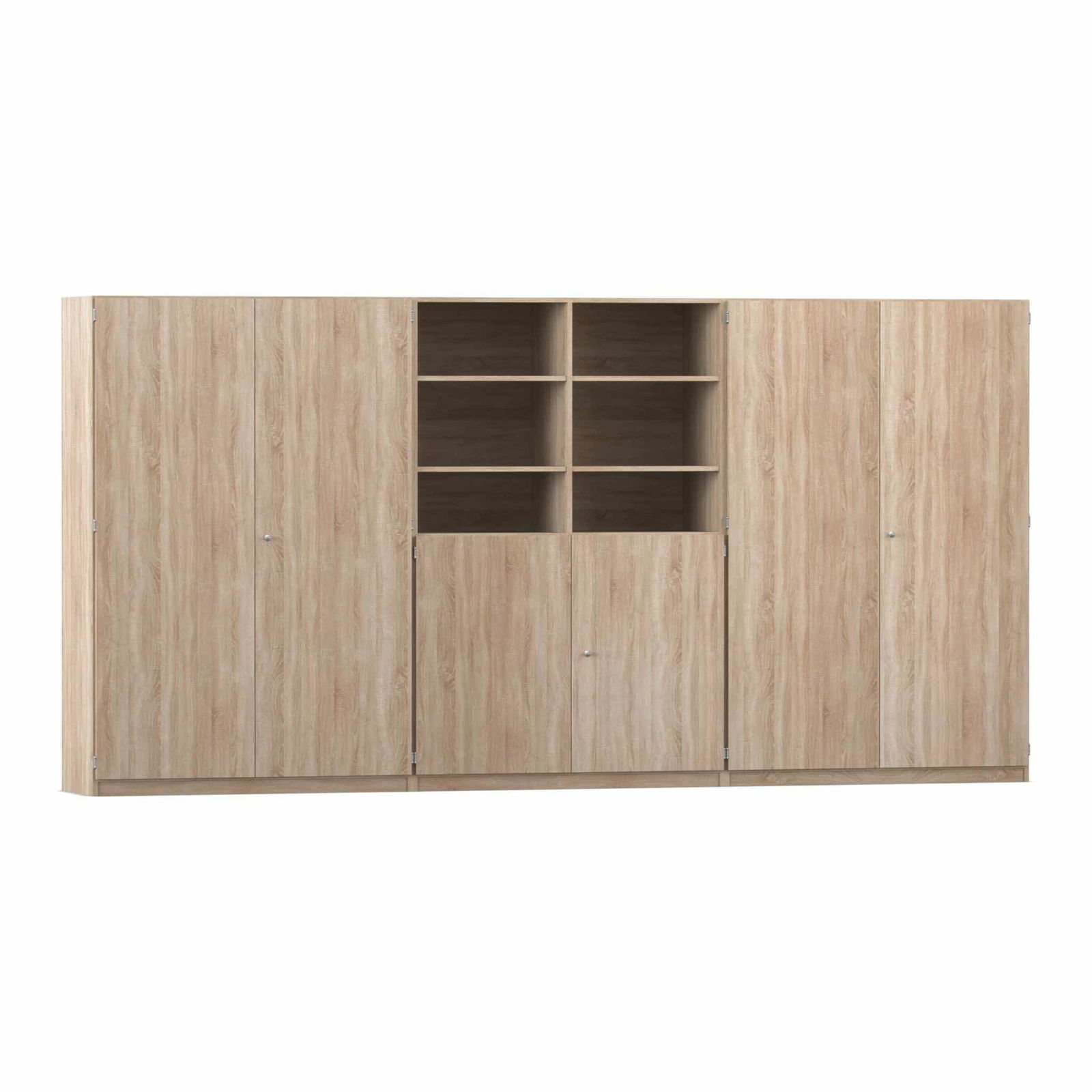 - Perfekte Kombination aus Präsentation und Schutz: Das offene Mittelregal eignet sich ideal, um häufig genutzte Bücher, Ordner oder repräsentative Objekte griffbereit zu präsentieren. Die beiden großen, abschließbaren Doppeltürschränke sowie der untere Halbschrank bieten riesigen, geschützten Platz für alle anderen Materialien, vertrauliche Unterlagen oder wertvolle Geräte.