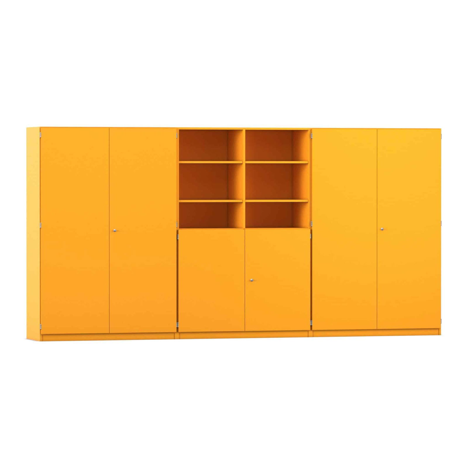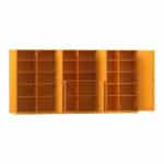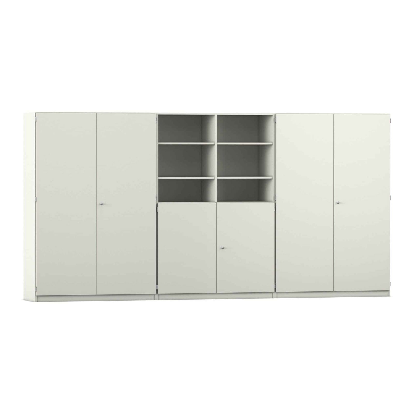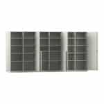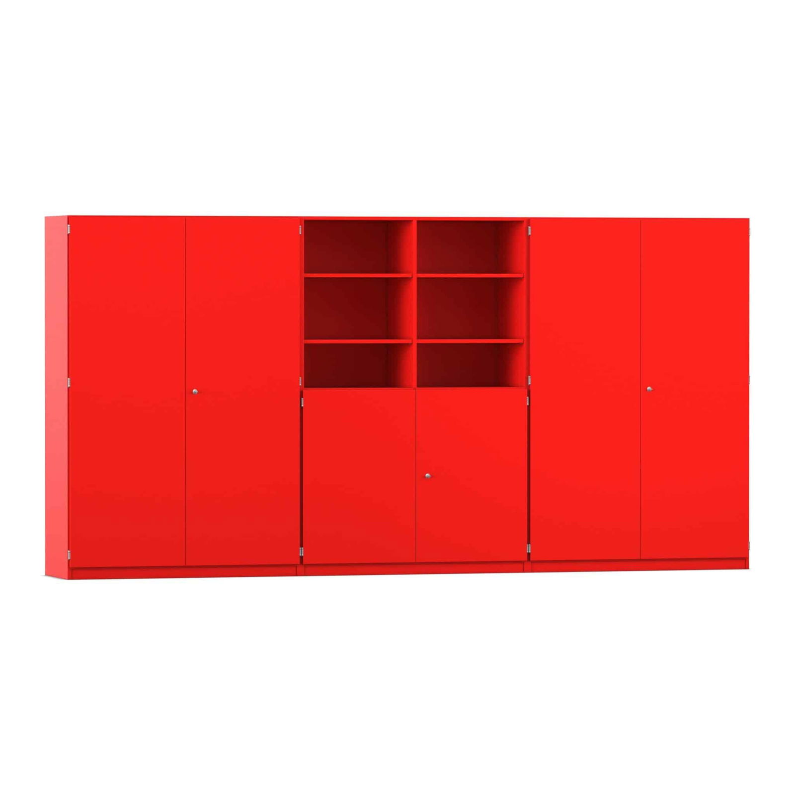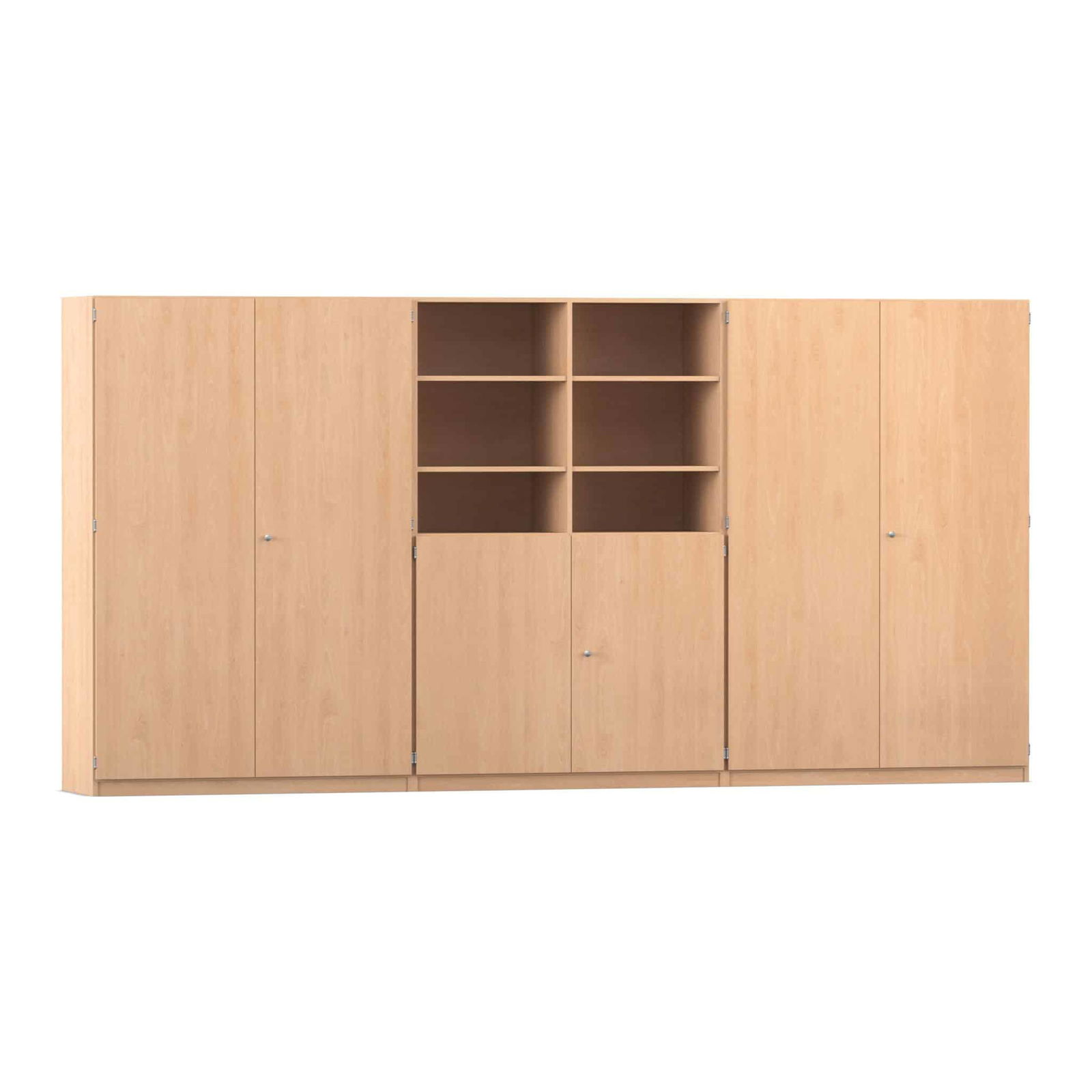 - Perfekte Kombination aus Präsentation und Schutz: Das offene Mittelregal eignet sich ideal, um häufig genutzte Bücher, Ordner oder repräsentative Objekte griffbereit zu präsentieren. Die beiden großen, abschließbaren Doppeltürschränke sowie der untere Halbschrank bieten riesigen, geschützten Platz für alle anderen Materialien, vertrauliche Unterlagen oder wertvolle Geräte.